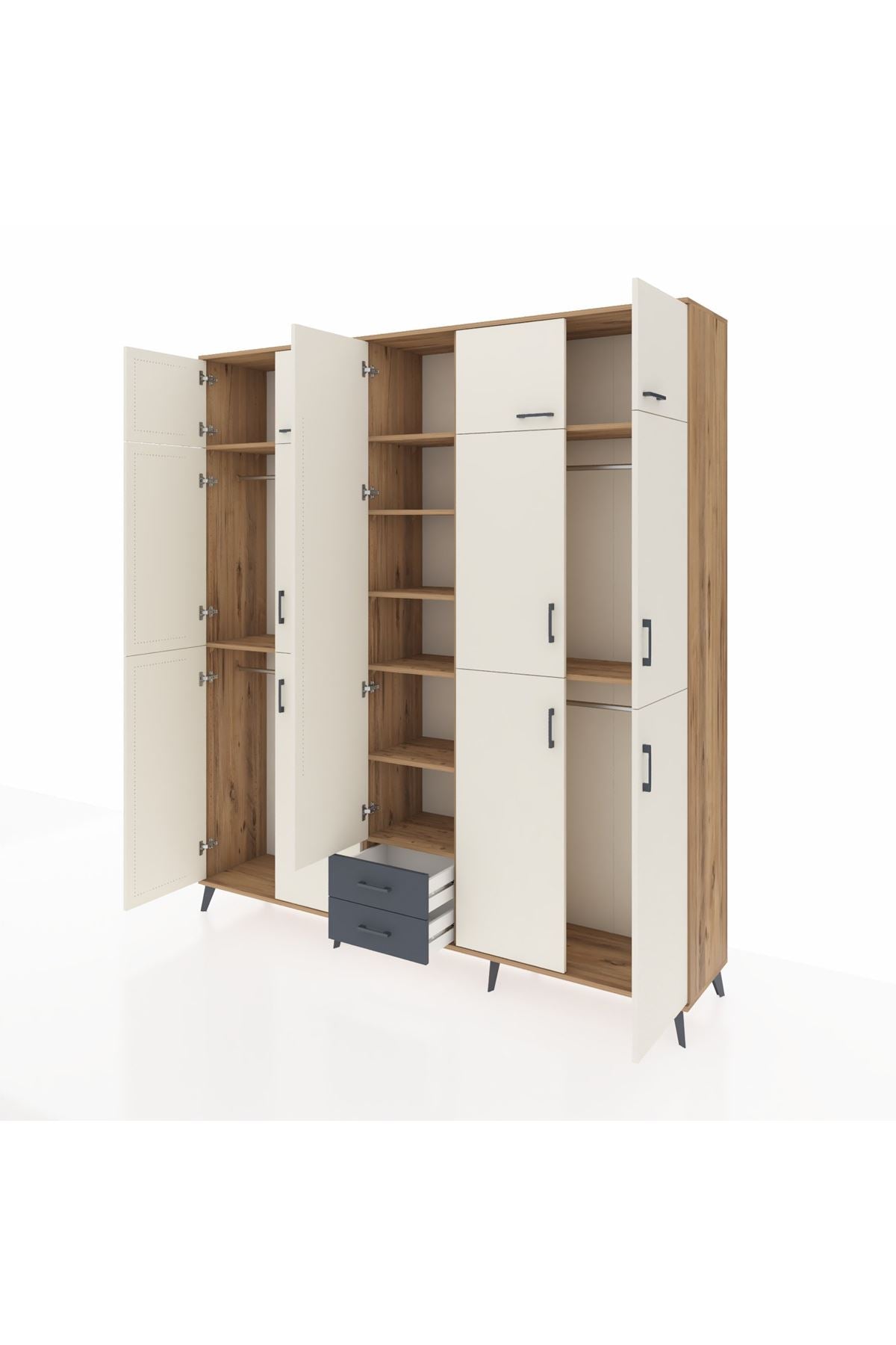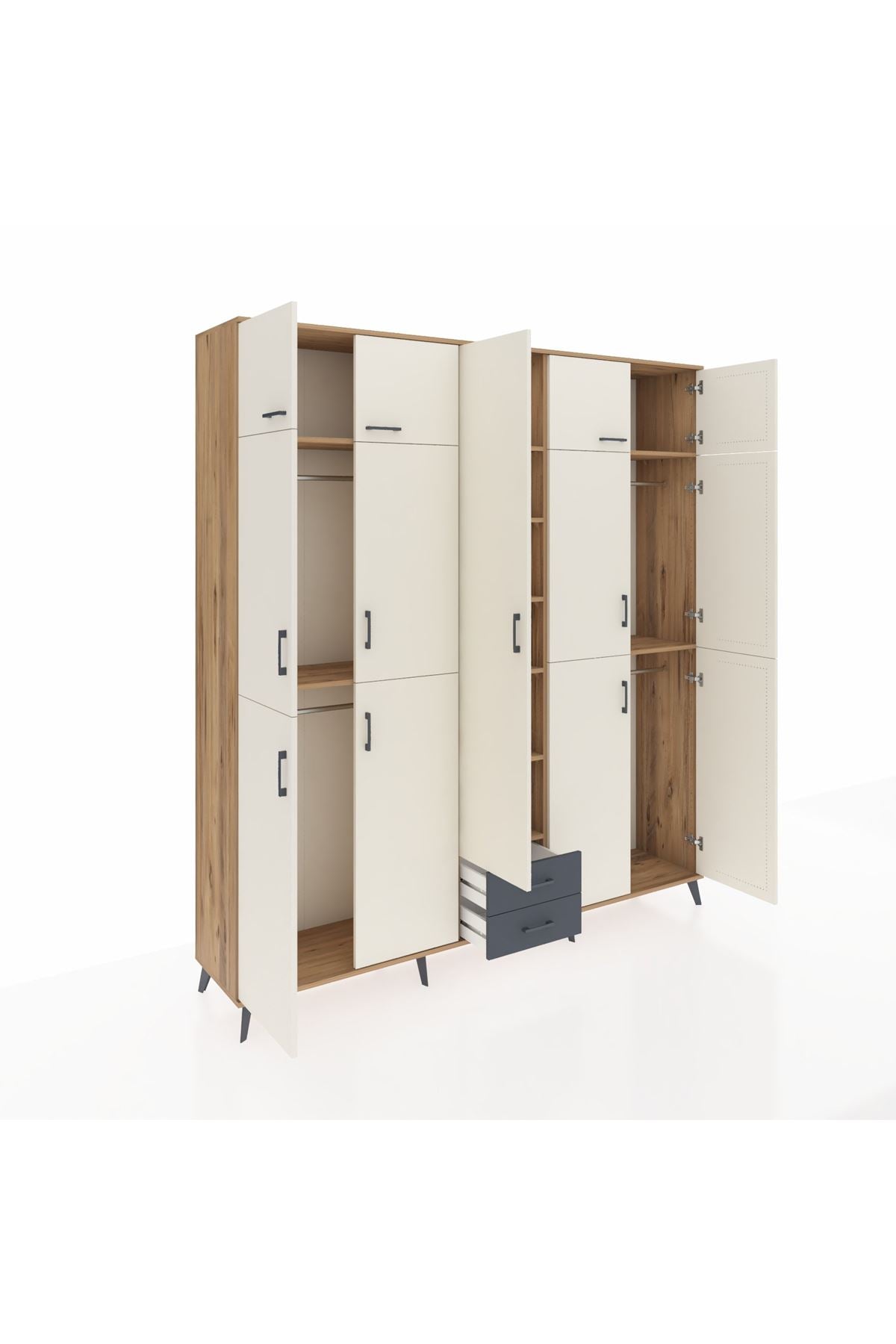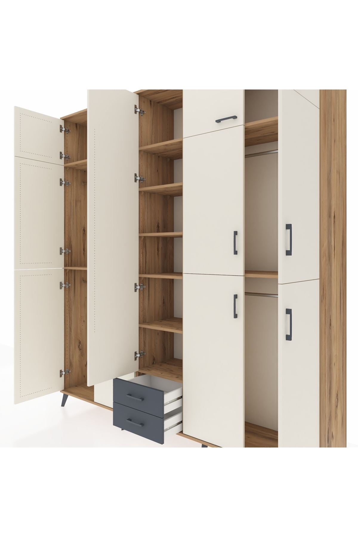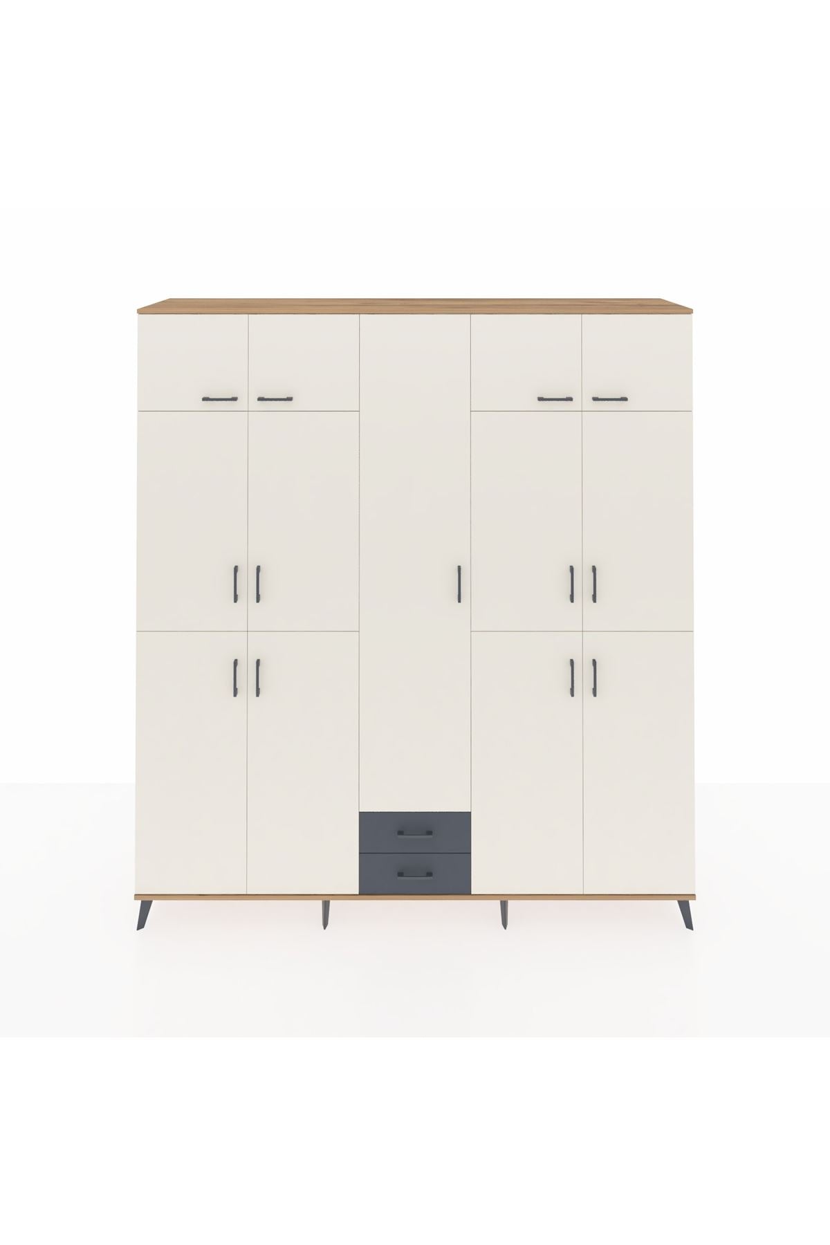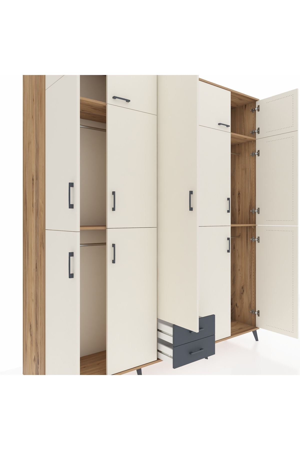 Hyperion Dolap 10 Raflı 2 Çekmeceli 4 Askılı 220x44x243 Çam-Aytaşı/Antrasit