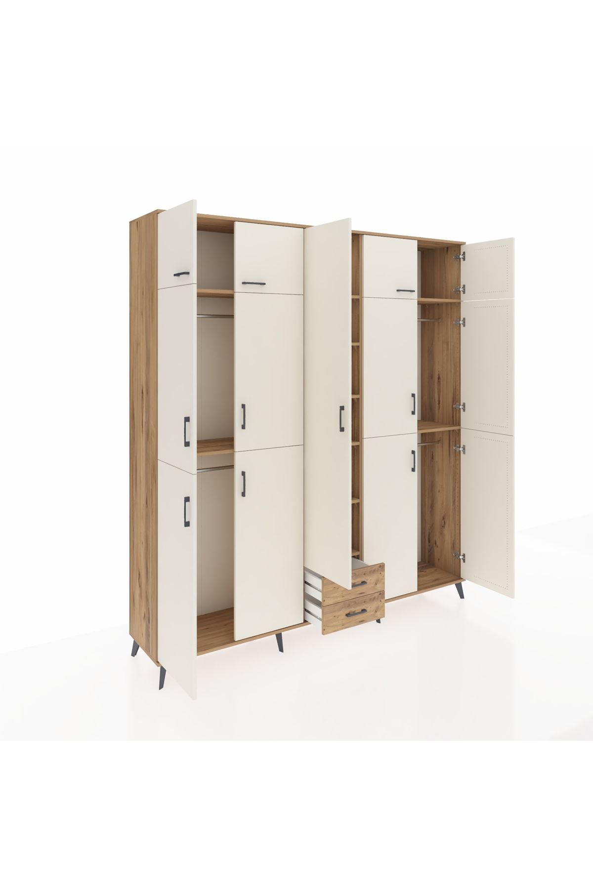 Hyperion Dolap 10 Raflı 2 Çekmeceli 4 Askılı 220x44x243 Çam-Aytaşı/Çam