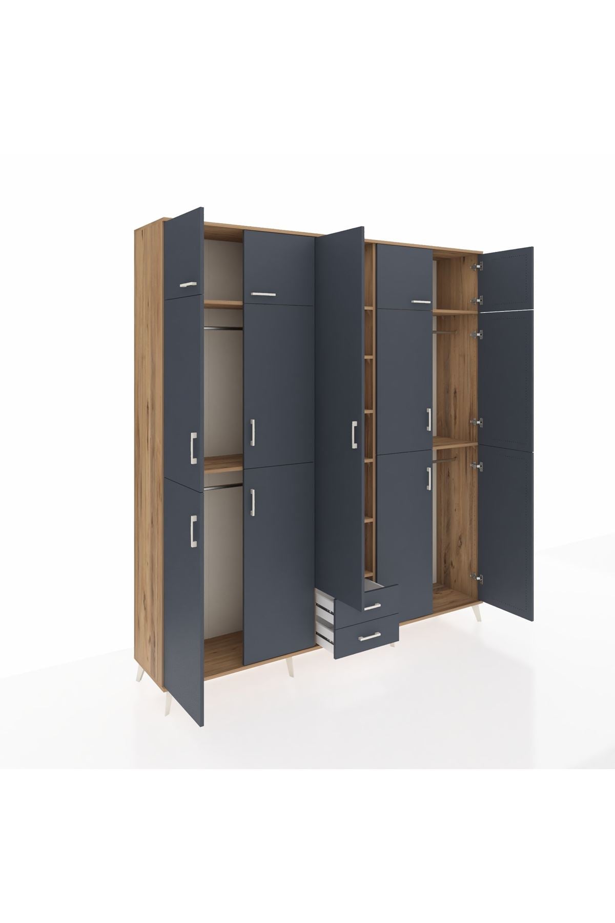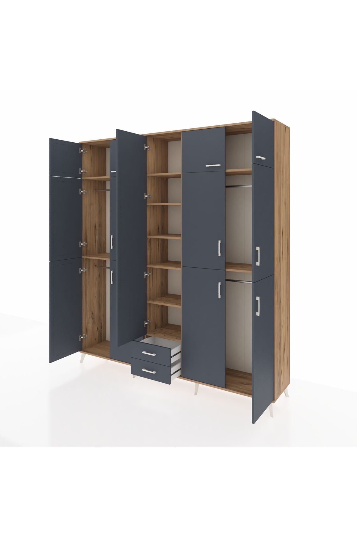 Hyperion Dolap 10 Raflı 2 Çekmeceli 4 Askılı 220x44x243 Çam-Antrasit/Antrasit