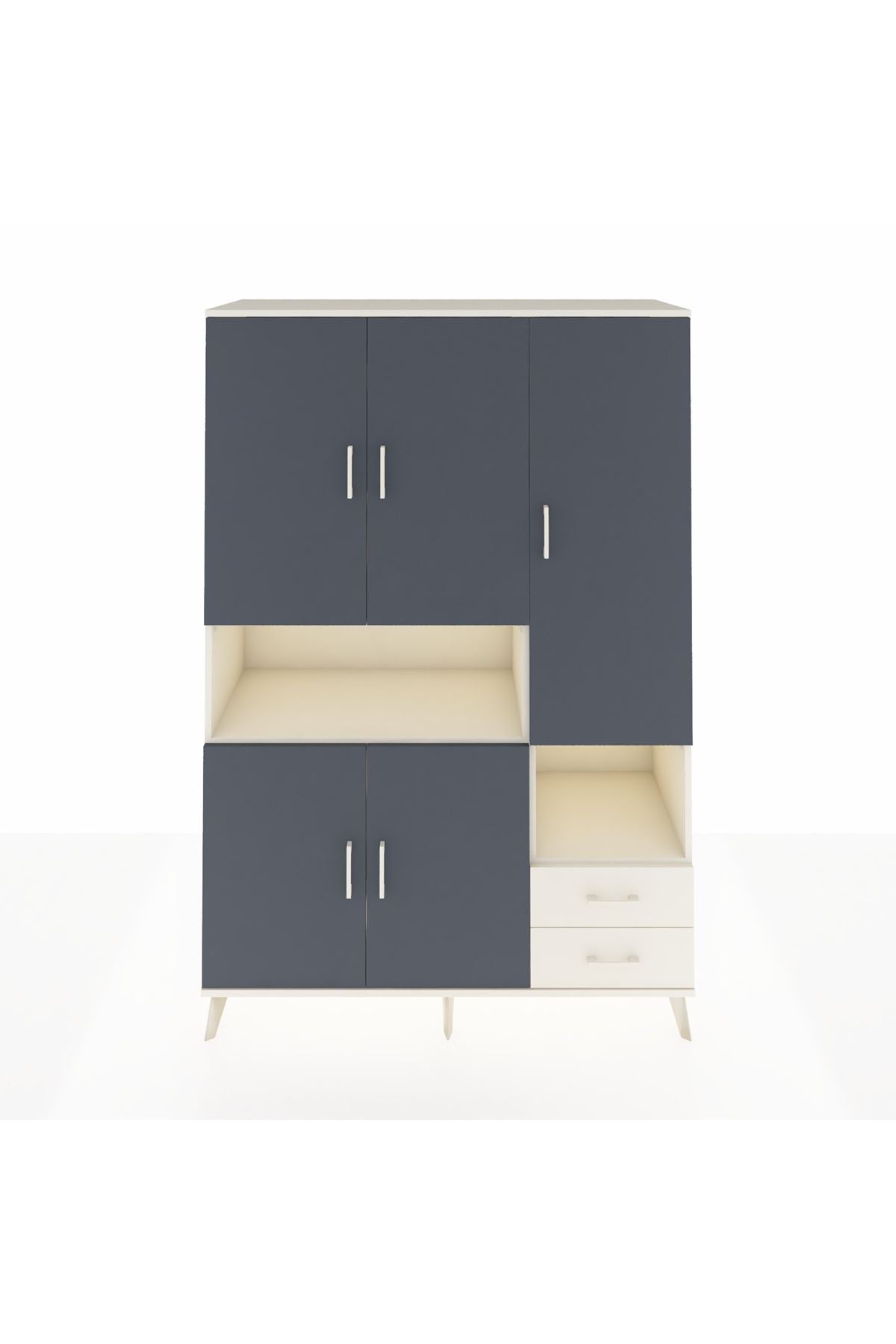 Hyperion Dolap 10 Raflı 2 Çekmeceli 5 Kapaklı 132x44x195 Aytaşı-Antrasit/Aytaşı