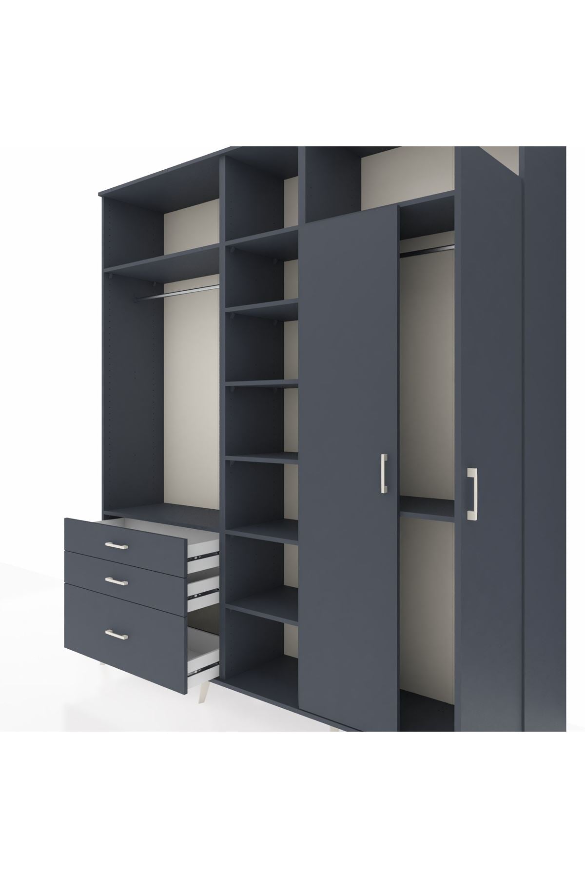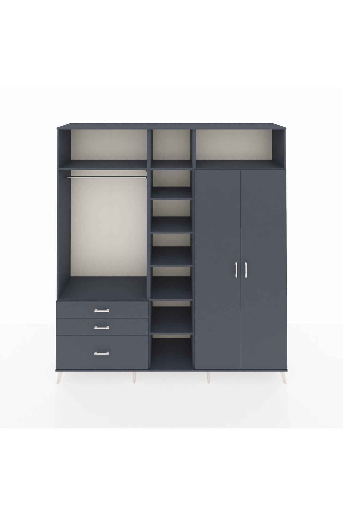 Hyperion Dolap 10 Raflı 3 Çekmeceli 2 Askılı 220x44x243 Antrasit-Antrasit/Antrasit