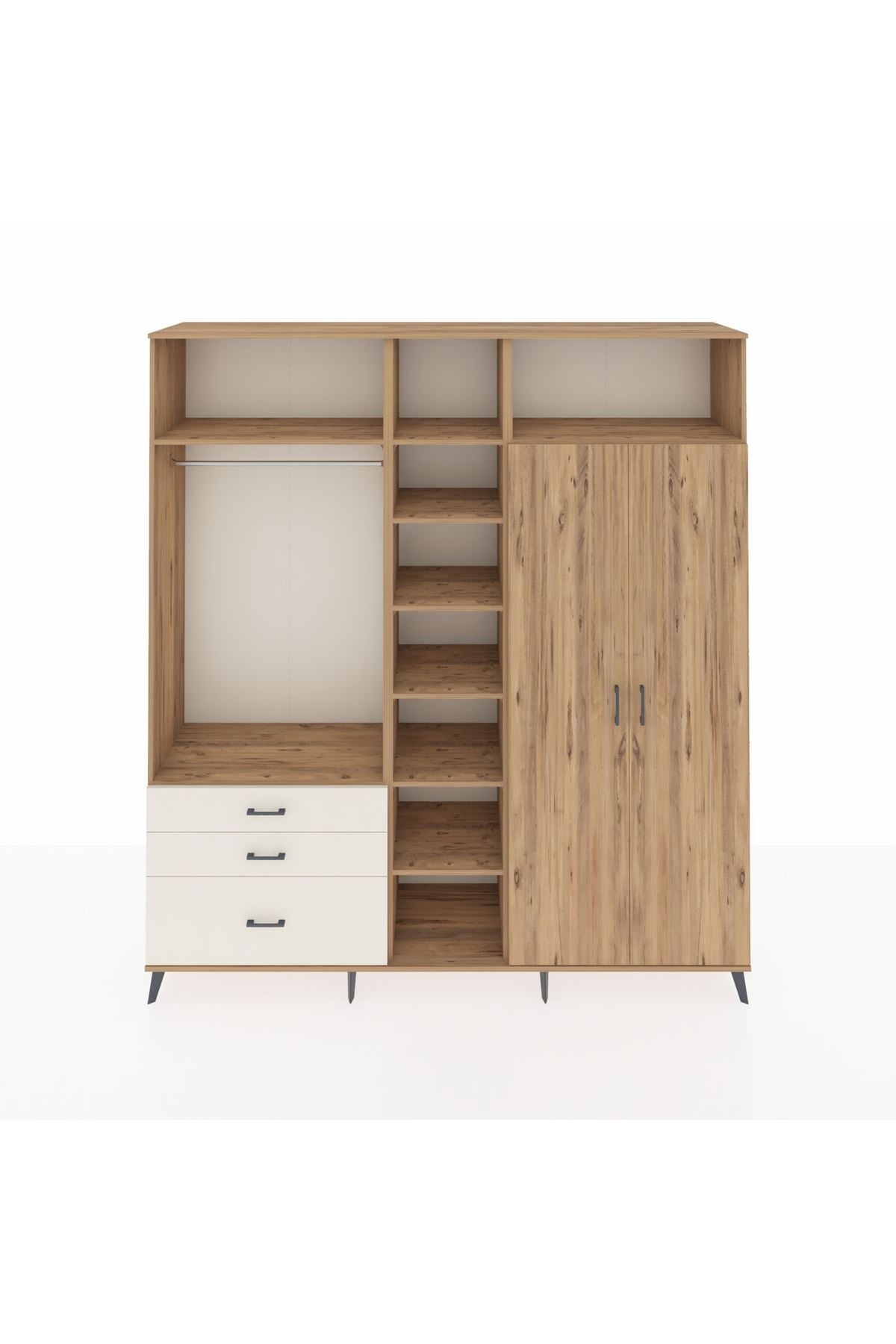 Hyperion Dolap 10 Raflı 3 Çekmeceli 2 Askılı 220x44x243 Çam-Çam/Aytaşı