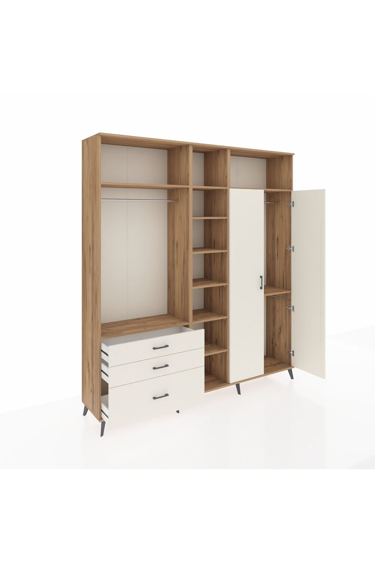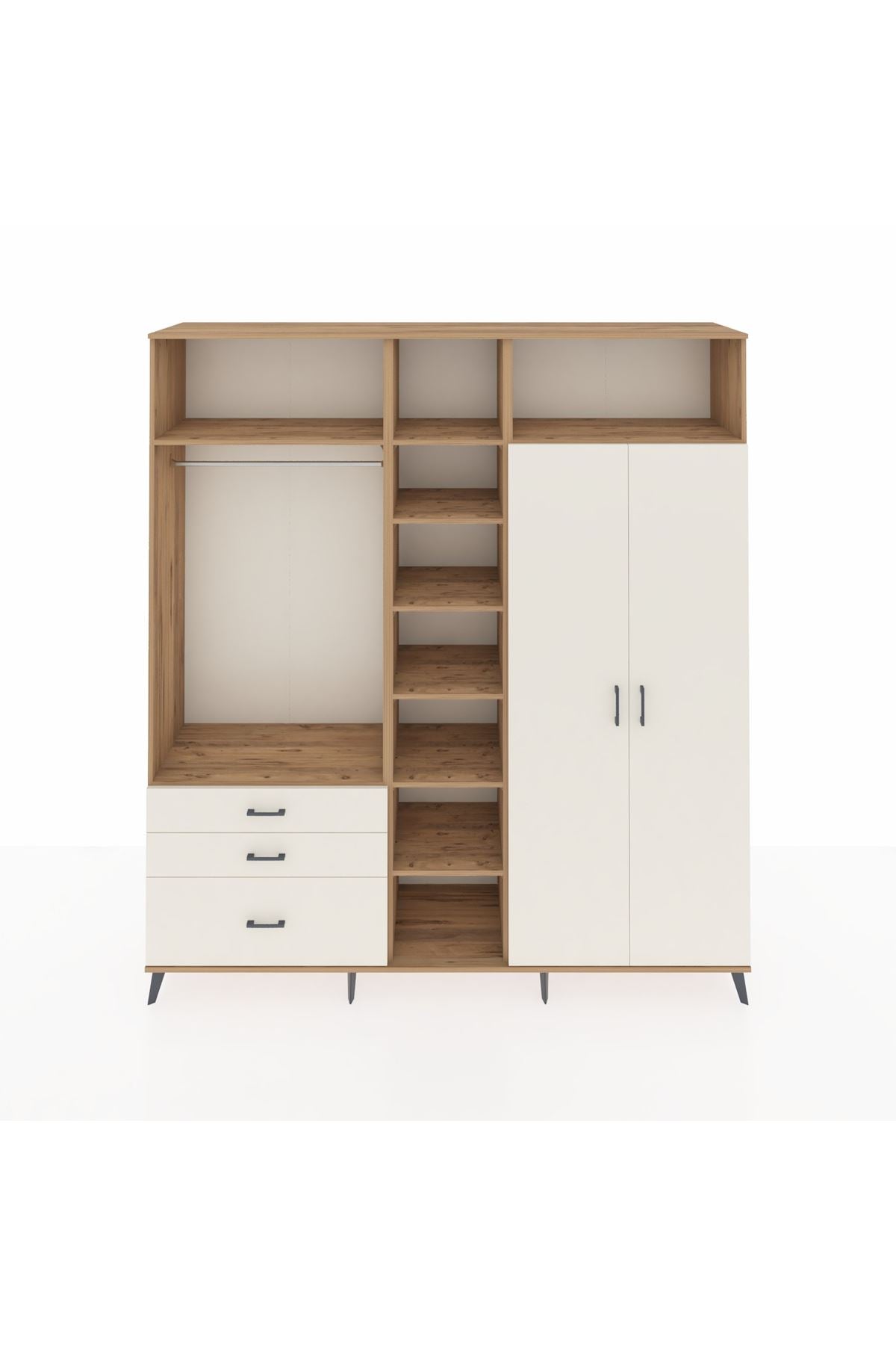 Hyperion Dolap 10 Raflı 3 Çekmeceli 2 Askılı 220x44x243 Çam-Aytaşı/Aytaşı