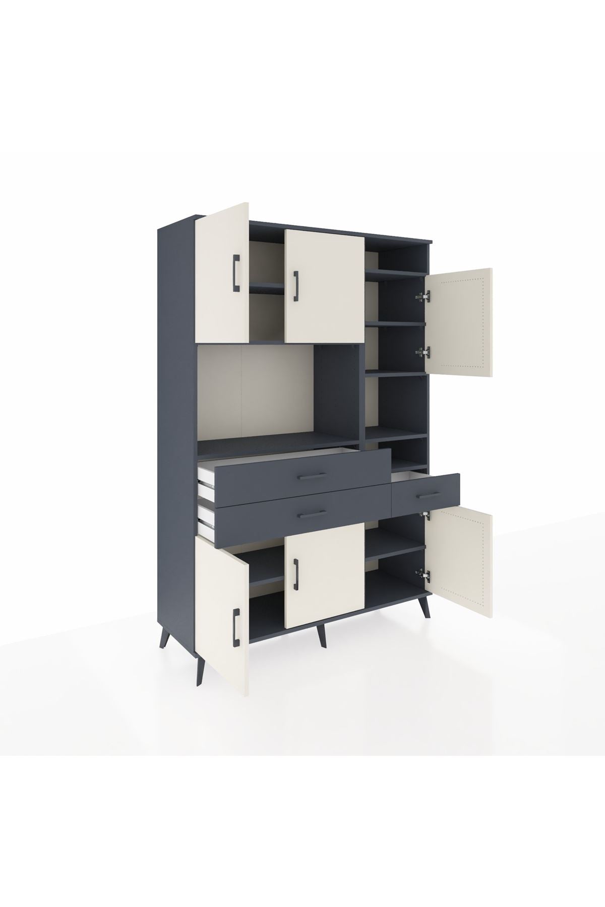 Hyperion Dolap 10 Raflı 3 Çekmeceli 6 Kapaklı 132x44x195 Antrasit-Aytaşı/Antrasit