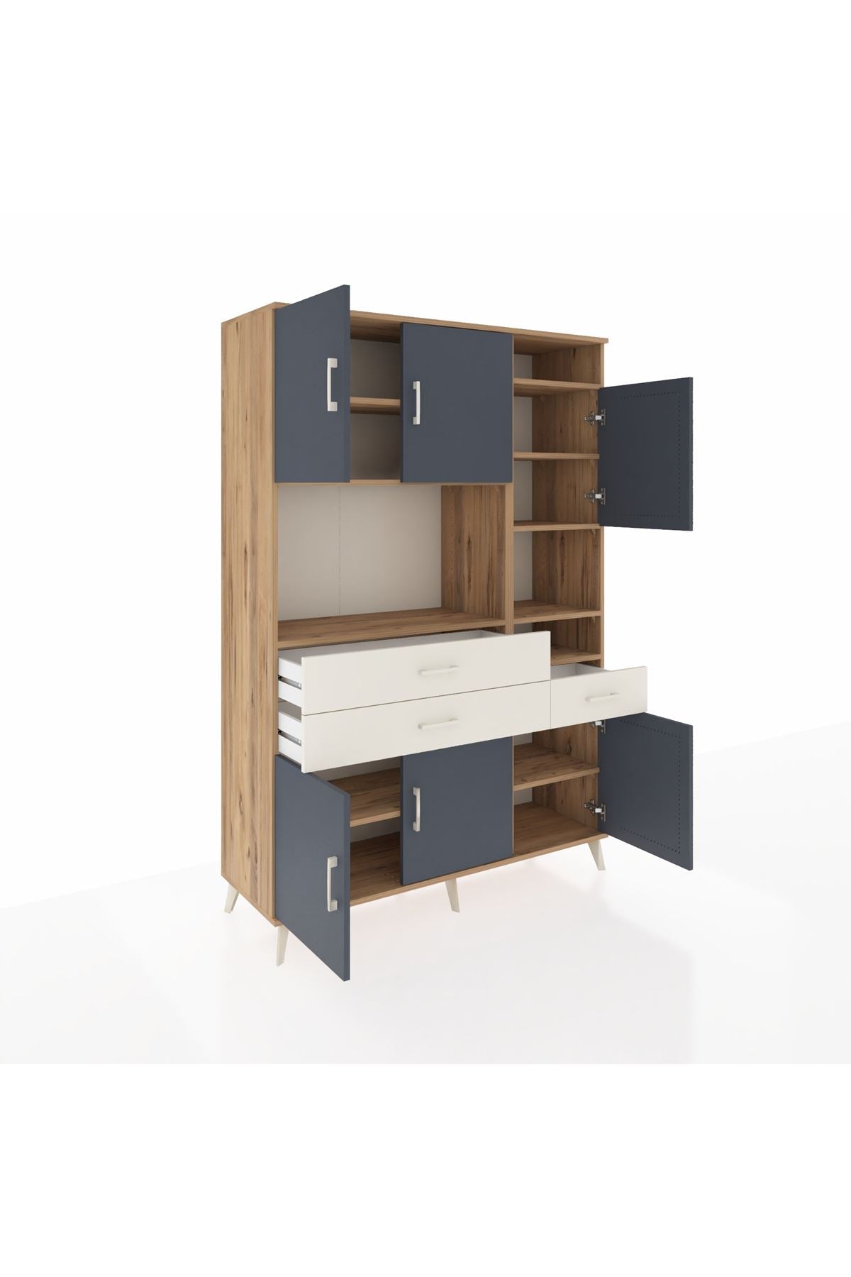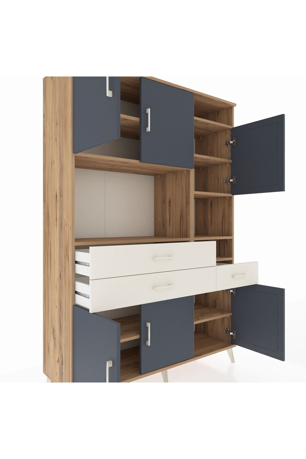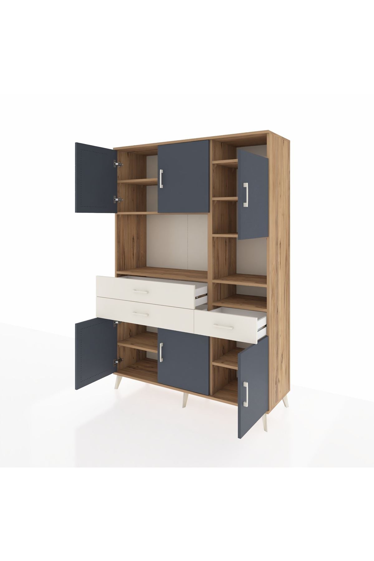 Hyperion Dolap 10 Raflı 3 Çekmeceli 6 Kapaklı 132x44x195 Çam-Antrasit/Aytaşı