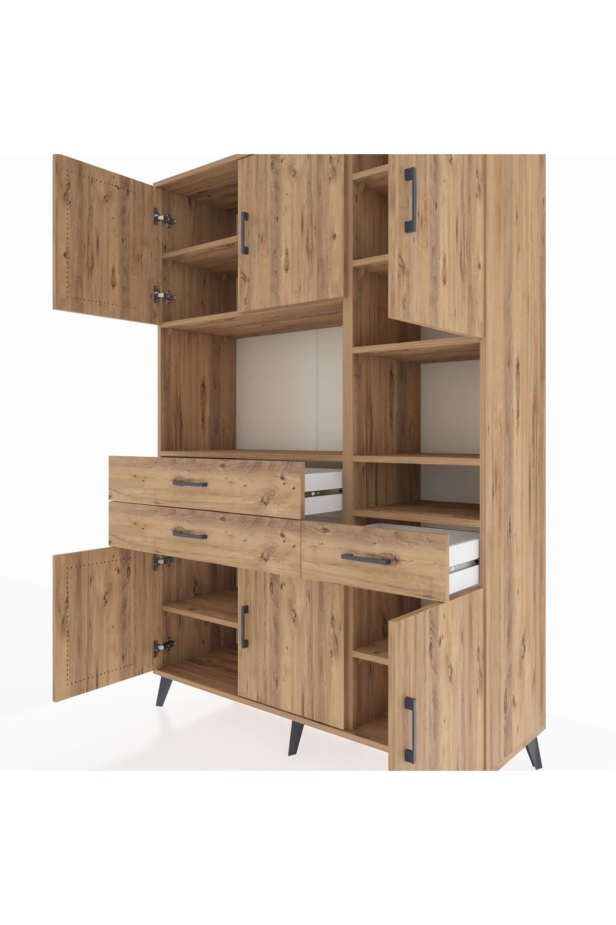 Hyperion Dolap 10 Raflı 3 Çekmeceli 6 Kapaklı 132x44x195 Çam-Çam/Çam