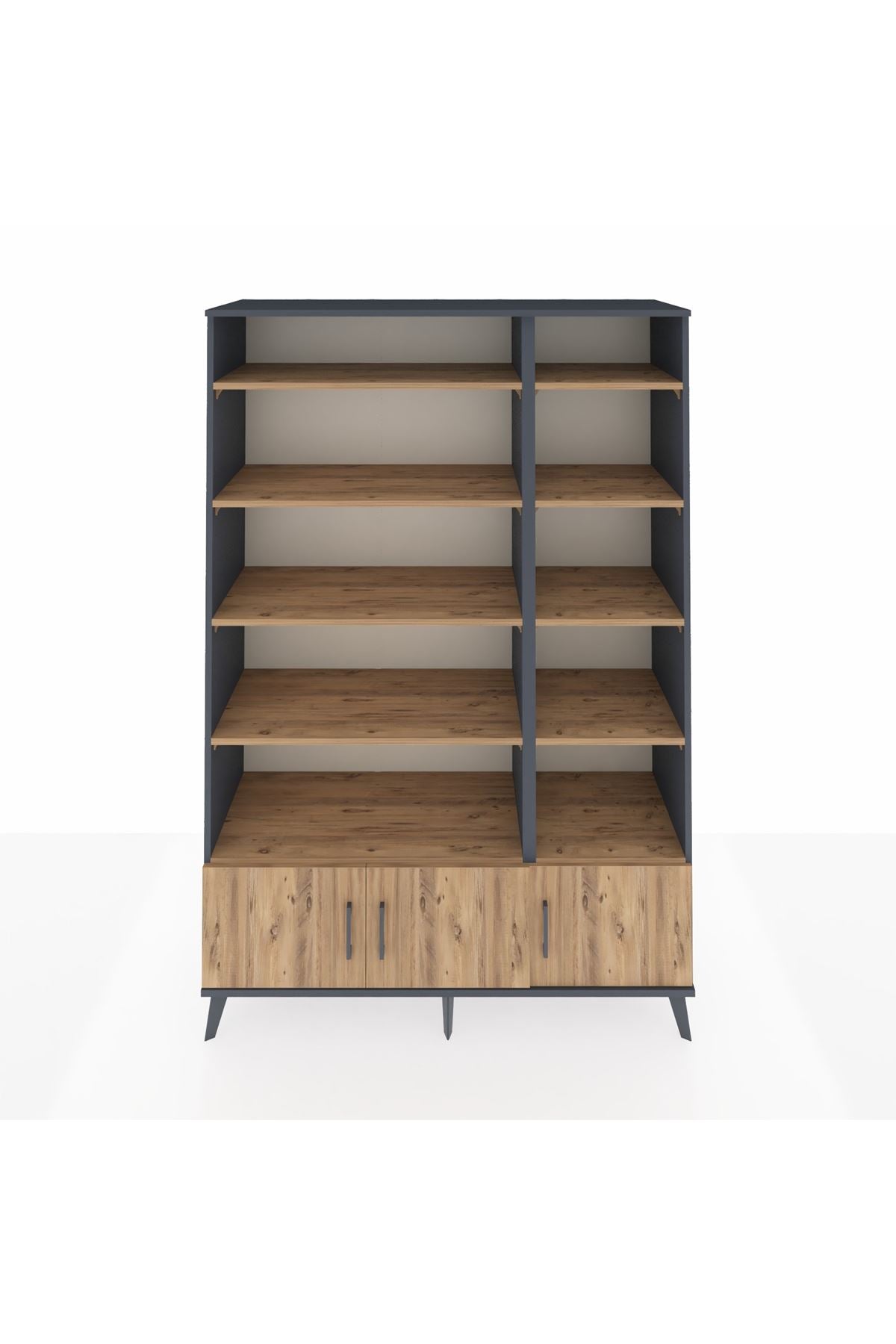 Hyperion Dolap 10 Raflı 3 Kapaklı 132x44x195 Antrasit-Çam/Çam