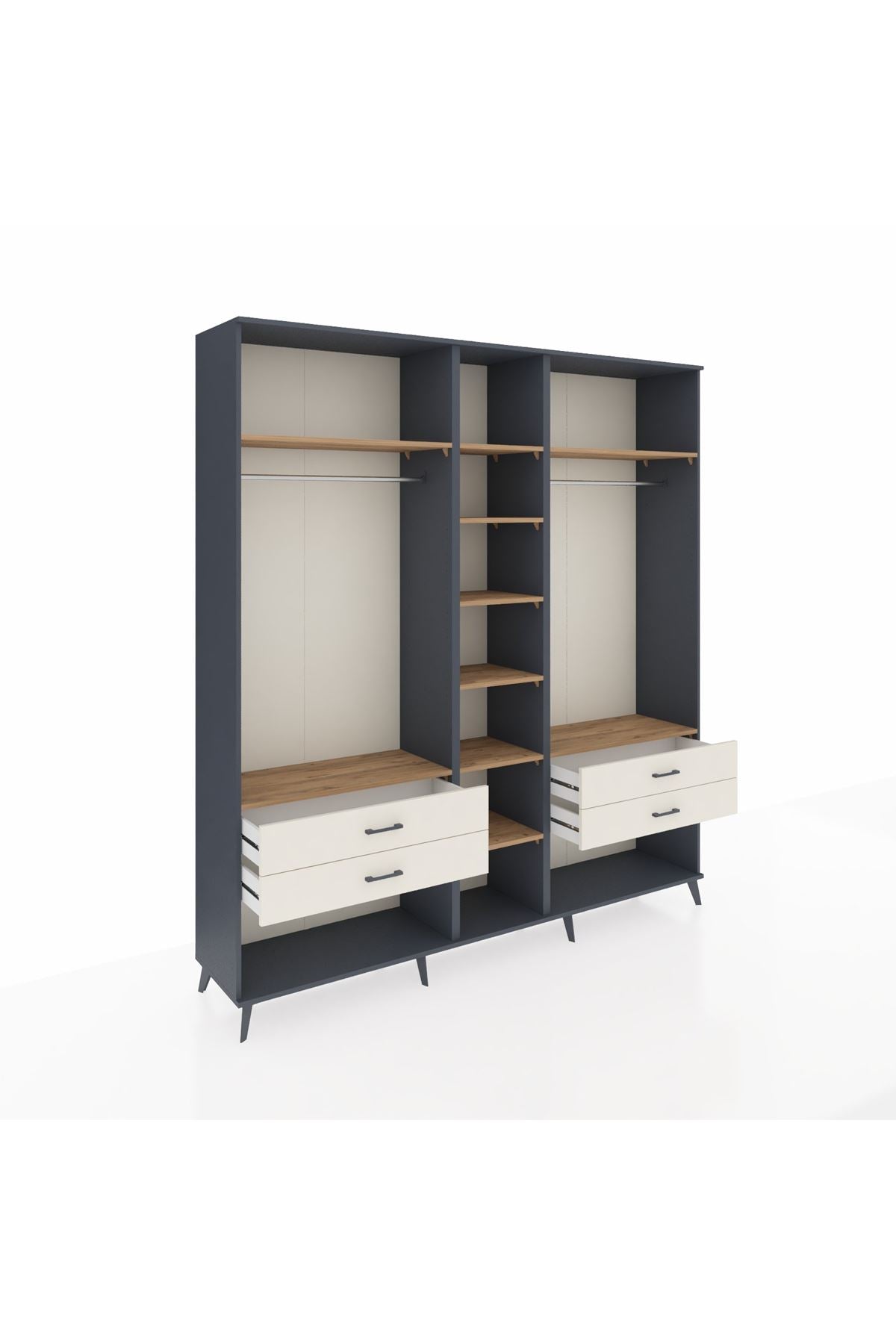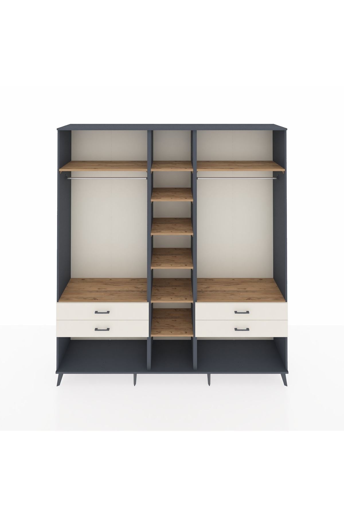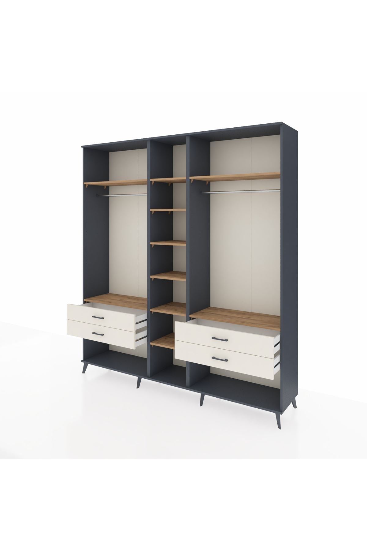 Hyperion Dolap 10 Raflı 4 Çekmeceli 2 Askılı 220x44x243 Antrasit-Çam/Aytaşı