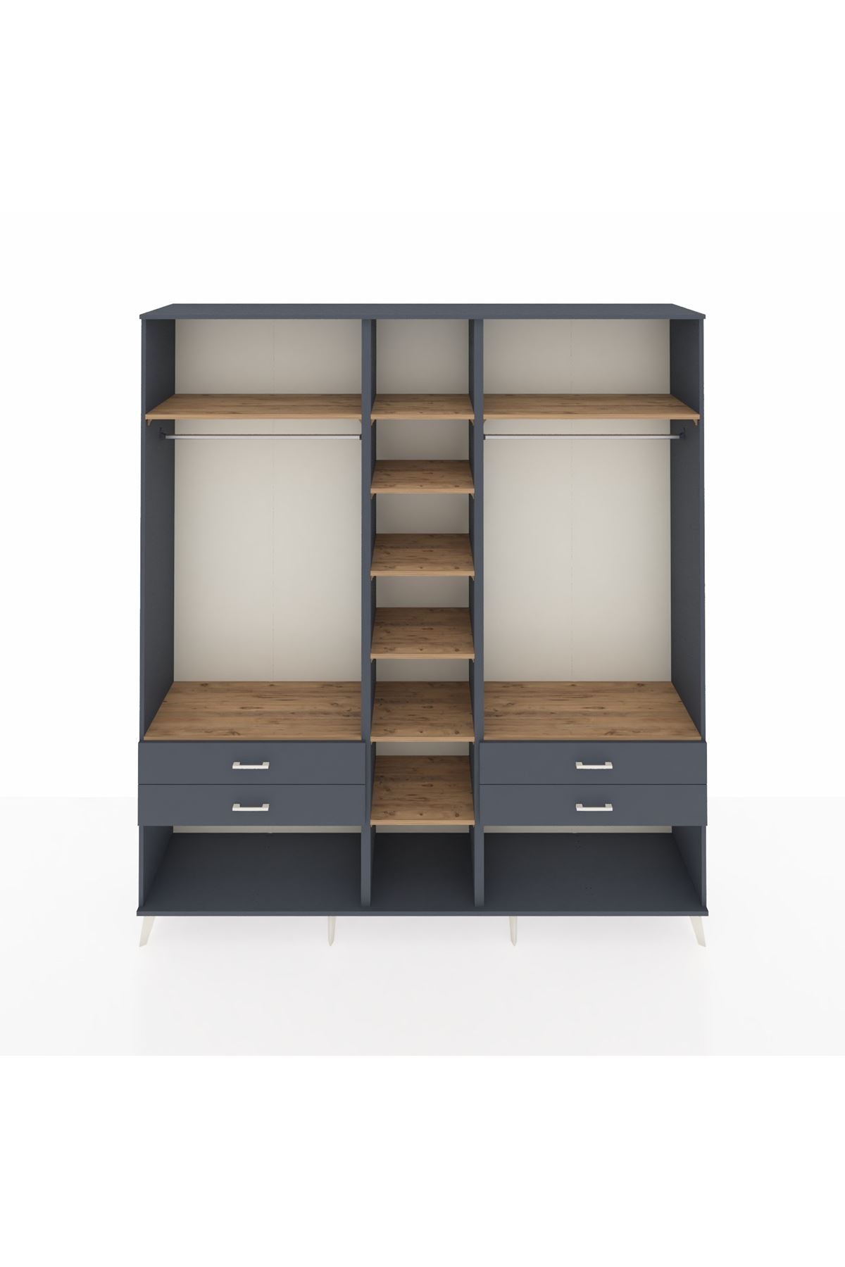 Hyperion Dolap 10 Raflı 4 Çekmeceli 2 Askılı 220x44x243 Antrasit-Çam/Antrasit