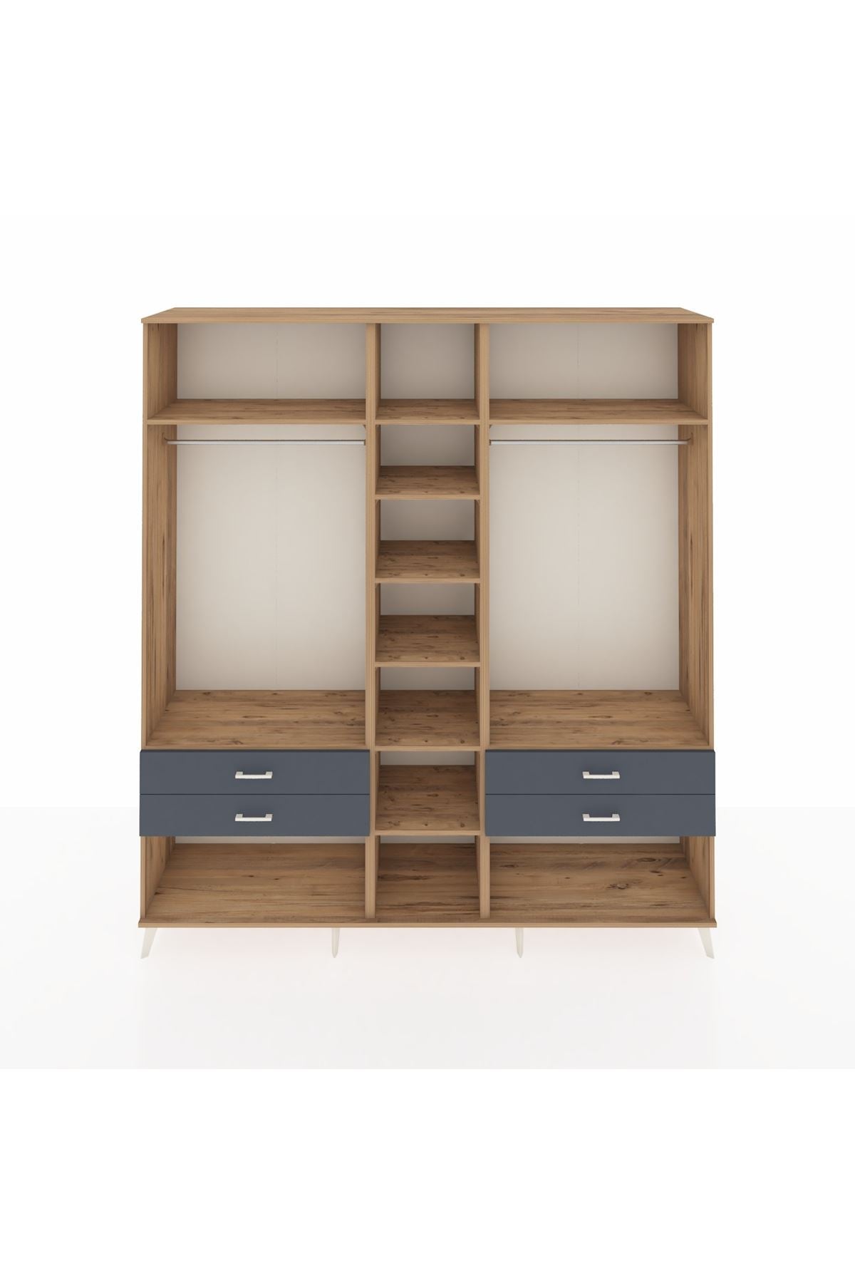 Hyperion Dolap 10 Raflı 4 Çekmeceli 2 Askılı 220x44x243 Çam-Çam/Antrasit