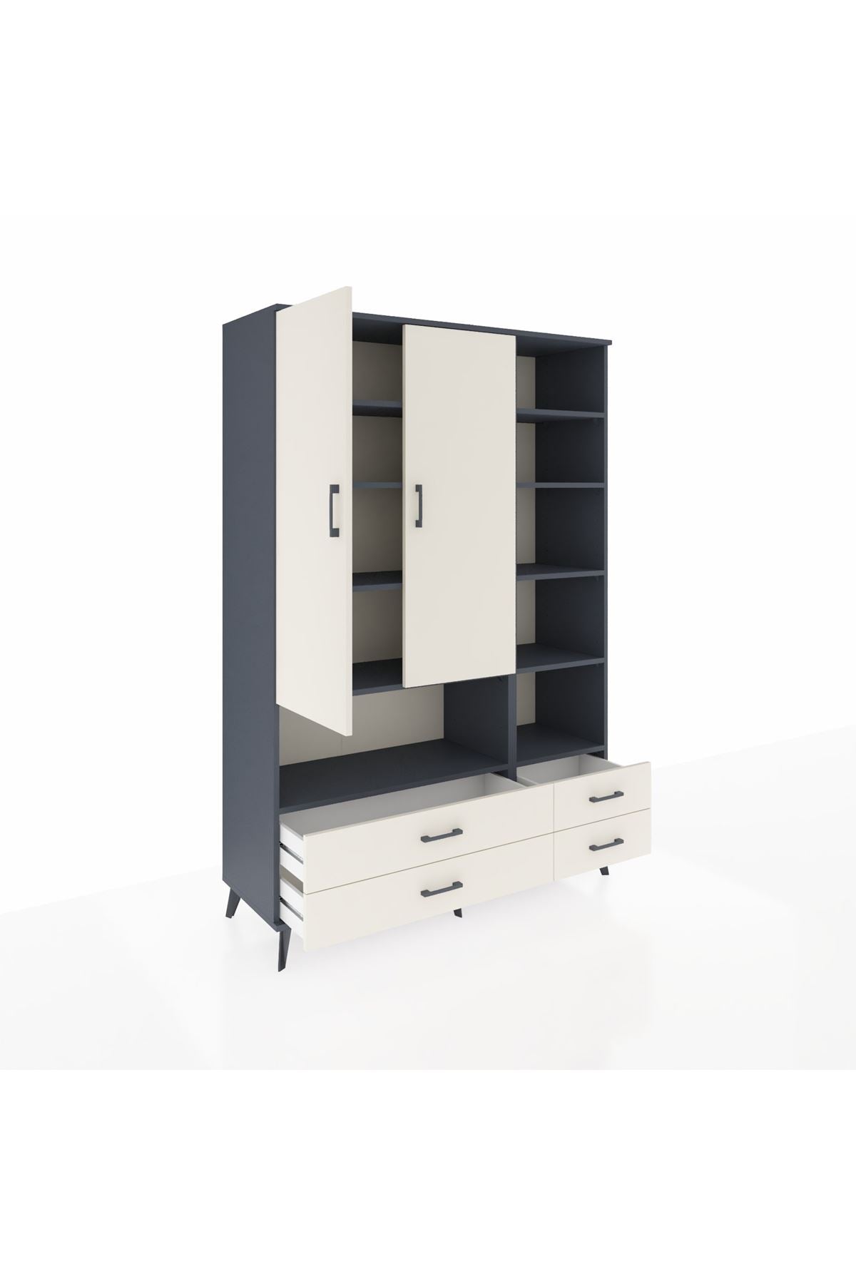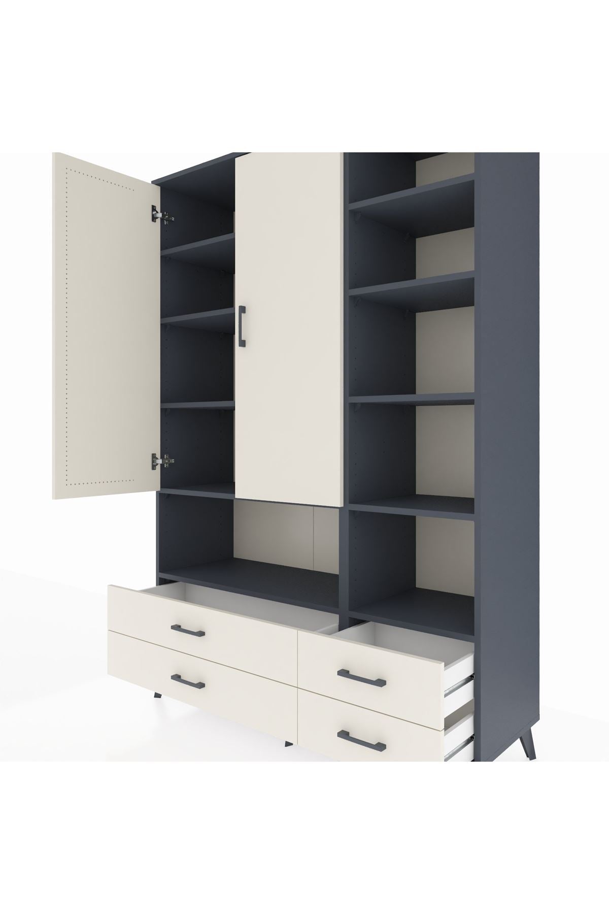 Hyperion Dolap 10 Raflı 4 Çekmeceli 2 Kapaklı 132x44x195 Antrasit-Aytaşı/Aytaşı