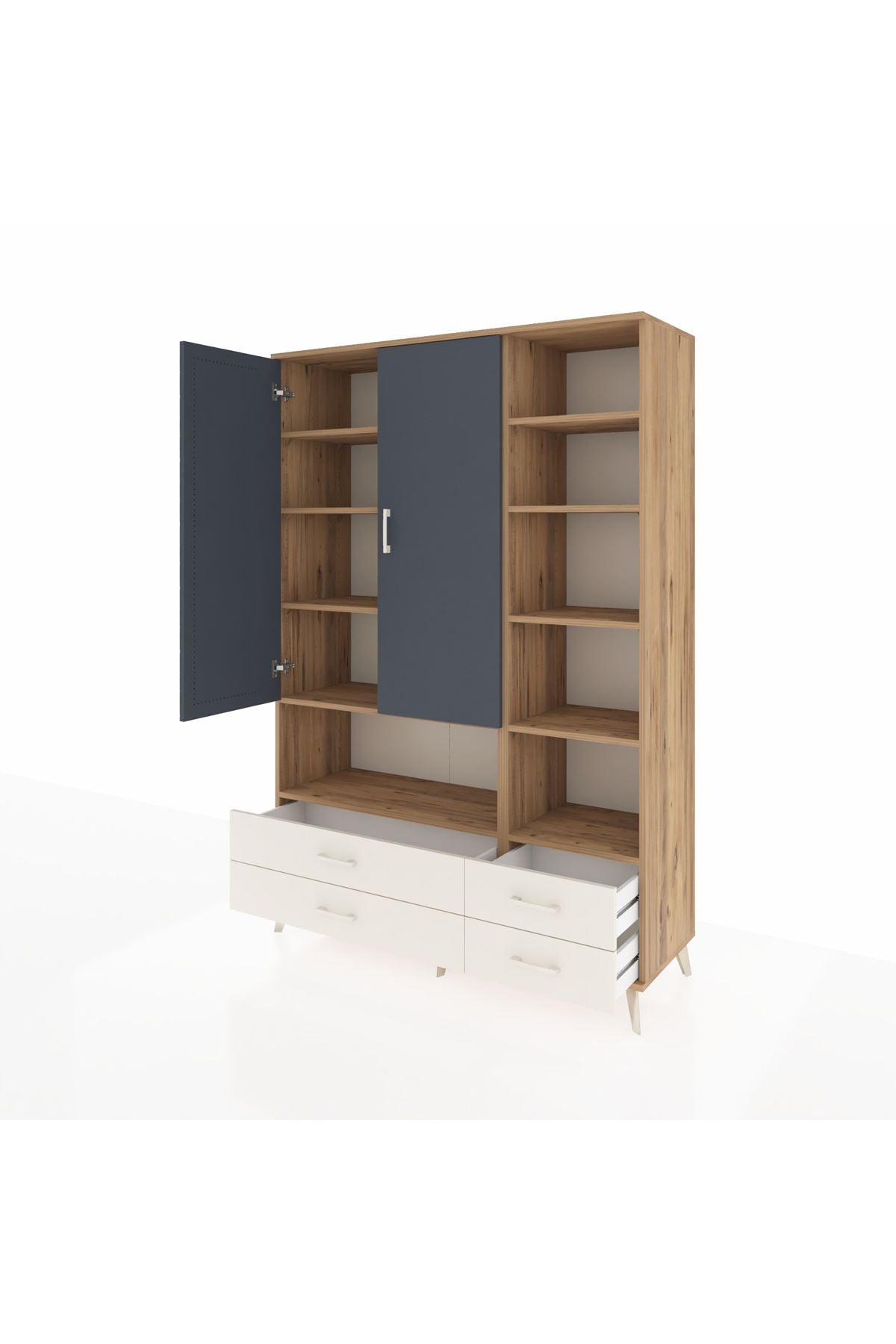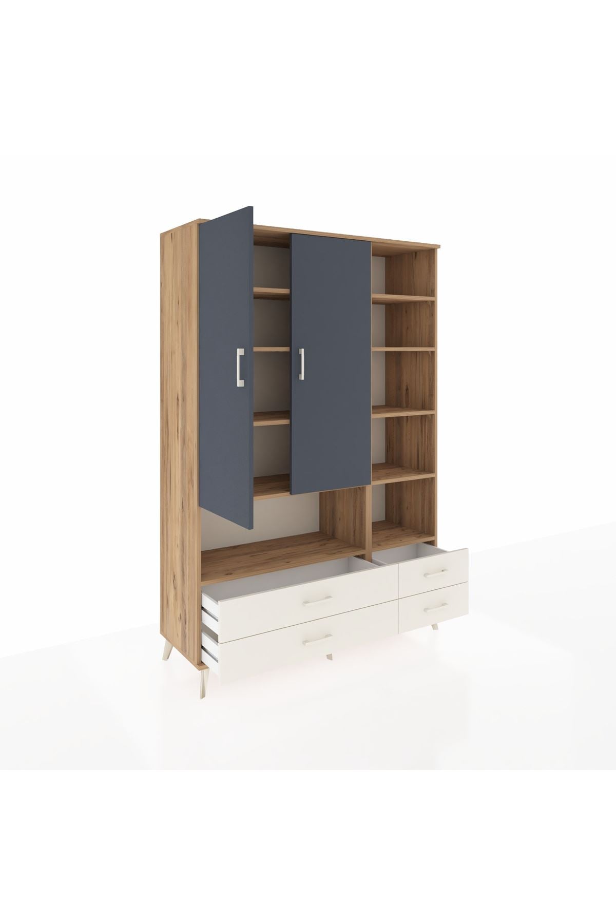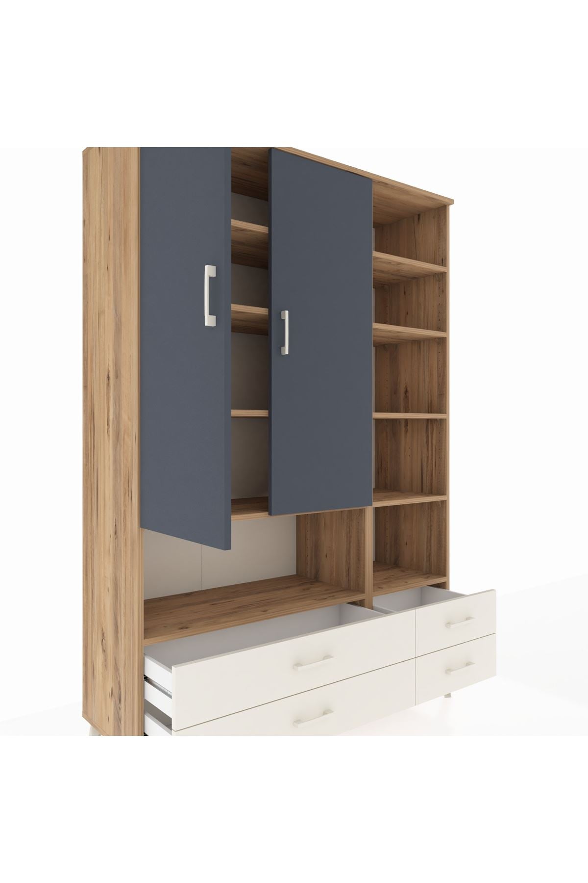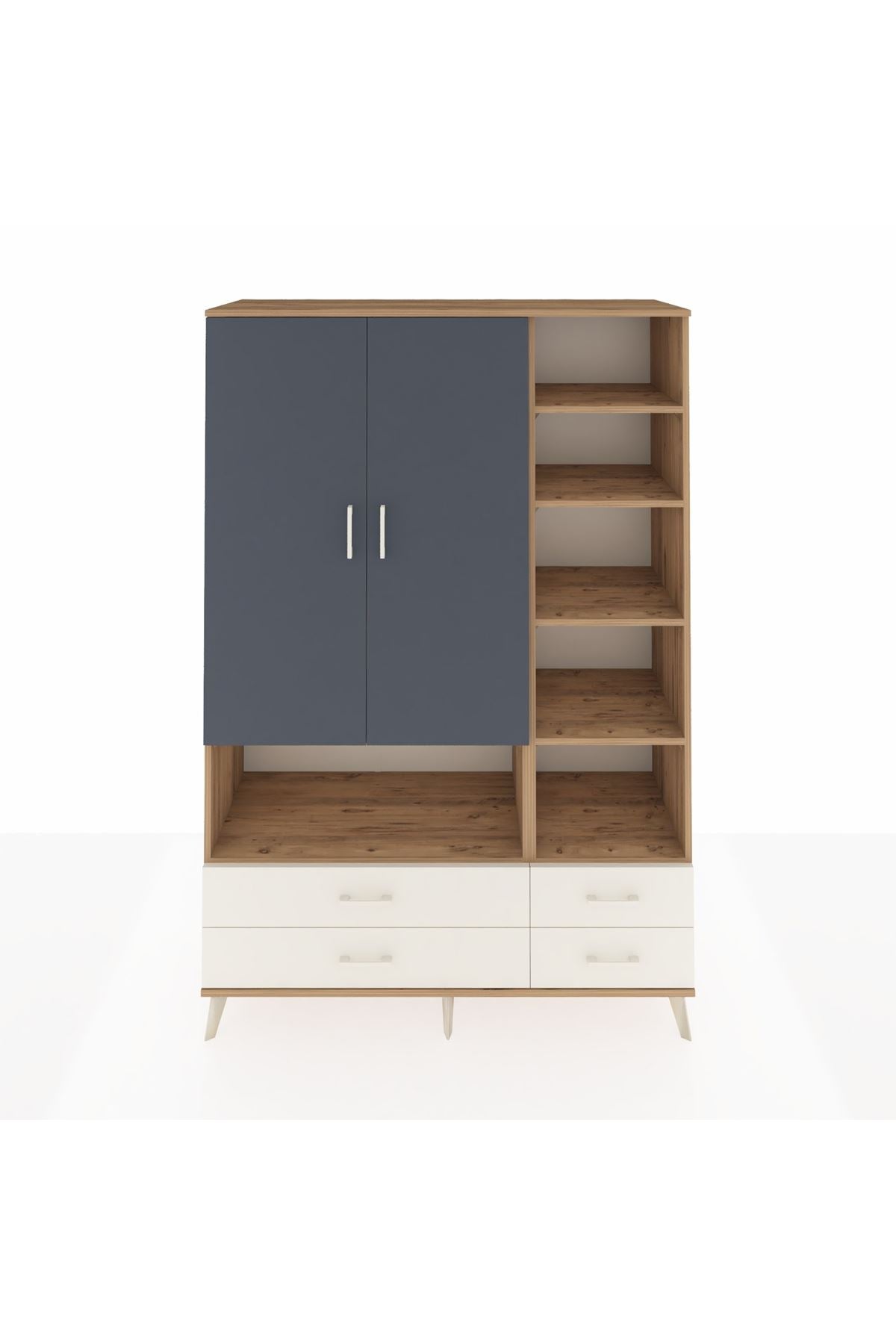 Hyperion Dolap 10 Raflı 4 Çekmeceli 2 Kapaklı 132x44x195 Çam-Antrasit/Aytaşı