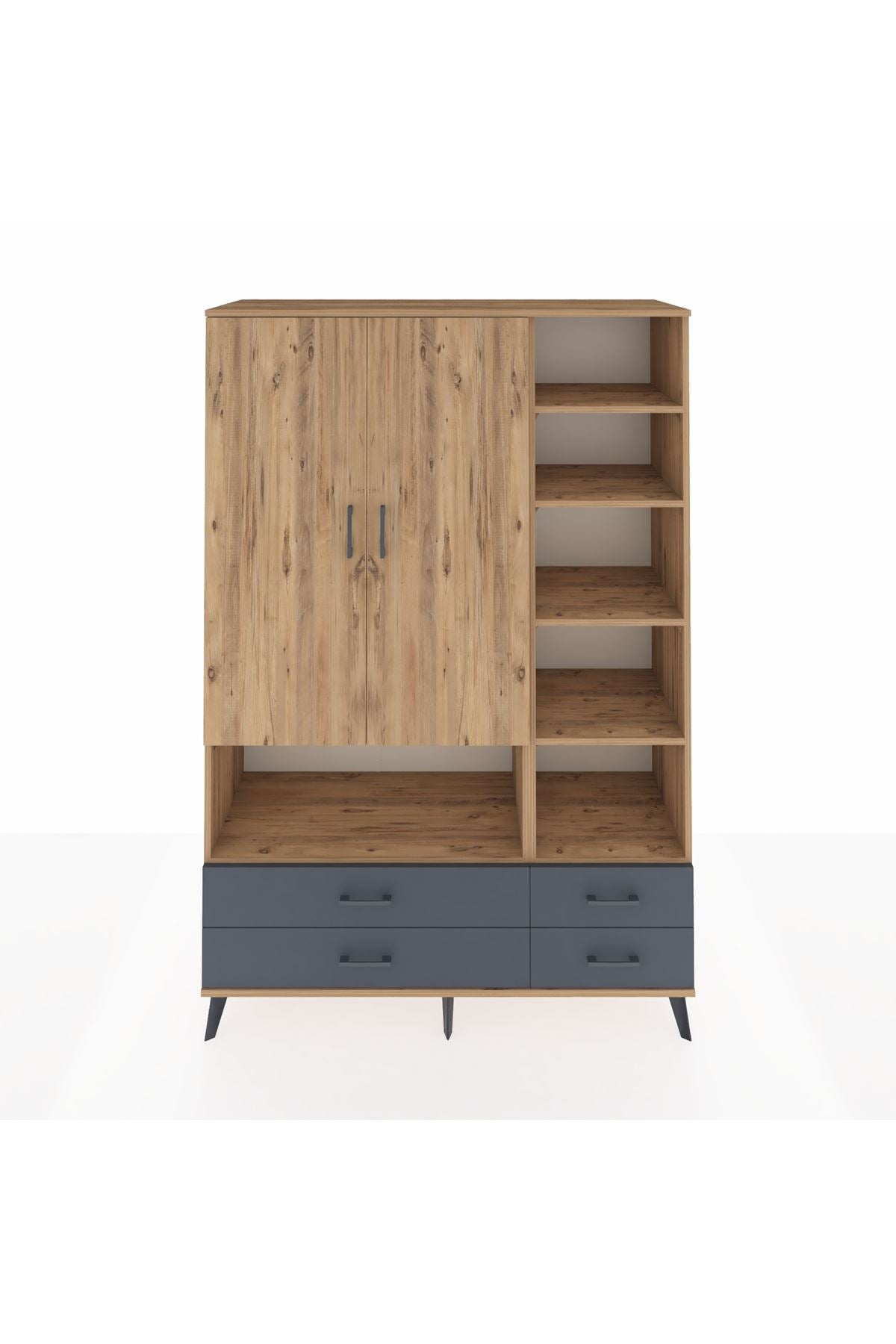 Hyperion Dolap 10 Raflı 4 Çekmeceli 2 Kapaklı 132x44x195 Çam-Çam/Antrasit