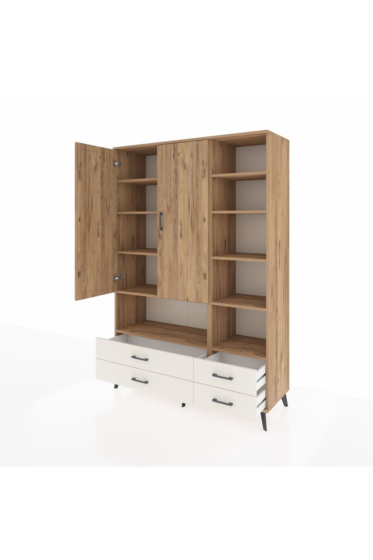 Hyperion Dolap 10 Raflı 4 Çekmeceli 2 Kapaklı 132x44x195 Çam-Çam/Aytaşı