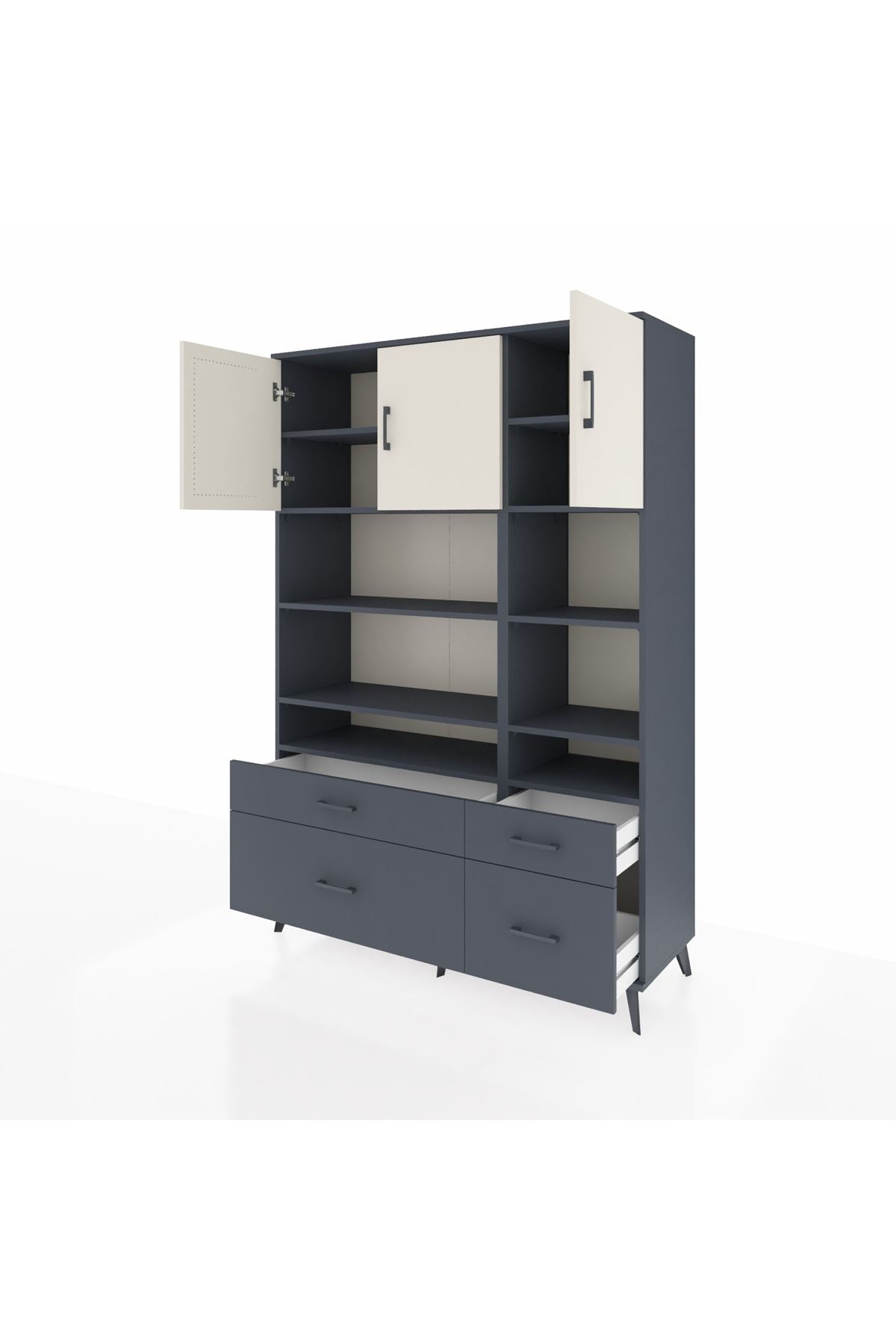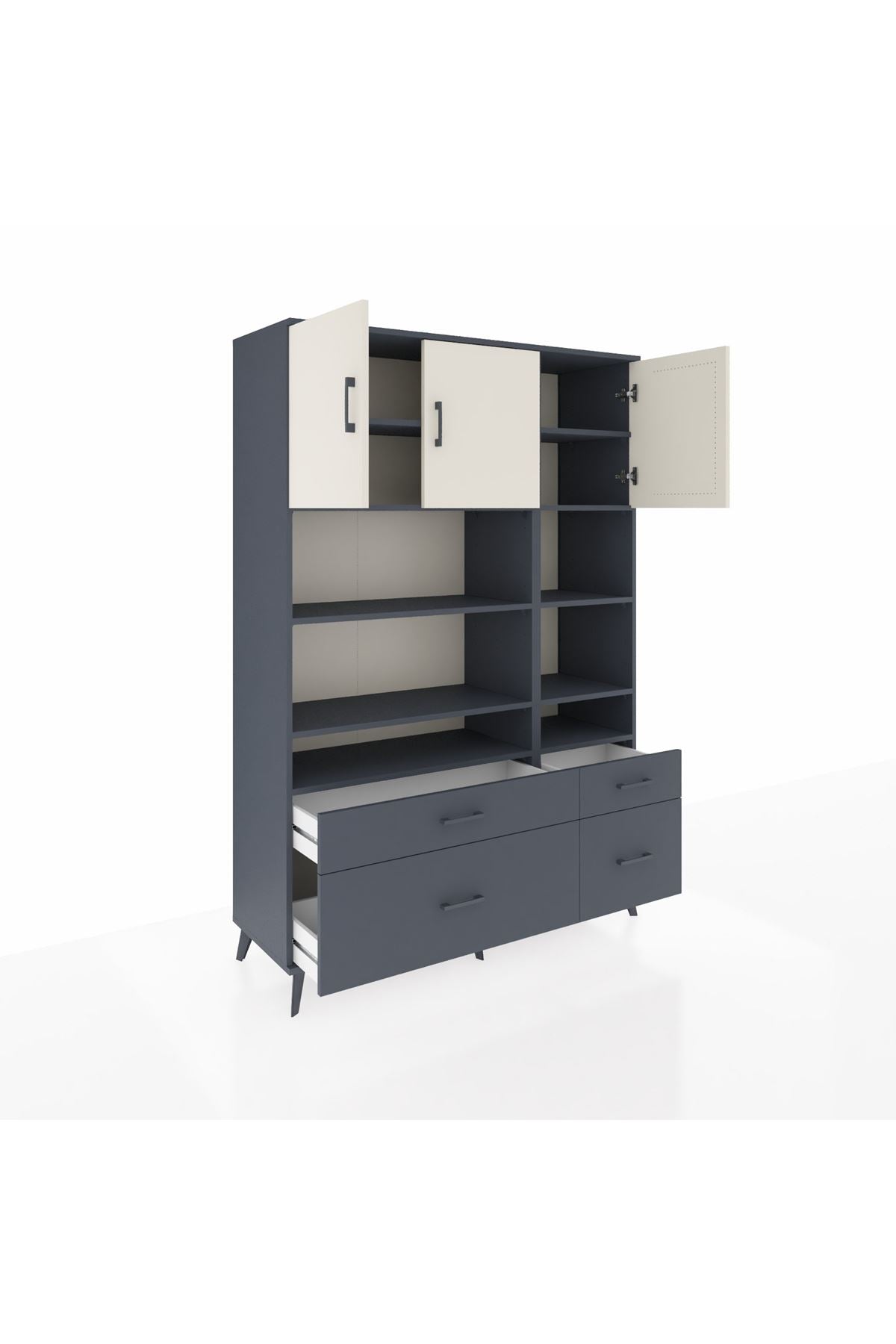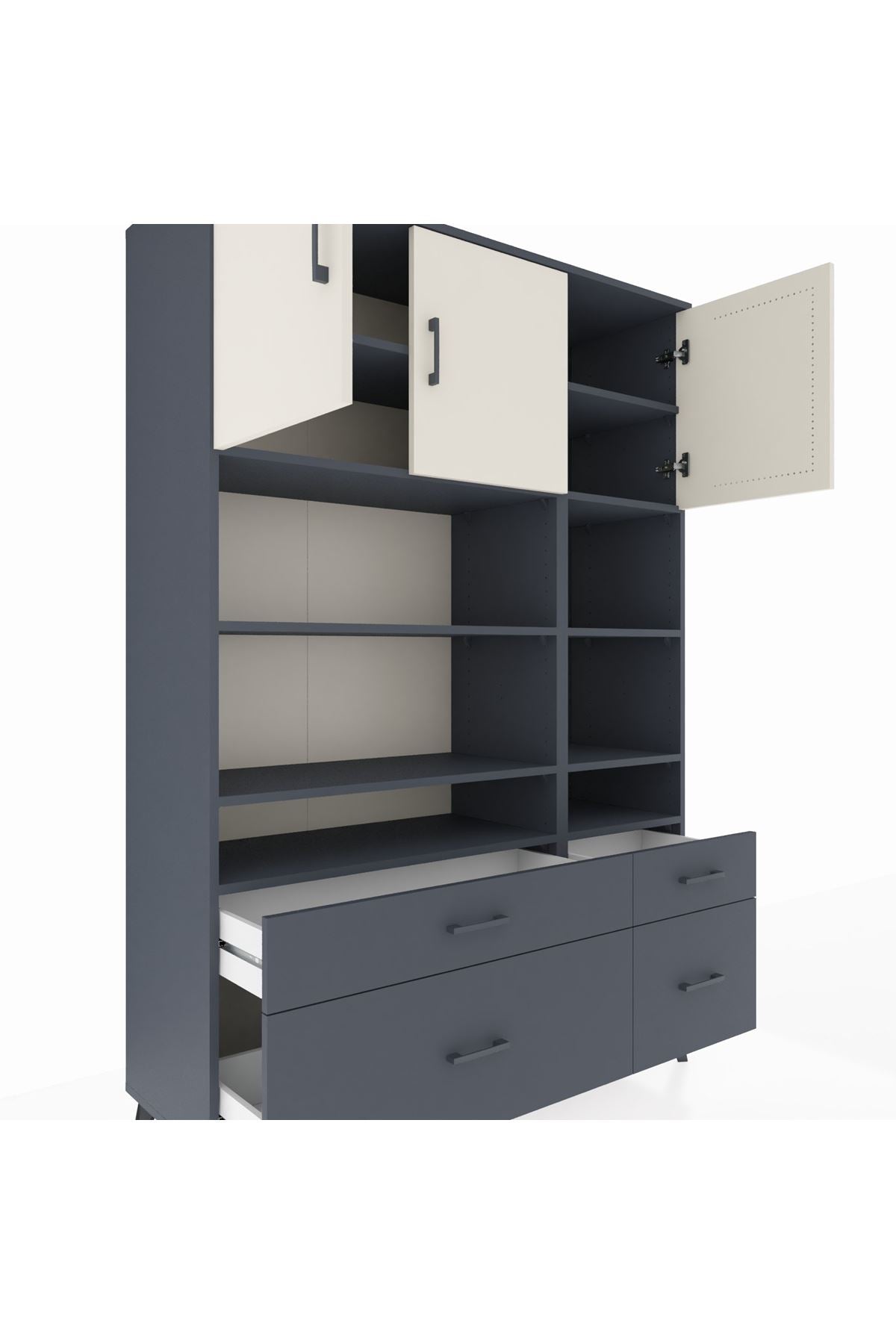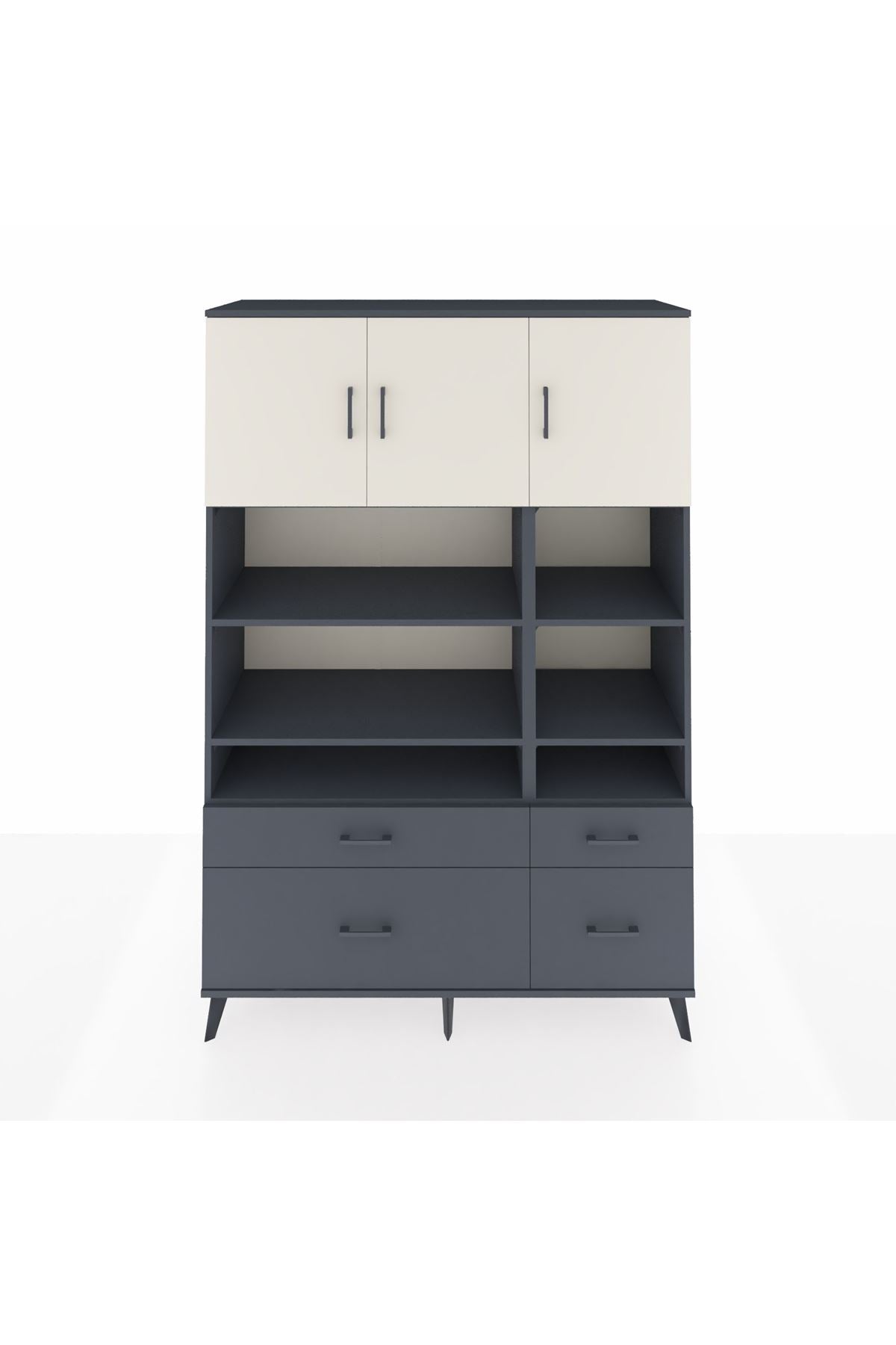 Hyperion Dolap 10 Raflı 4 Çekmeceli 3 Kapaklı 132x44x195 Antrasit-Aytaşı/Antrasit