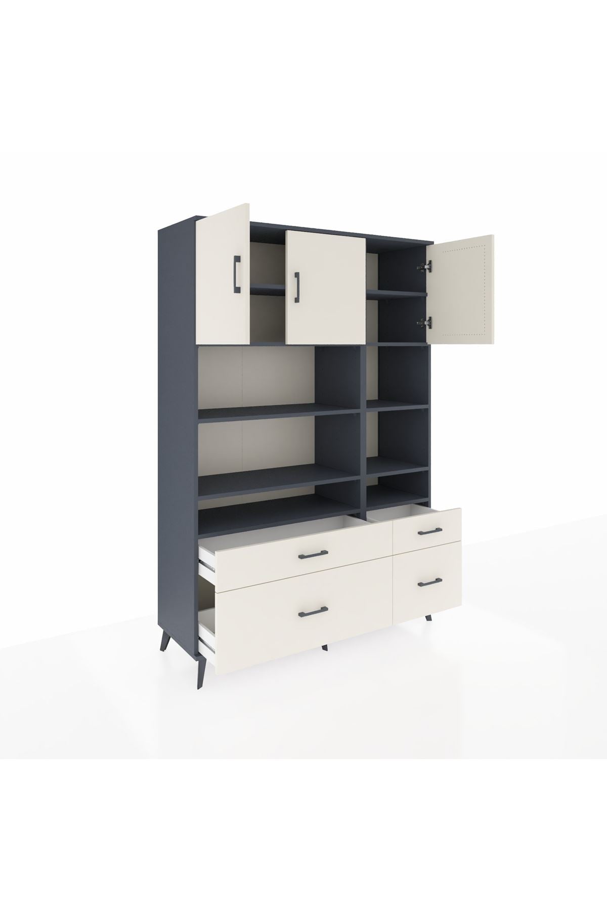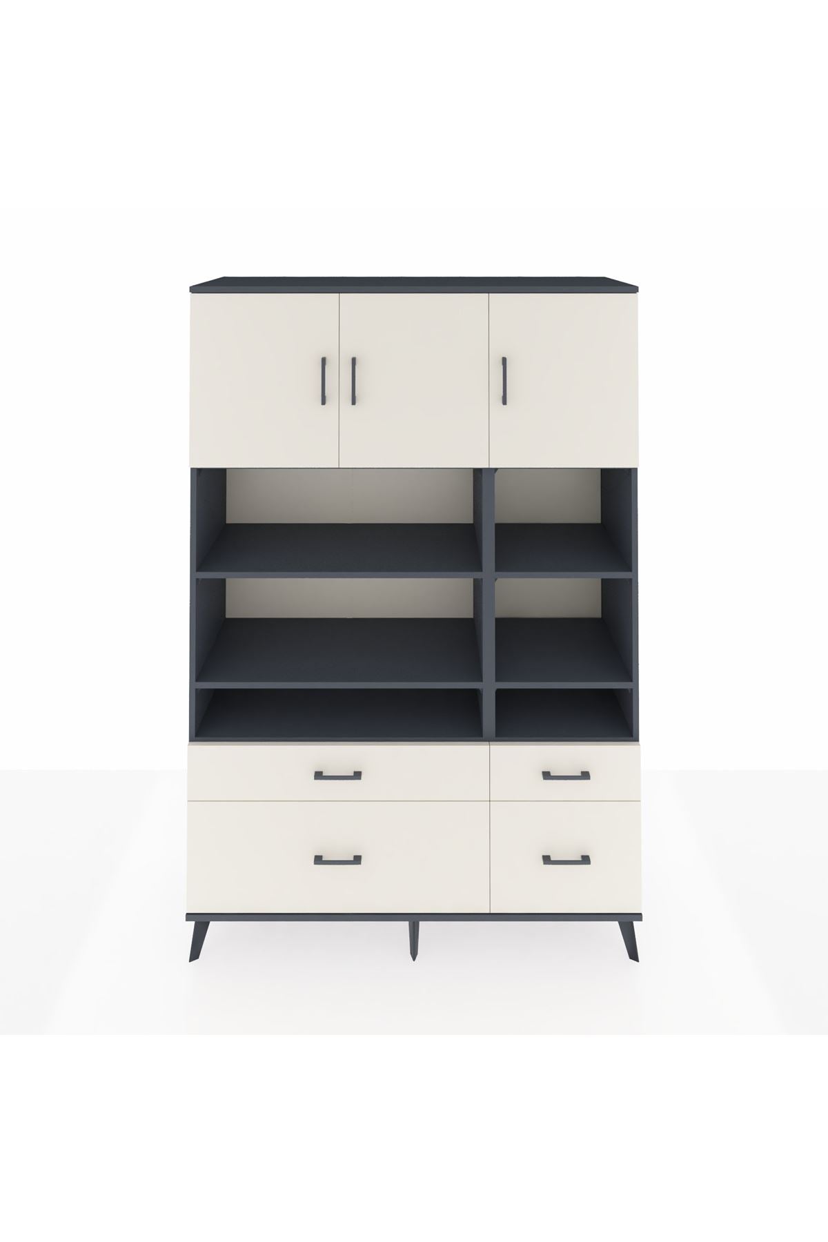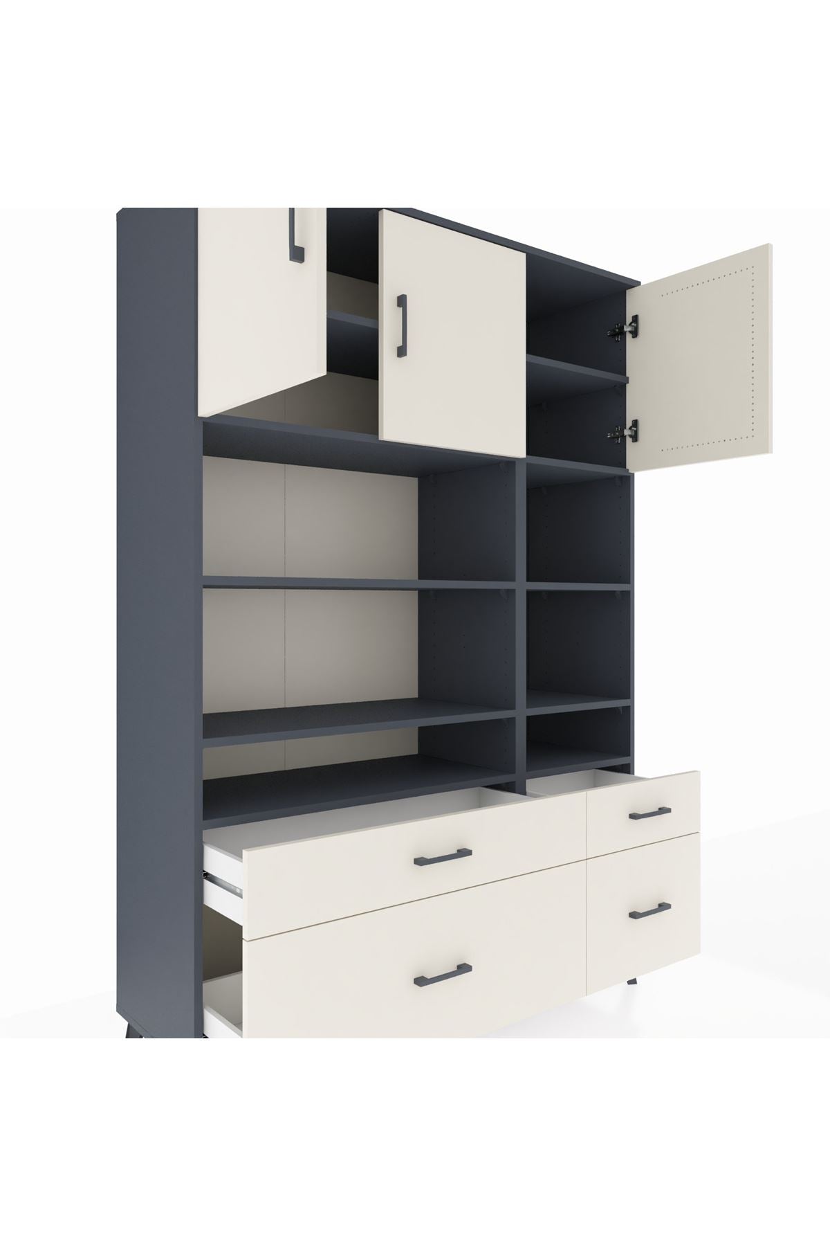 Hyperion Dolap 10 Raflı 4 Çekmeceli 3 Kapaklı 132x44x195 Antrasit-Aytaşı/Aytaşı