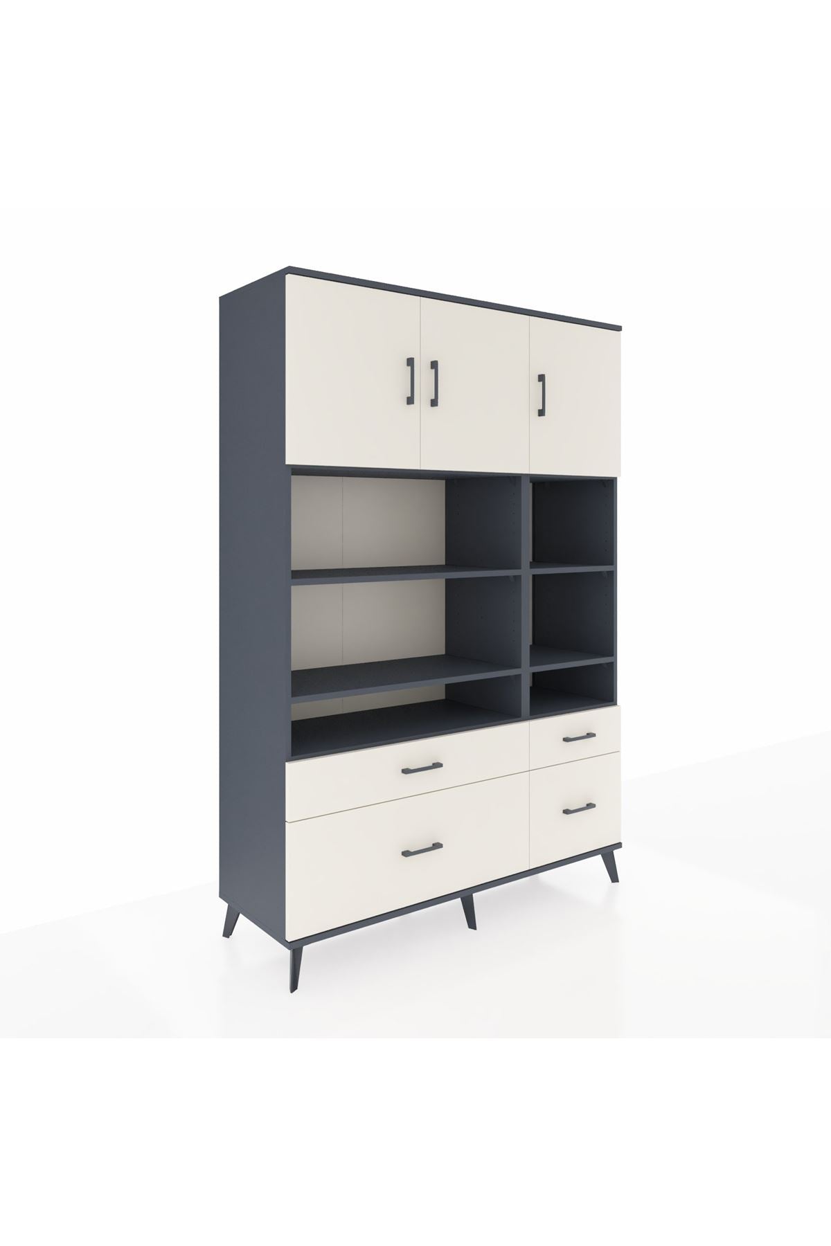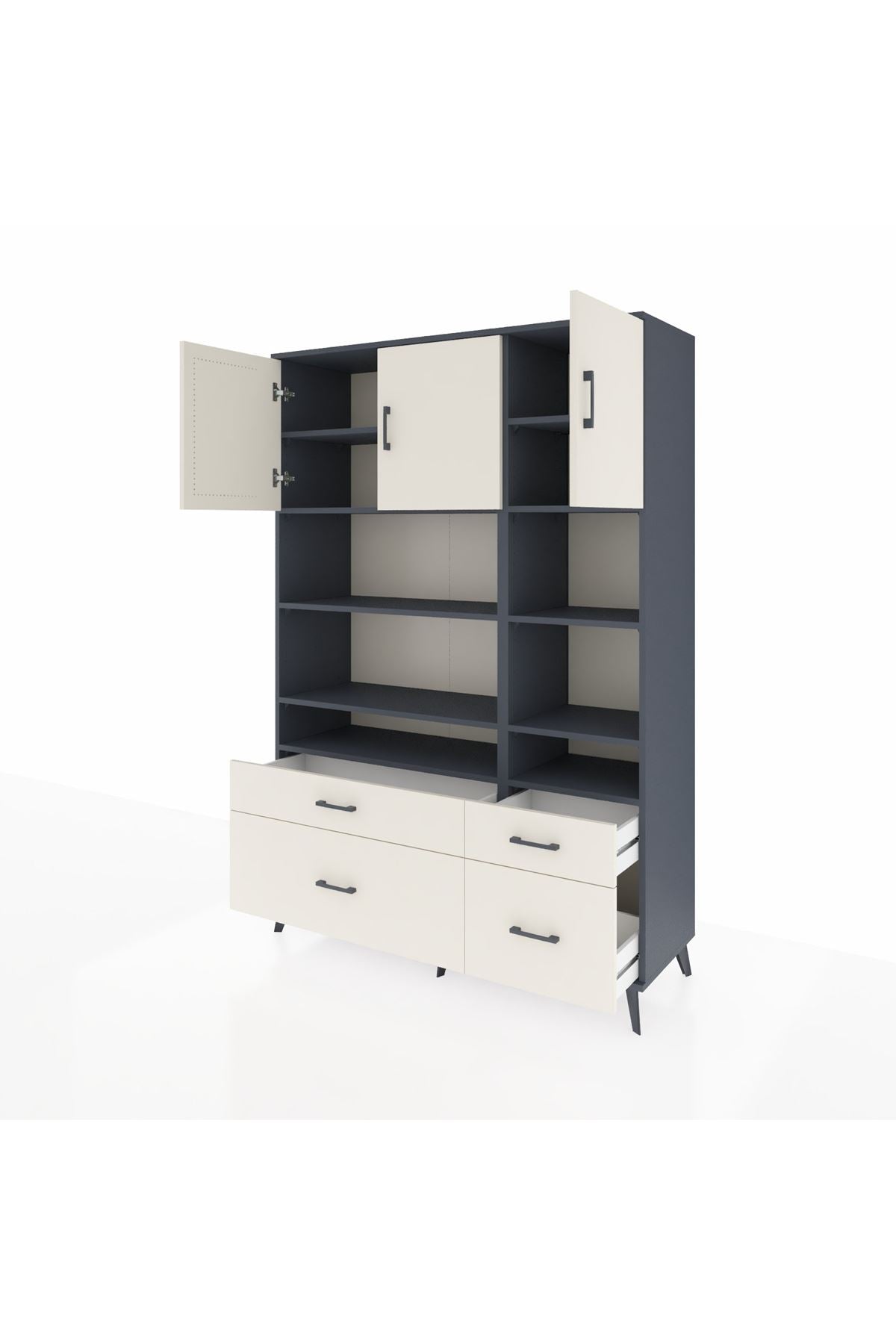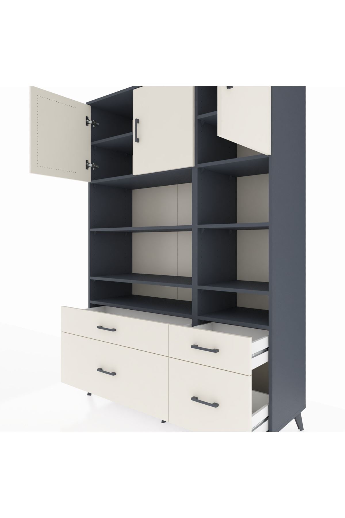 Hyperion Dolap 10 Raflı 4 Çekmeceli 3 Kapaklı 132x44x195 Antrasit-Aytaşı/Aytaşı