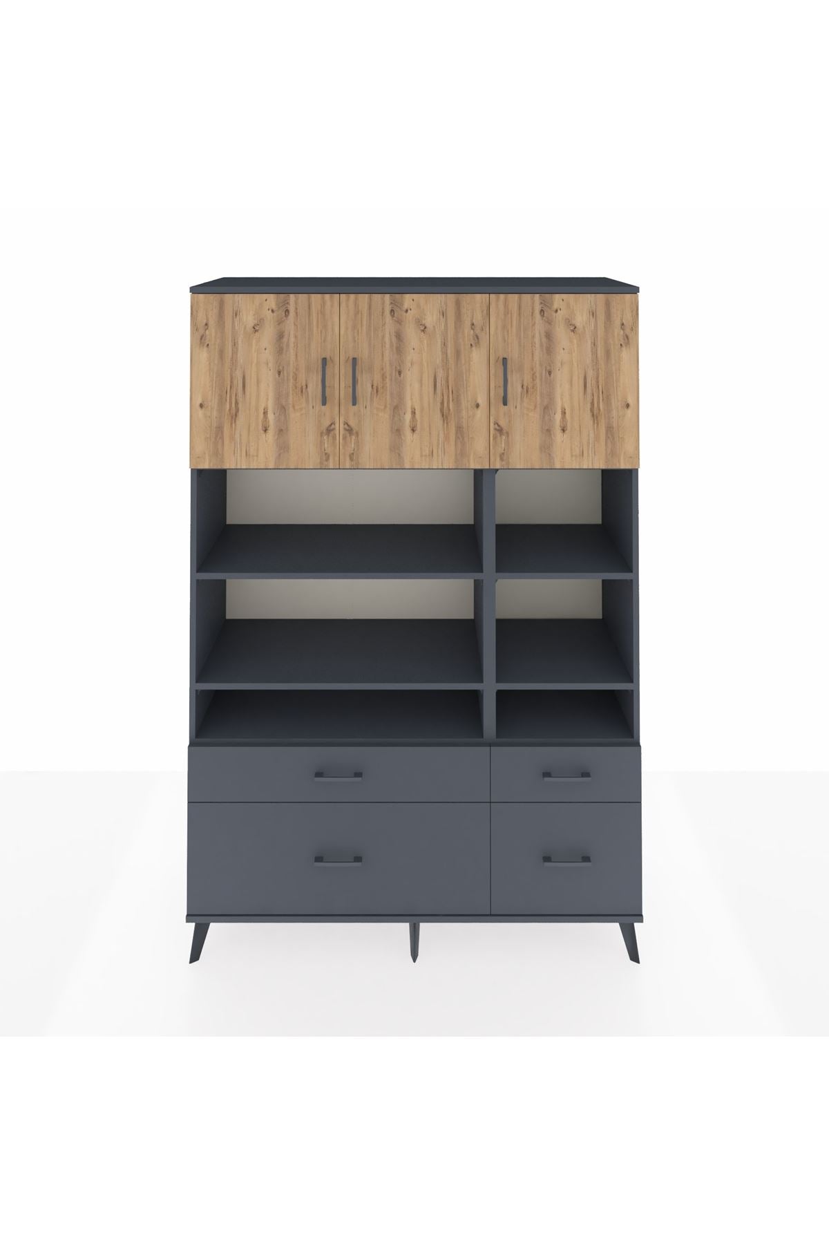 Hyperion Dolap 10 Raflı 4 Çekmeceli 3 Kapaklı 132x44x195 Antrasit-Çam/Antrasit