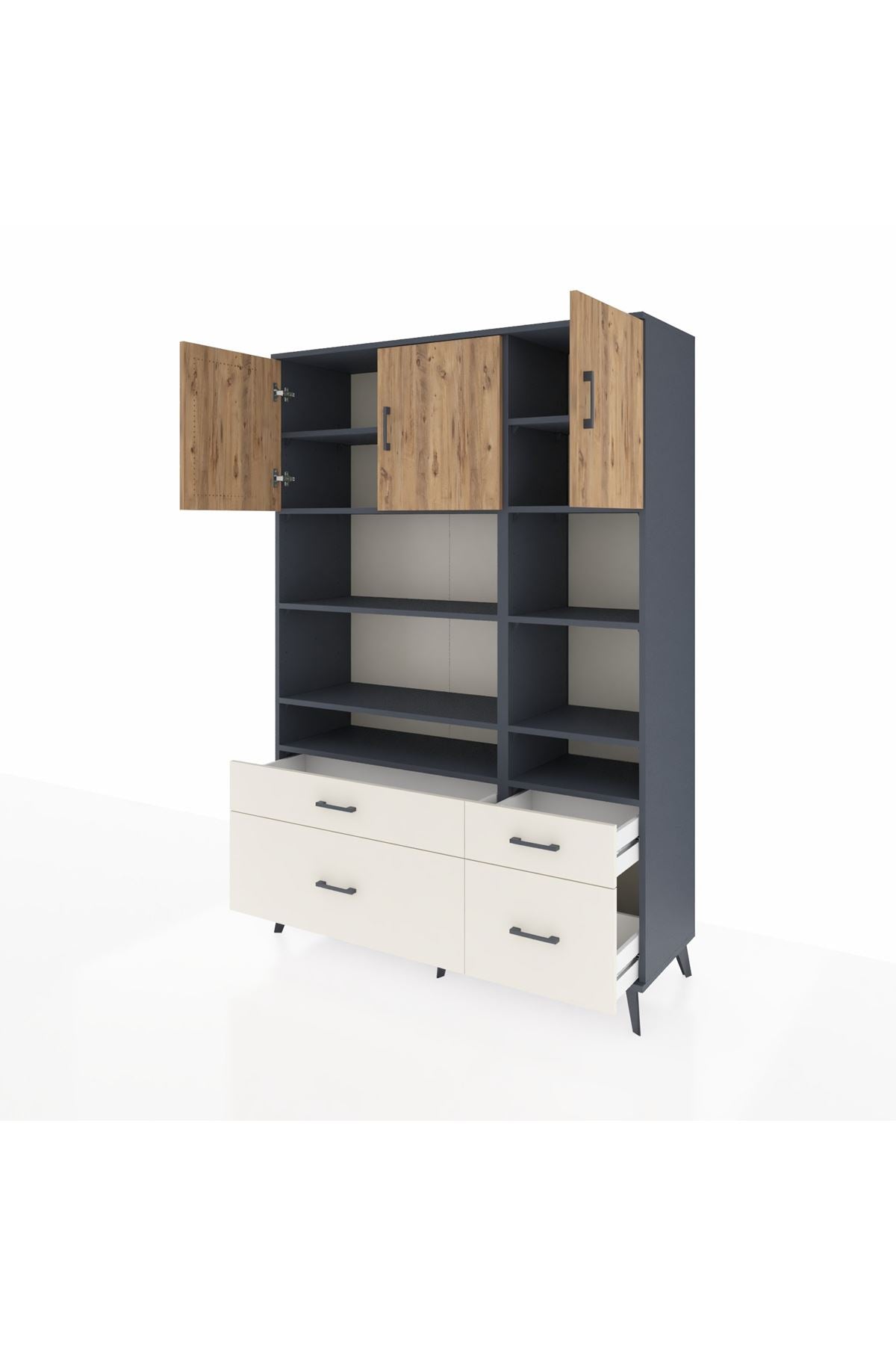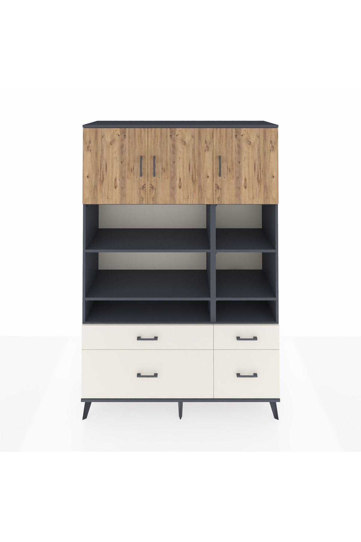 Hyperion Dolap 10 Raflı 4 Çekmeceli 3 Kapaklı 132x44x195 Antrasit-Çam/Aytaşı