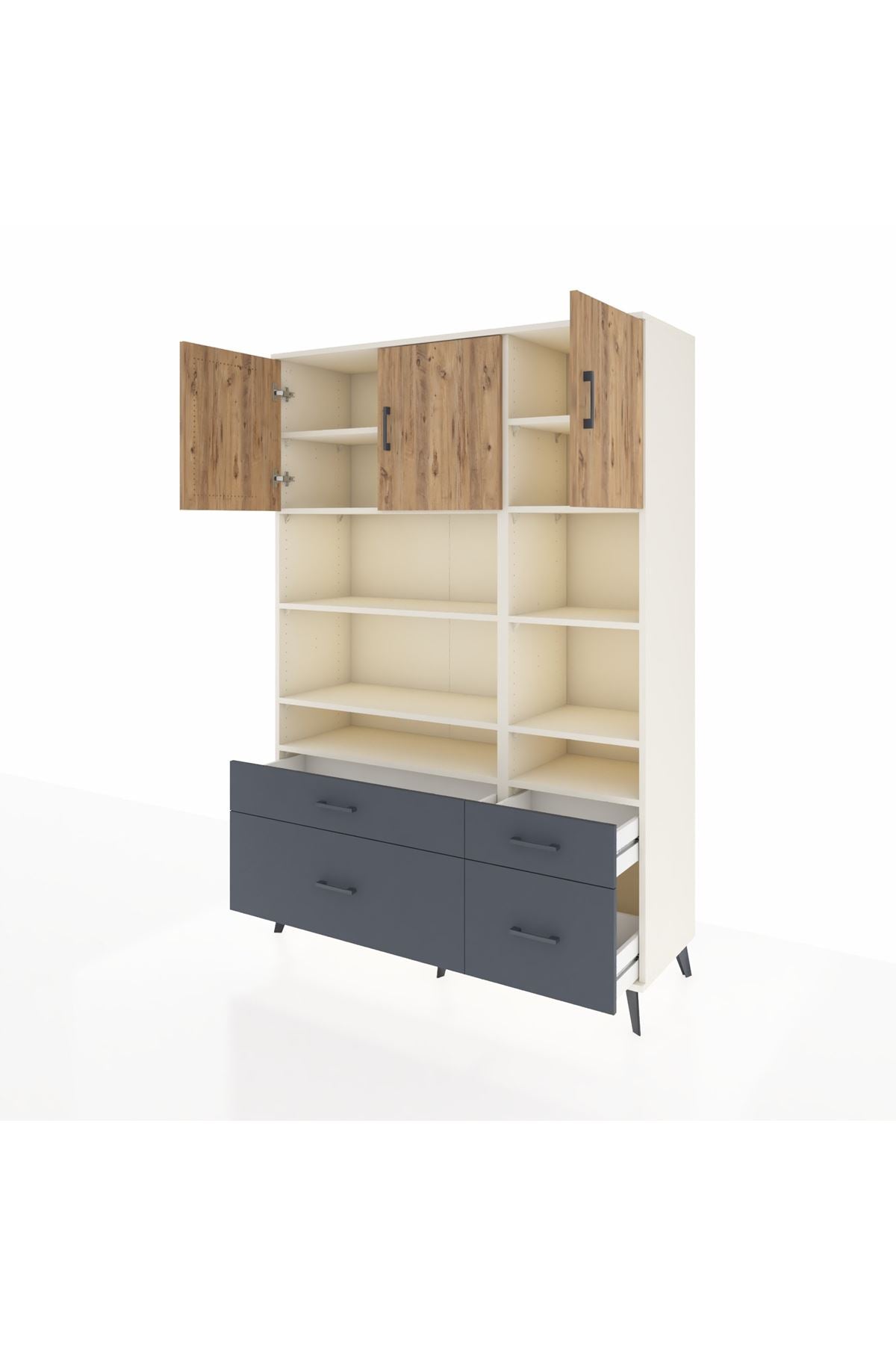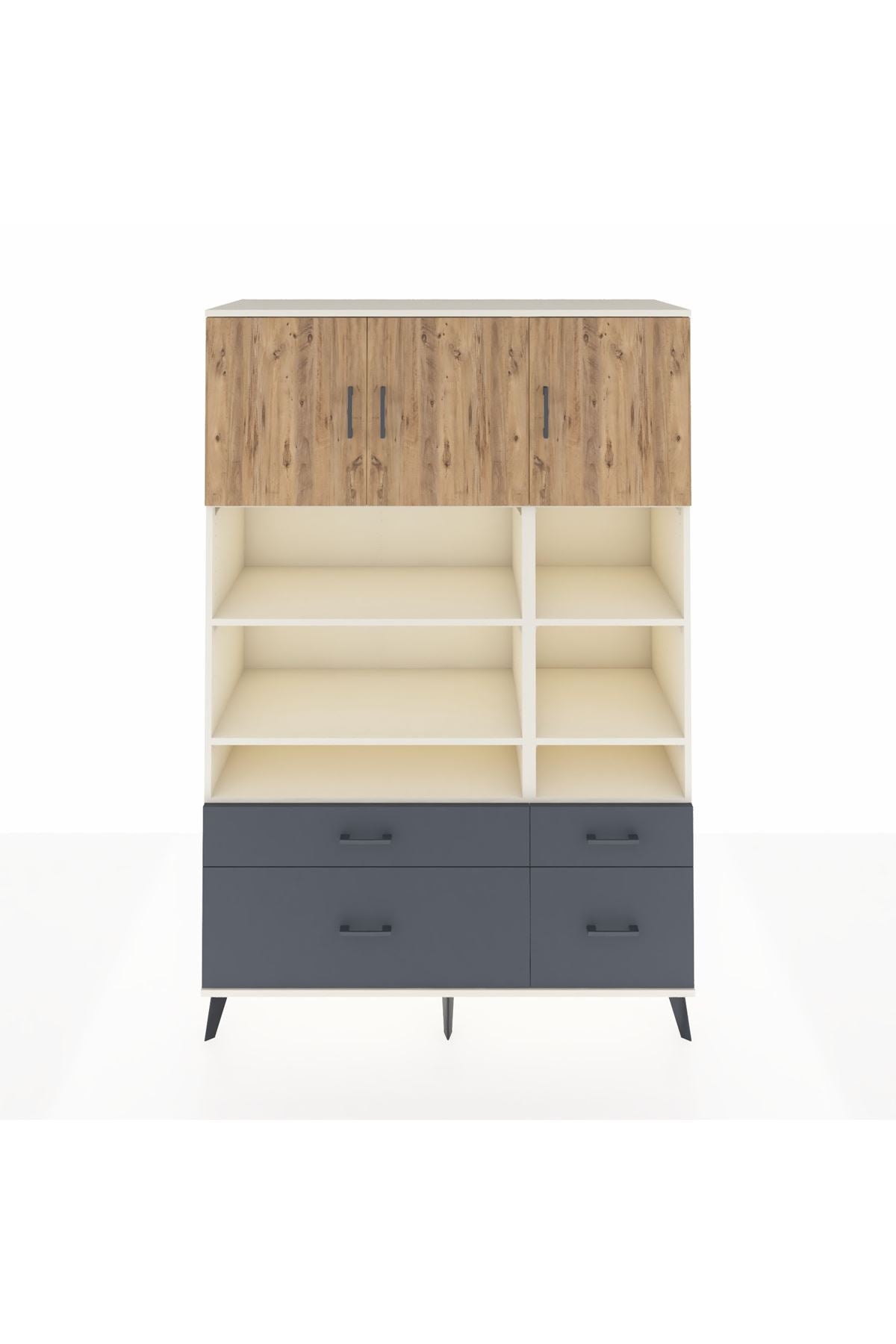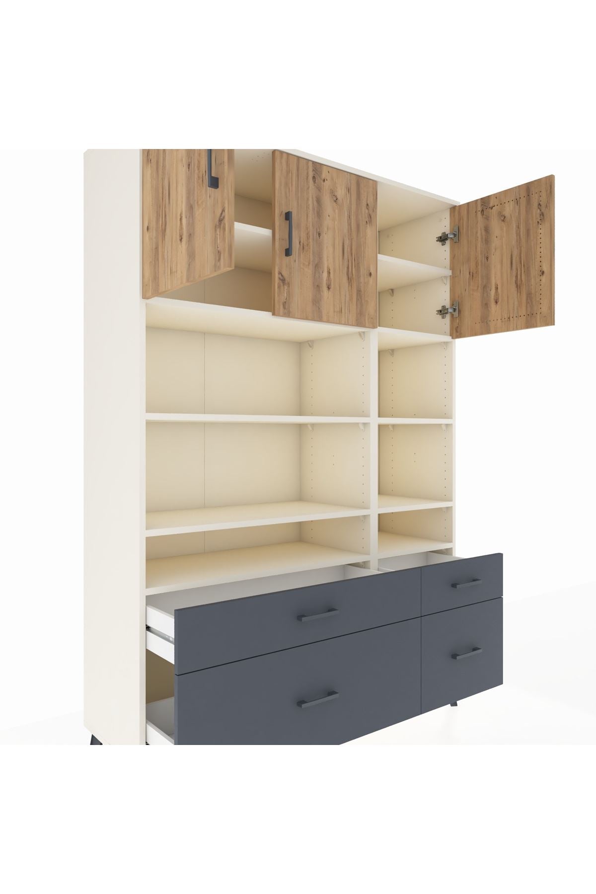 Hyperion Dolap 10 Raflı 4 Çekmeceli 3 Kapaklı 132x44x195 Aytaşı-Çam/Antrasit
