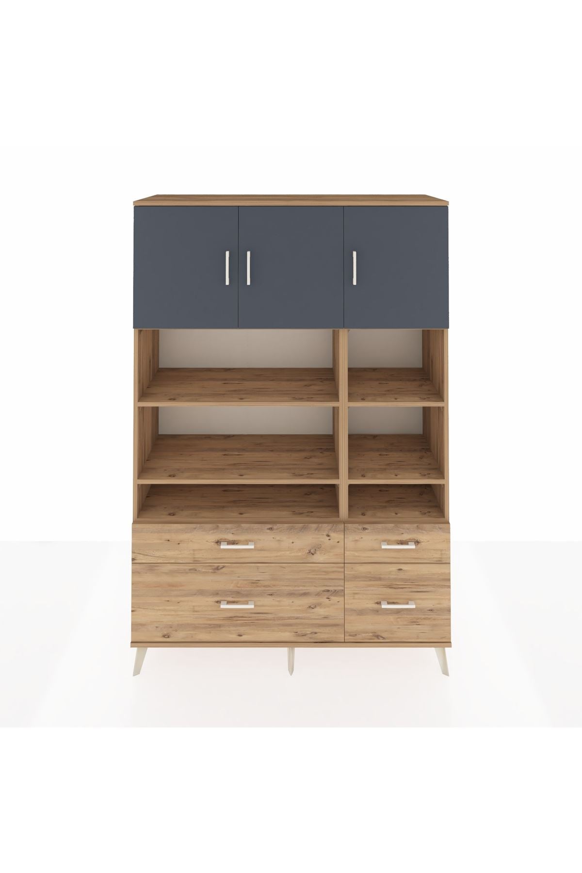 Hyperion Dolap 10 Raflı 4 Çekmeceli 3 Kapaklı 132x44x195 Çam-Antrasit/Çam