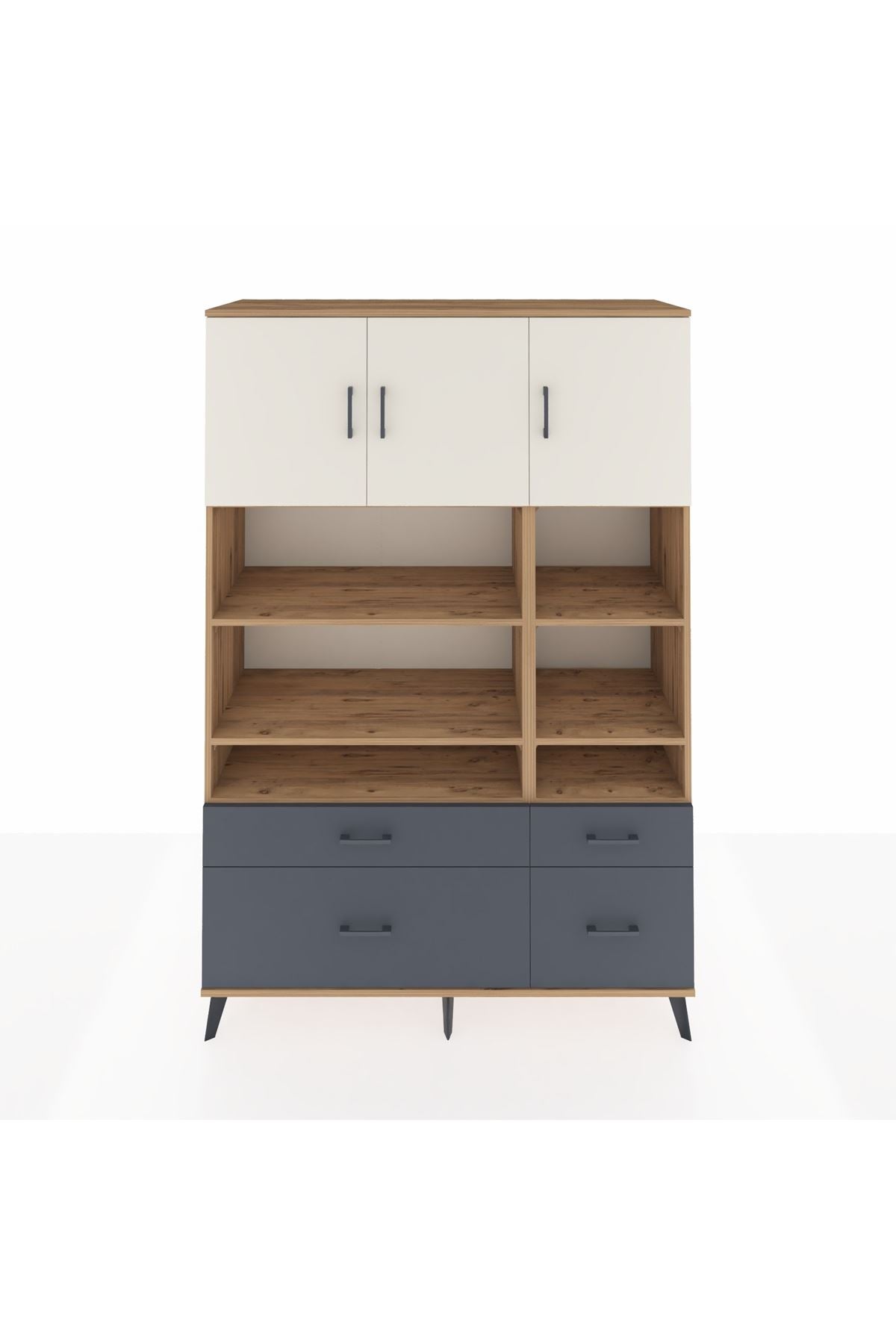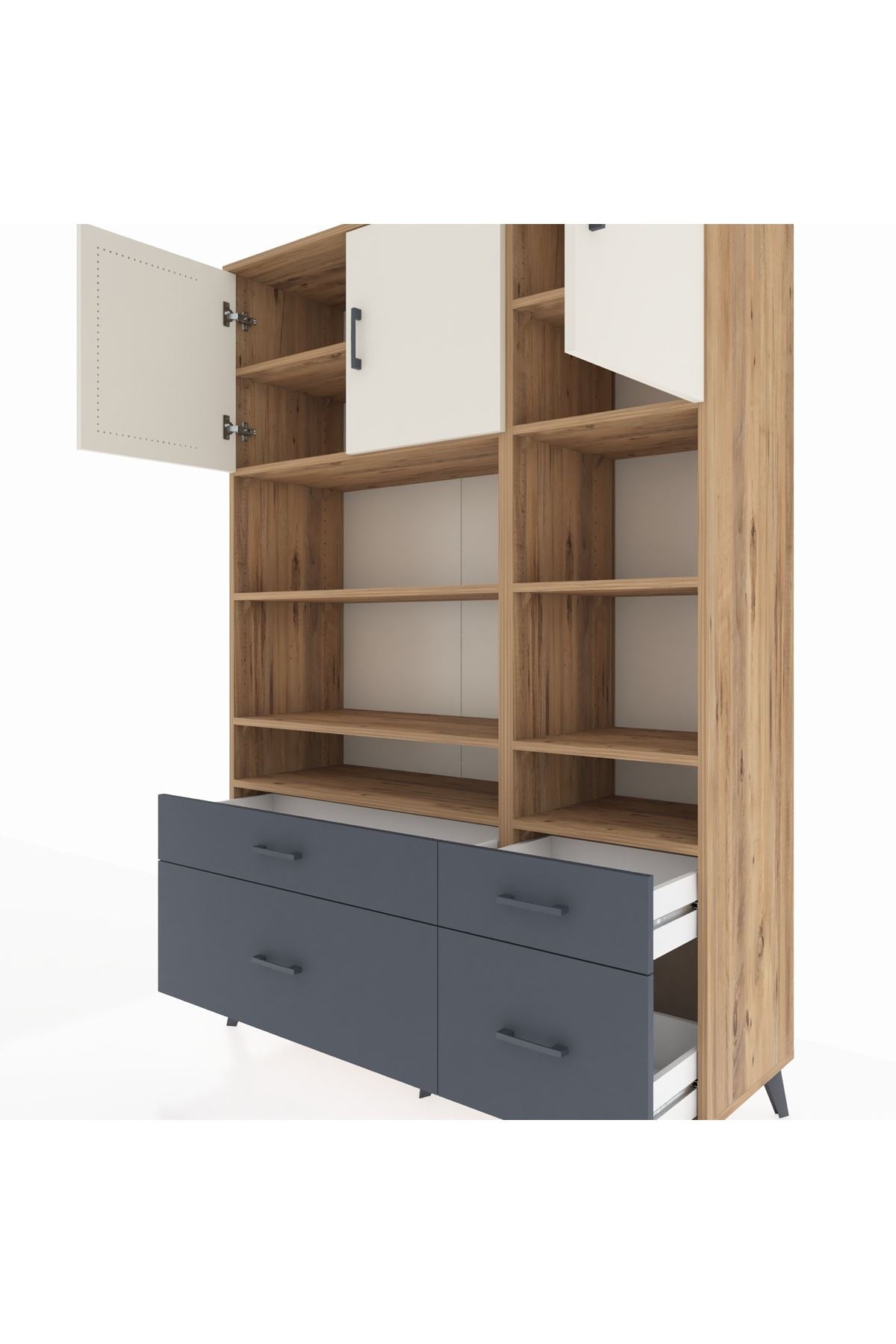 Hyperion Dolap 10 Raflı 4 Çekmeceli 3 Kapaklı 132x44x195 Çam-Aytaşı/Antrasit