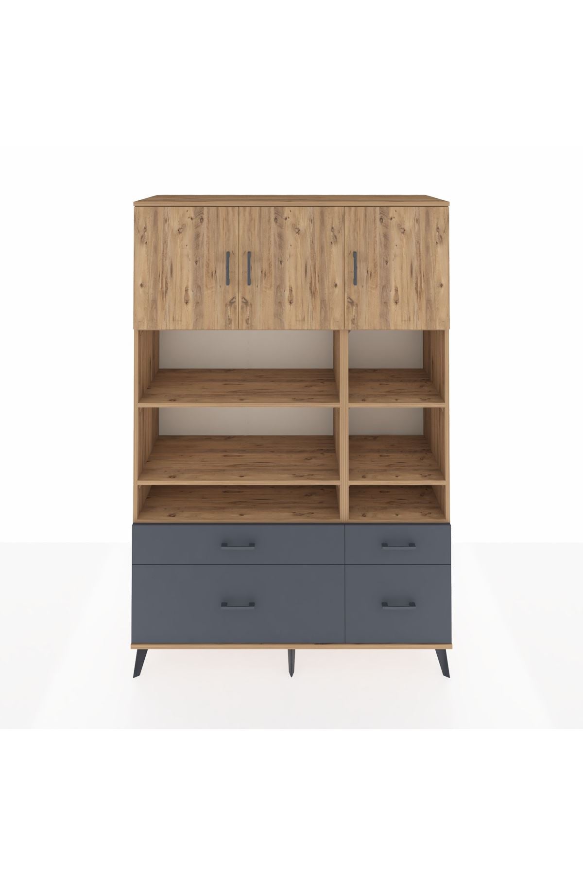 Hyperion Dolap 10 Raflı 4 Çekmeceli 3 Kapaklı 132x44x195 Çam-Çam/Antrasit