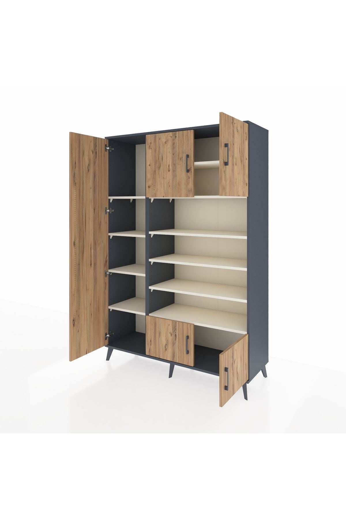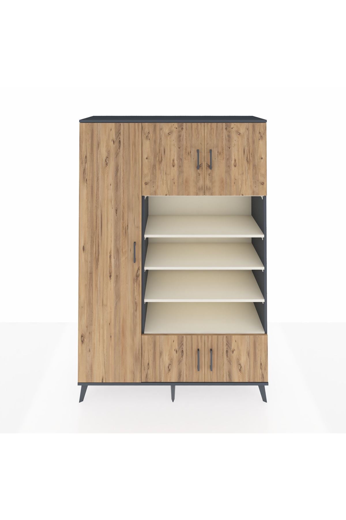 Hyperion Dolap 10 Raflı 5 Kapaklı 132x44x195 Antrasit-Çam/Aytaşı