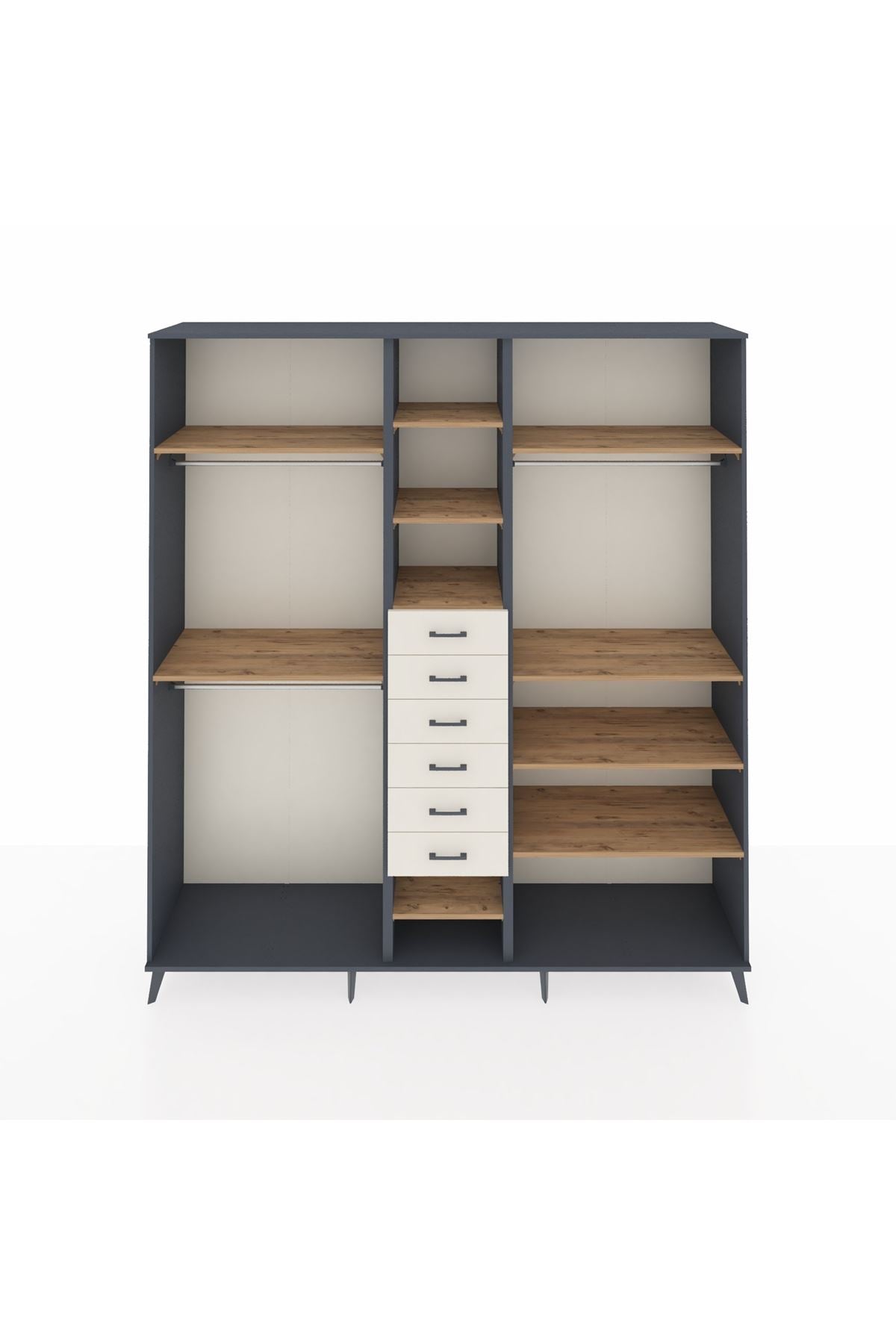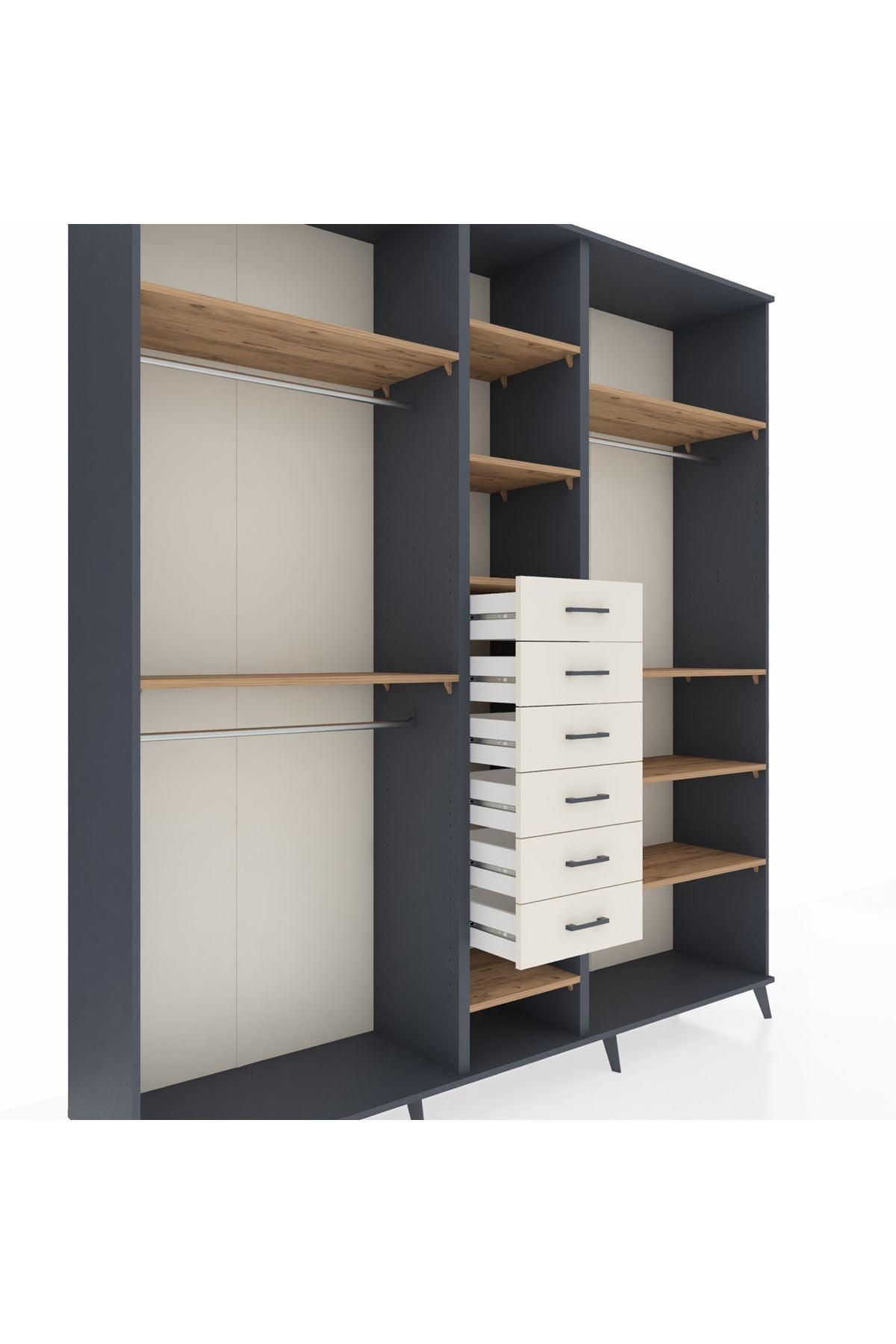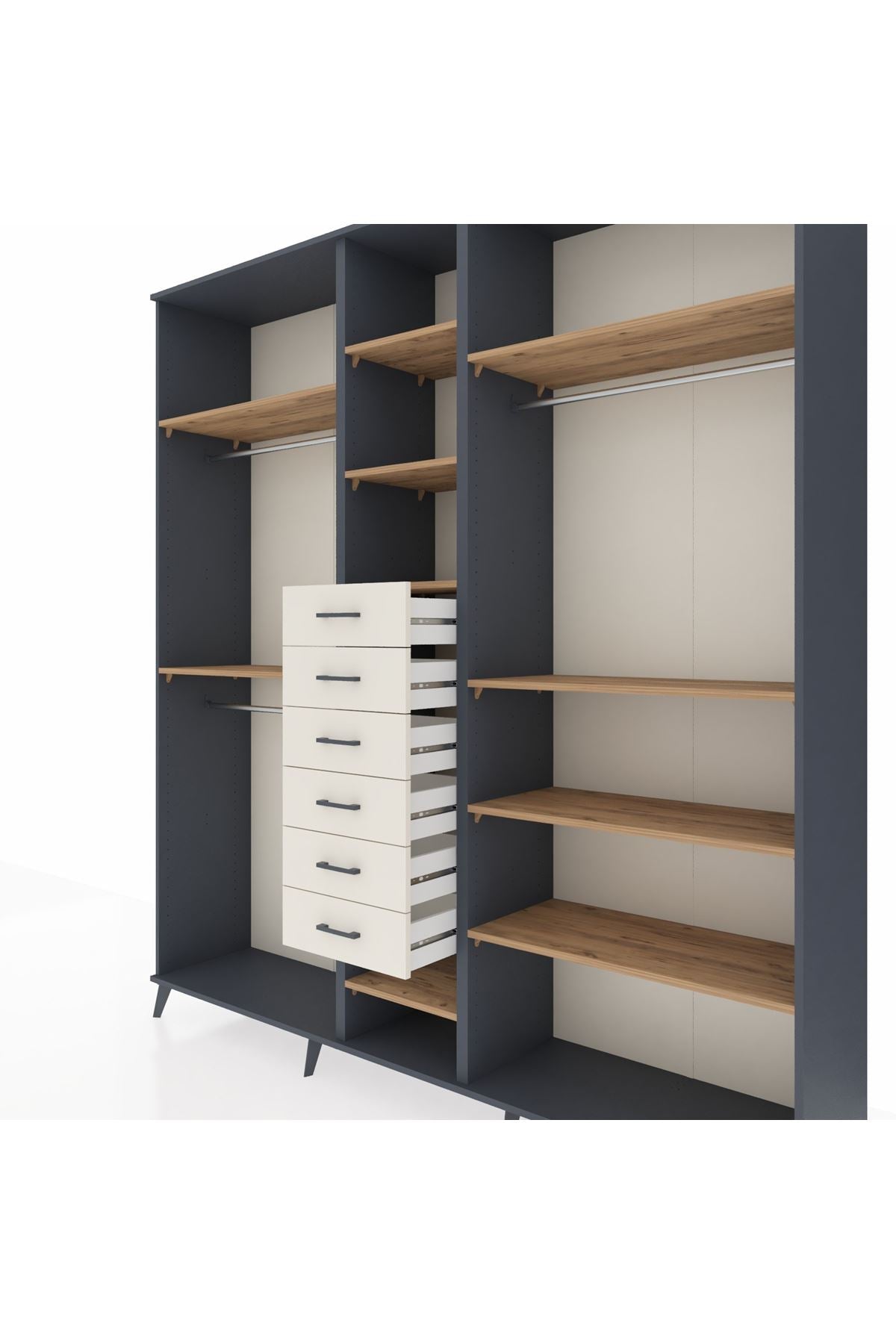Hyperion Dolap 10 Raflı 6 Çekmeceli 3 Askılı 220x44x243 Antrasit-Çam/Aytaşı