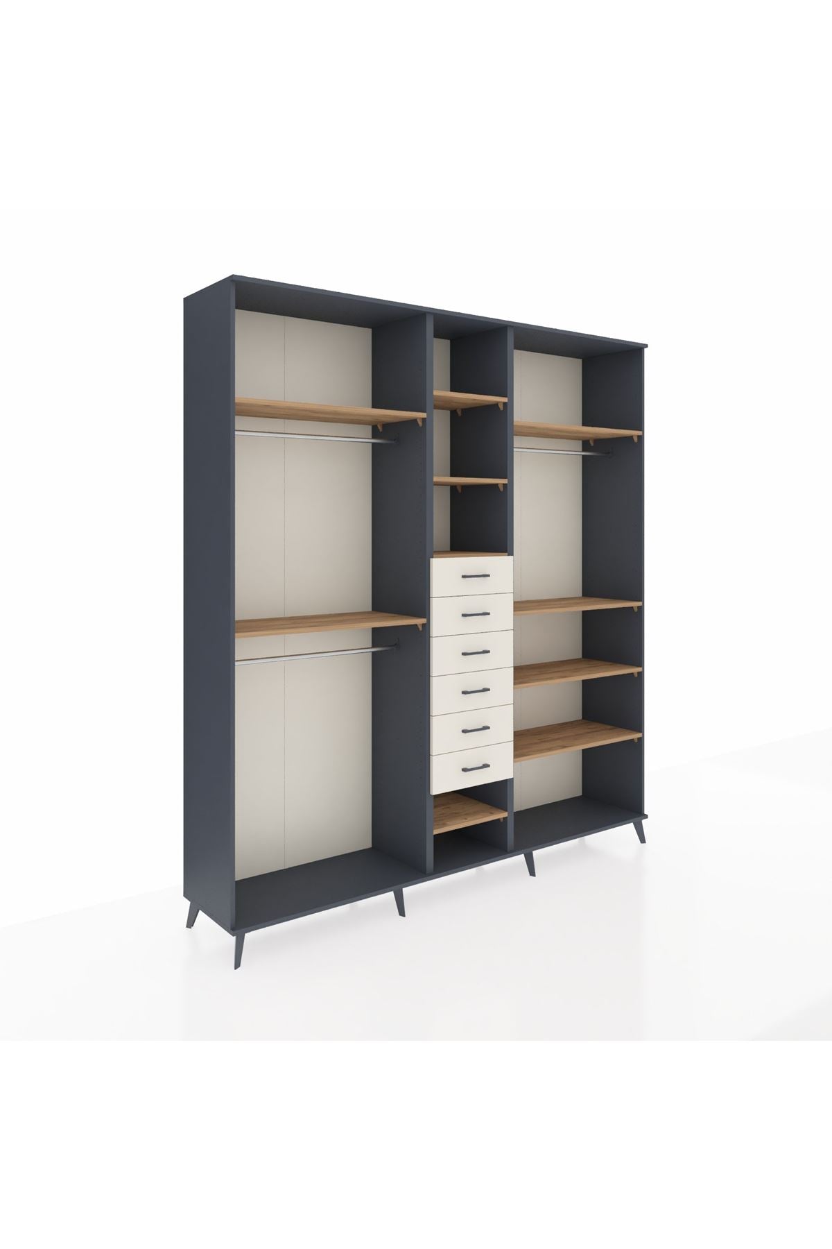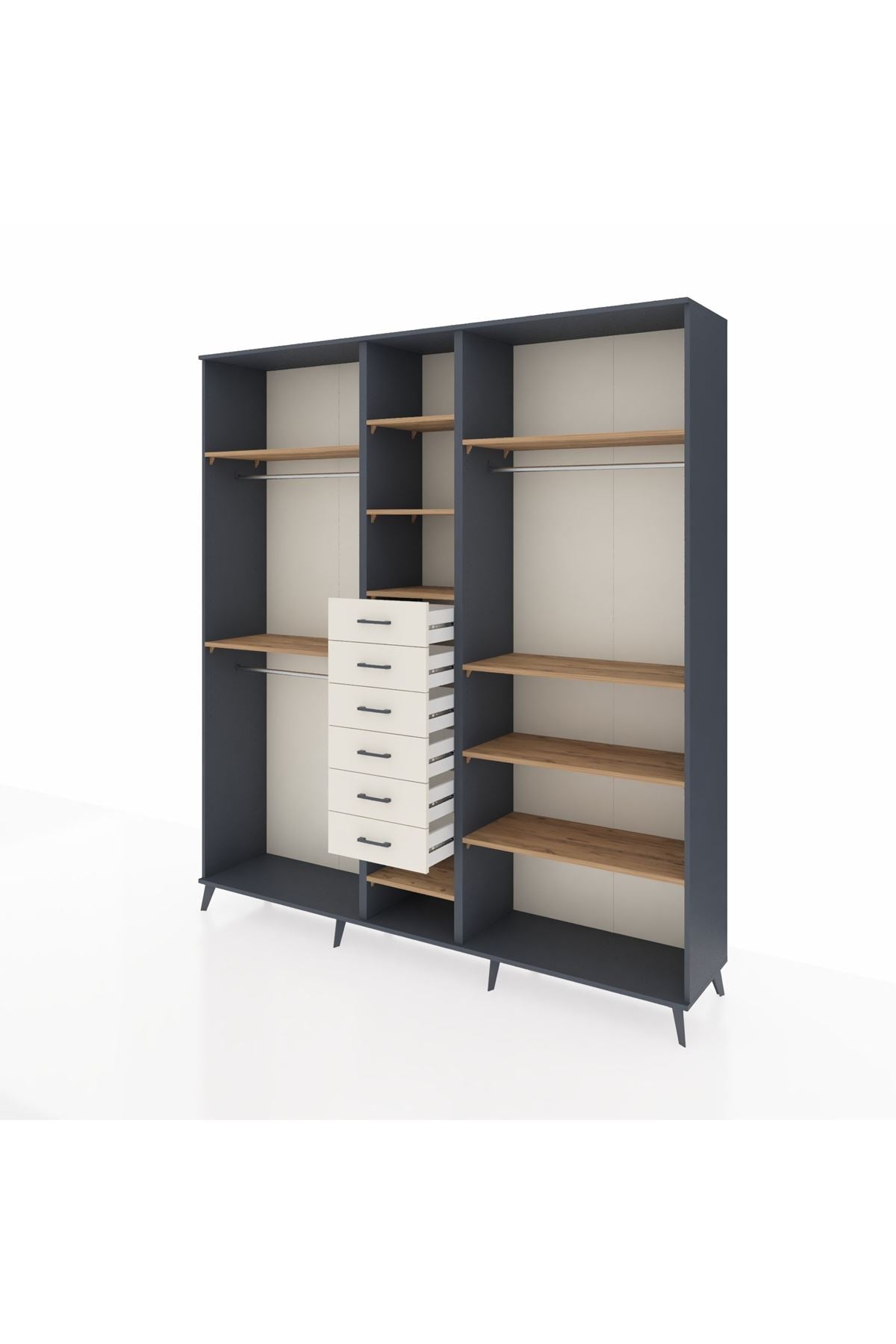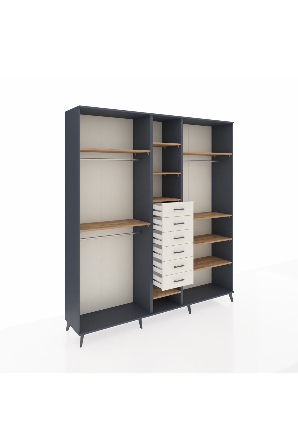 Hyperion Dolap 10 Raflı 6 Çekmeceli 3 Askılı 220x44x243 Antrasit-Çam/Aytaşı