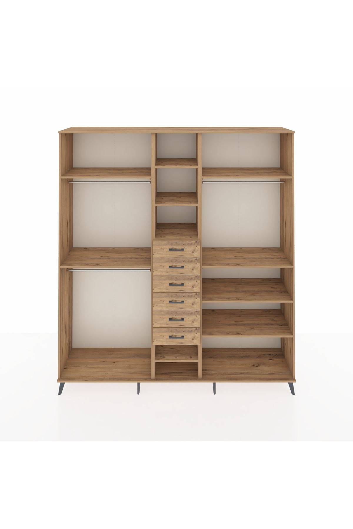 Hyperion Dolap 10 Raflı 6 Çekmeceli 3 Askılı 220x44x243 Çam-Çam/Çam
