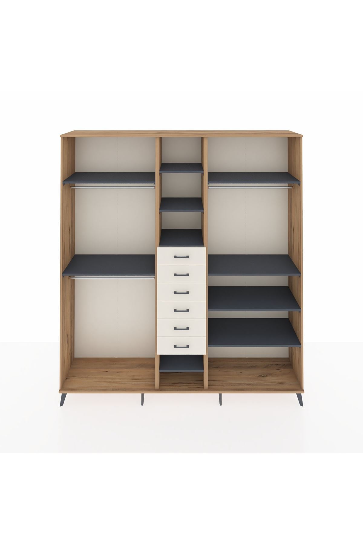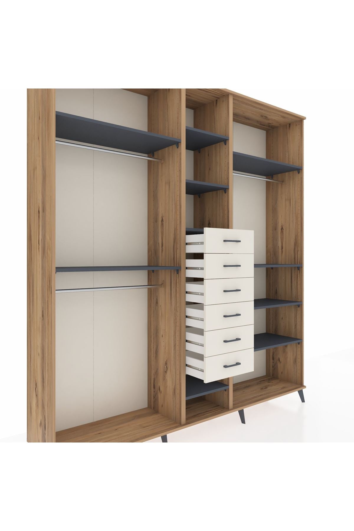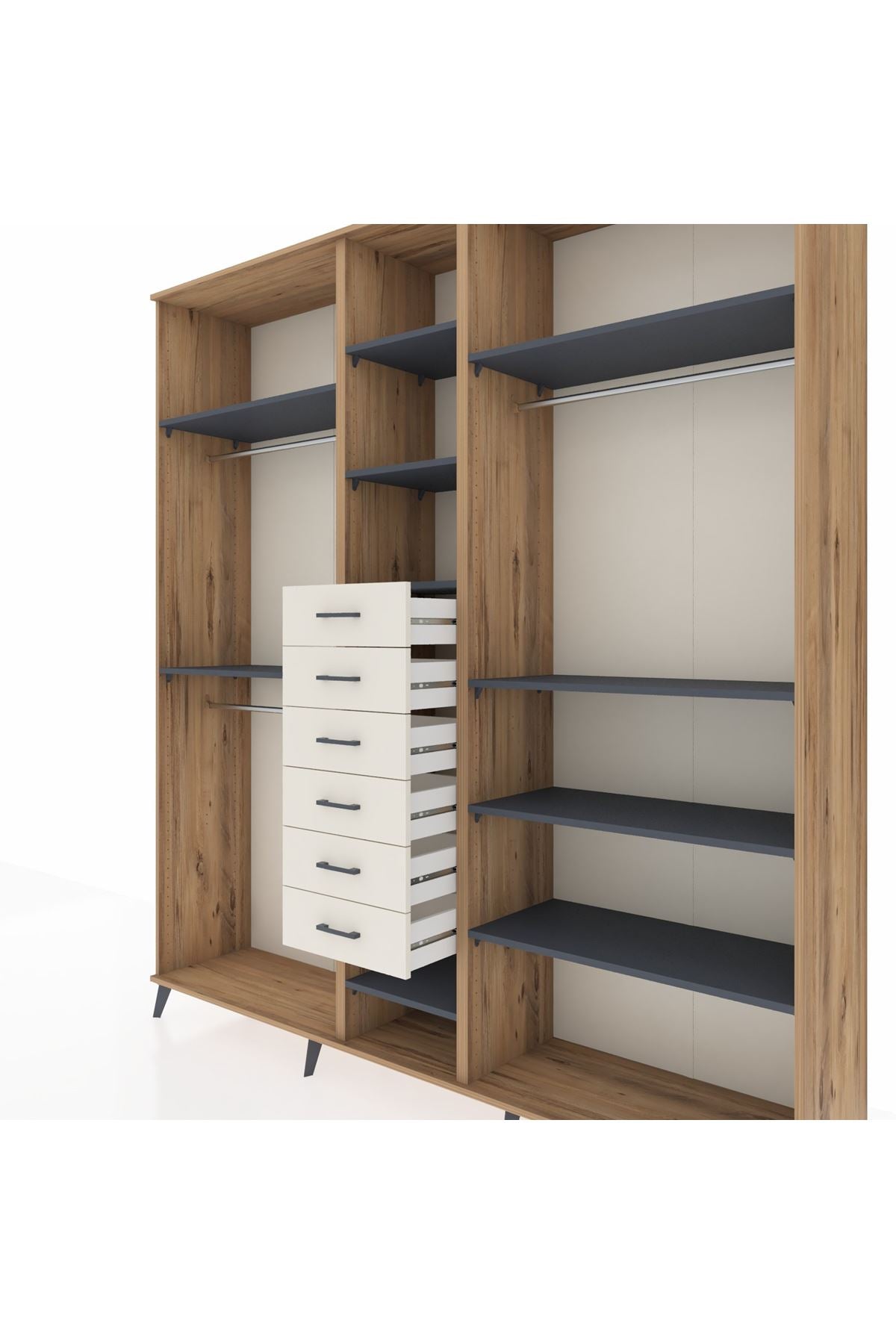 Hyperion Dolap 10 Raflı 6 Çekmeceli 3 Askılı 220x44x243 Çam-Antrasit/Aytaşı