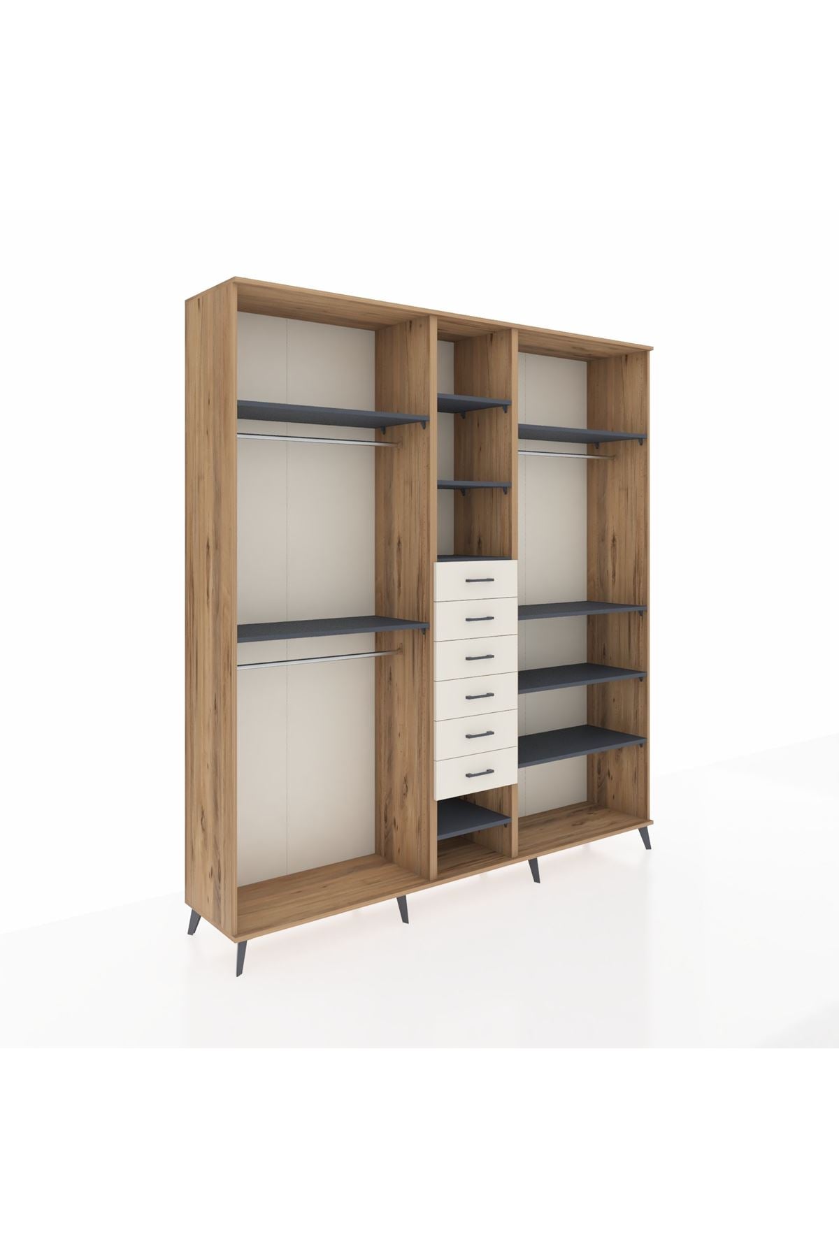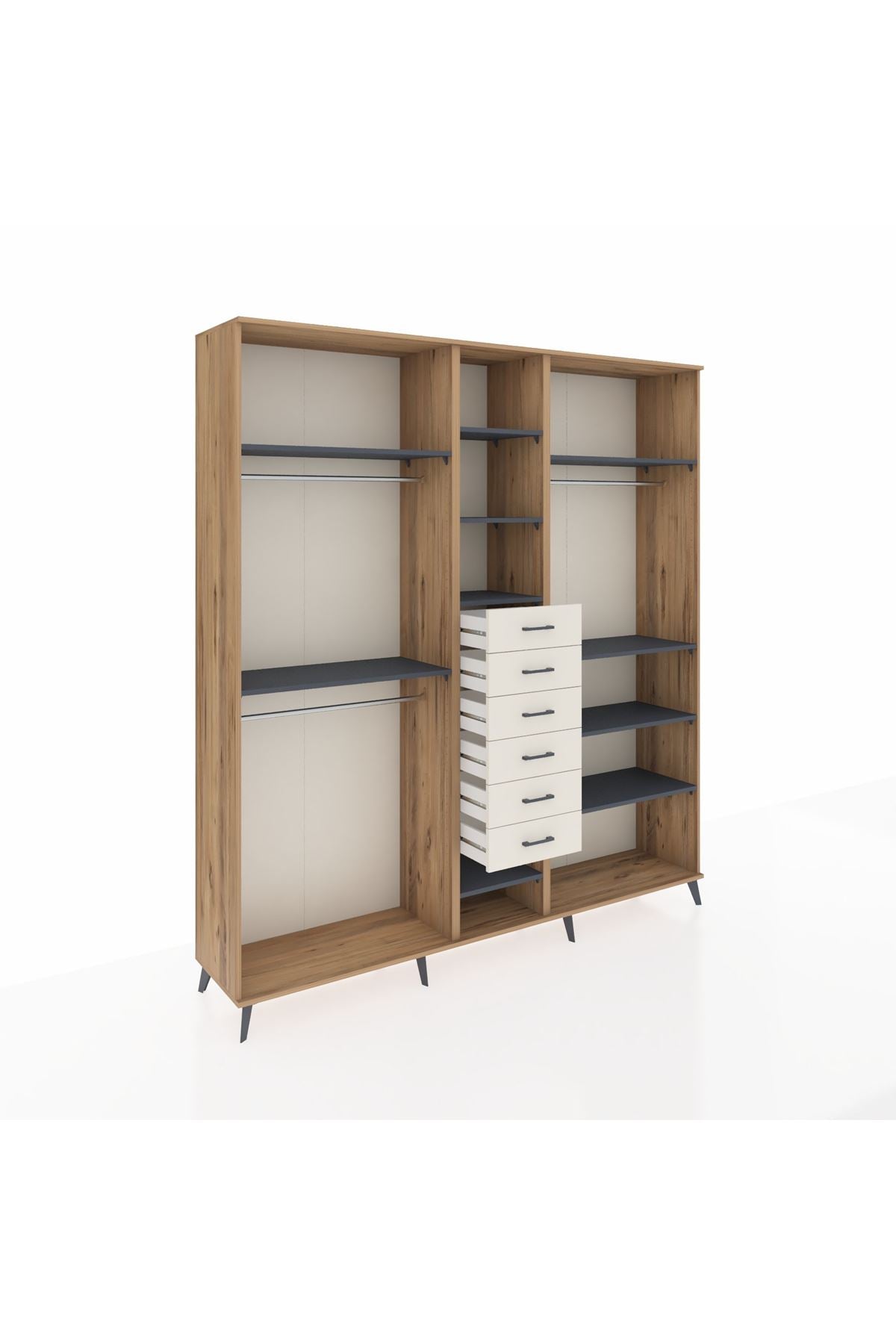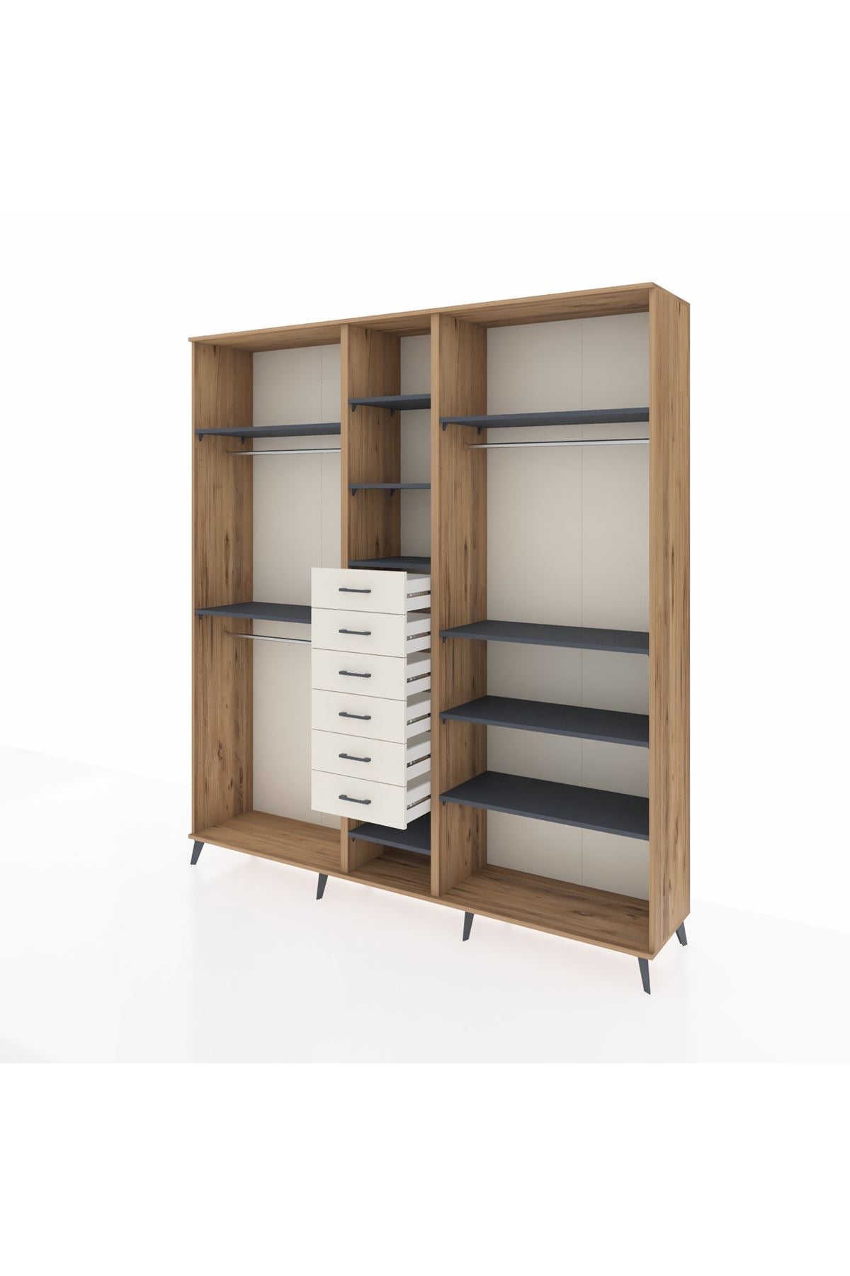 Hyperion Dolap 10 Raflı 6 Çekmeceli 3 Askılı 220x44x243 Çam-Antrasit/Aytaşı