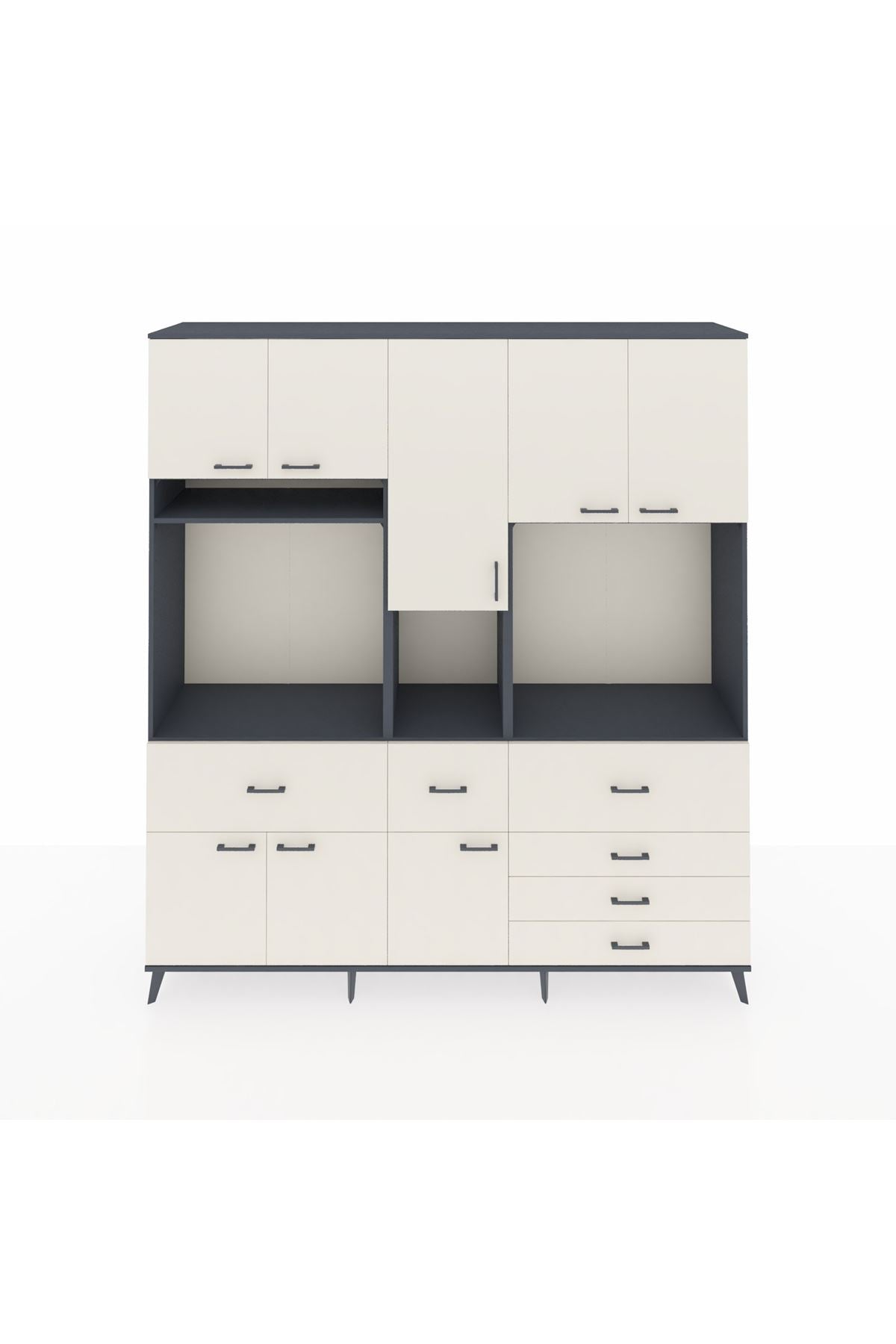 Hyperion Dolap 10 Raflı 6 Çekmeceli 8 Kapaklı 220x44x243 Antrasit-Aytaşı/Aytaşı
