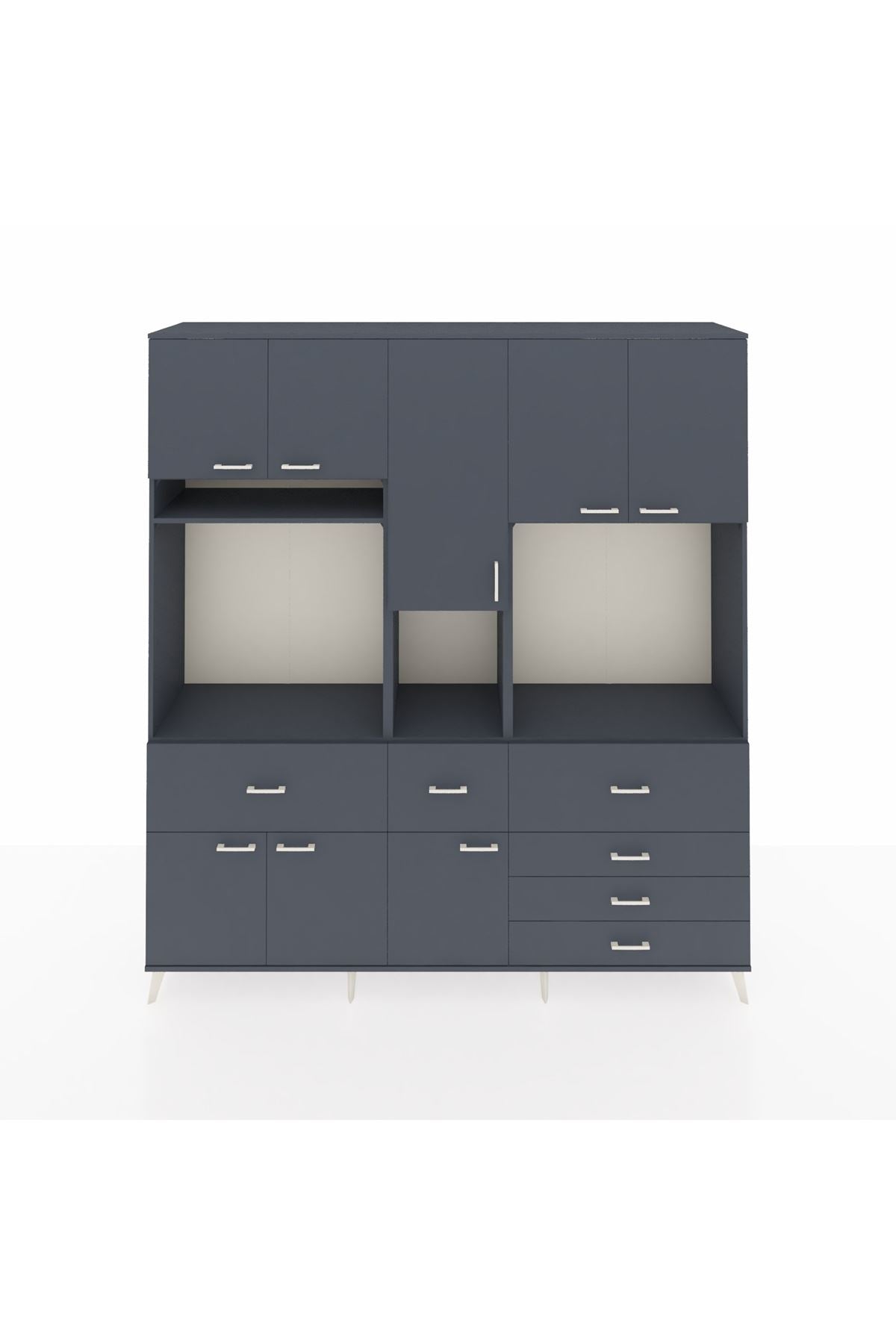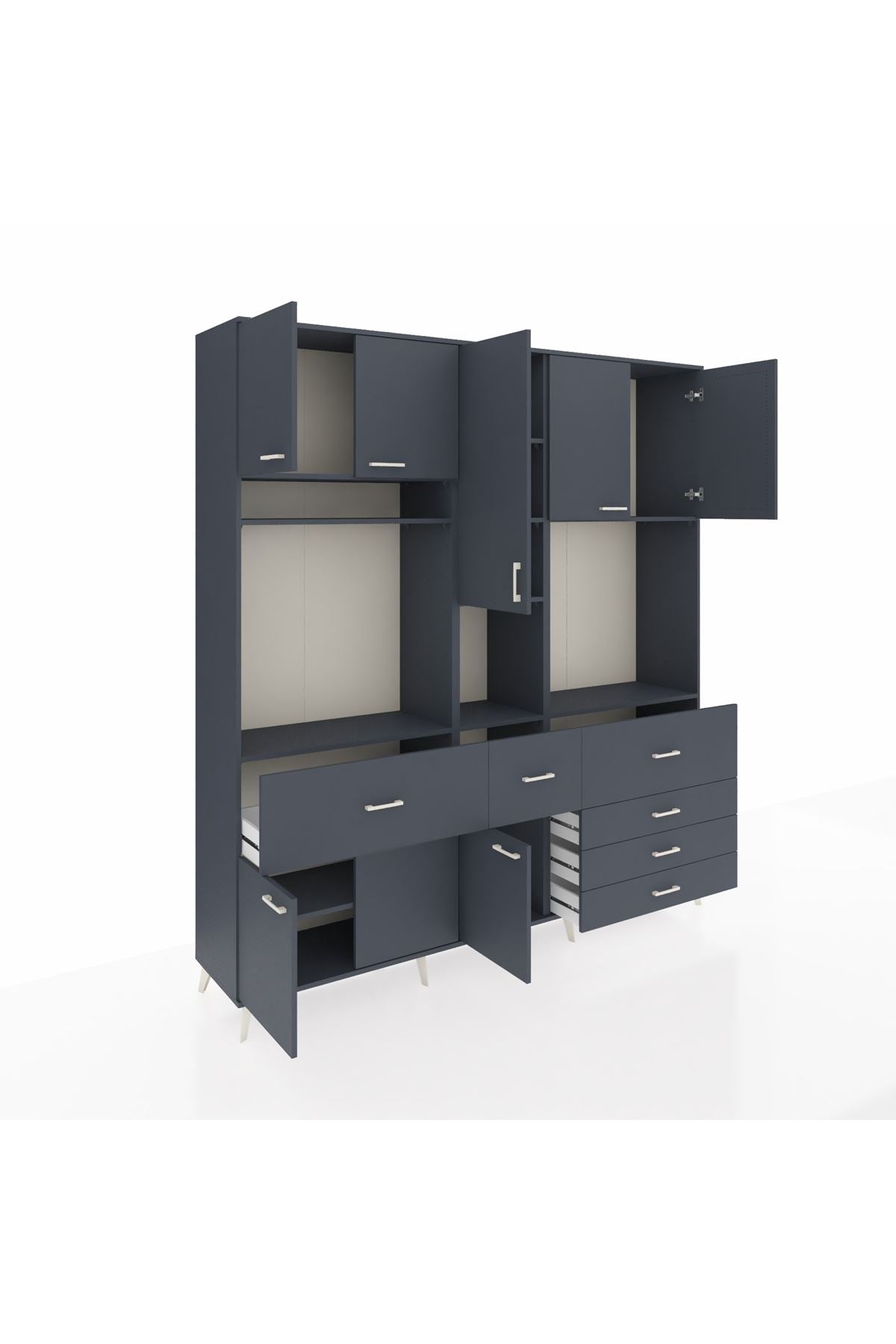 Hyperion Dolap 10 Raflı 6 Çekmeceli 8 Kapaklı 220x44x243 Antrasit-Antrasit/Antrasit