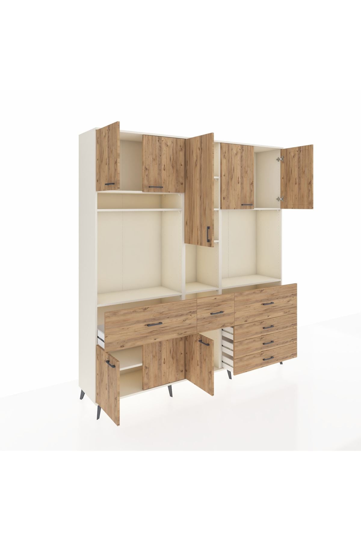 Hyperion Dolap 10 Raflı 6 Çekmeceli 8 Kapaklı 220x44x243 Aytaşı-Çam/Çam