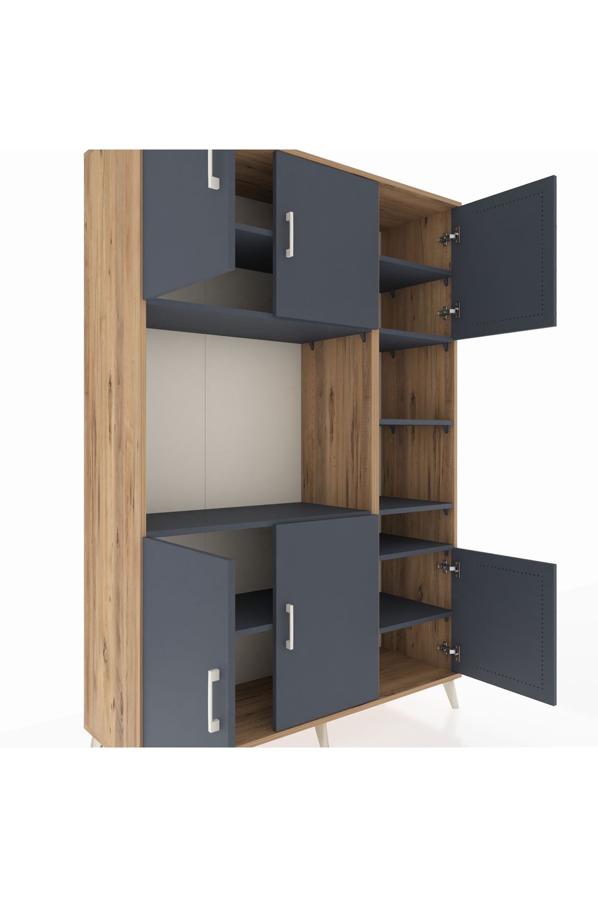 Hyperion Dolap 10 Raflı 6 Kapaklı 132x44x195 Çam-Antrasit/Antrasit