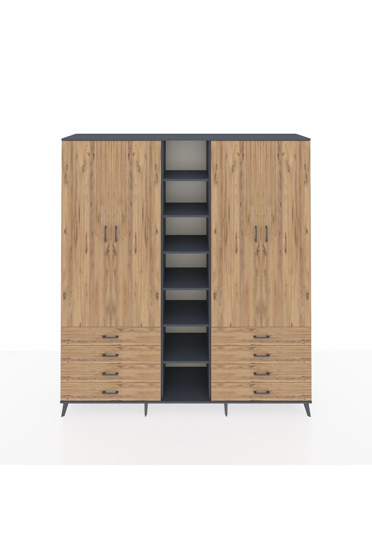 Hyperion Dolap 10 Raflı 8 Çekmeceli 2 Askılı 220x44x243 Antrasit-Çam/Çam