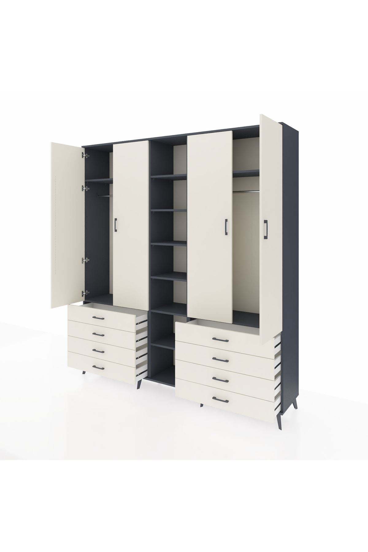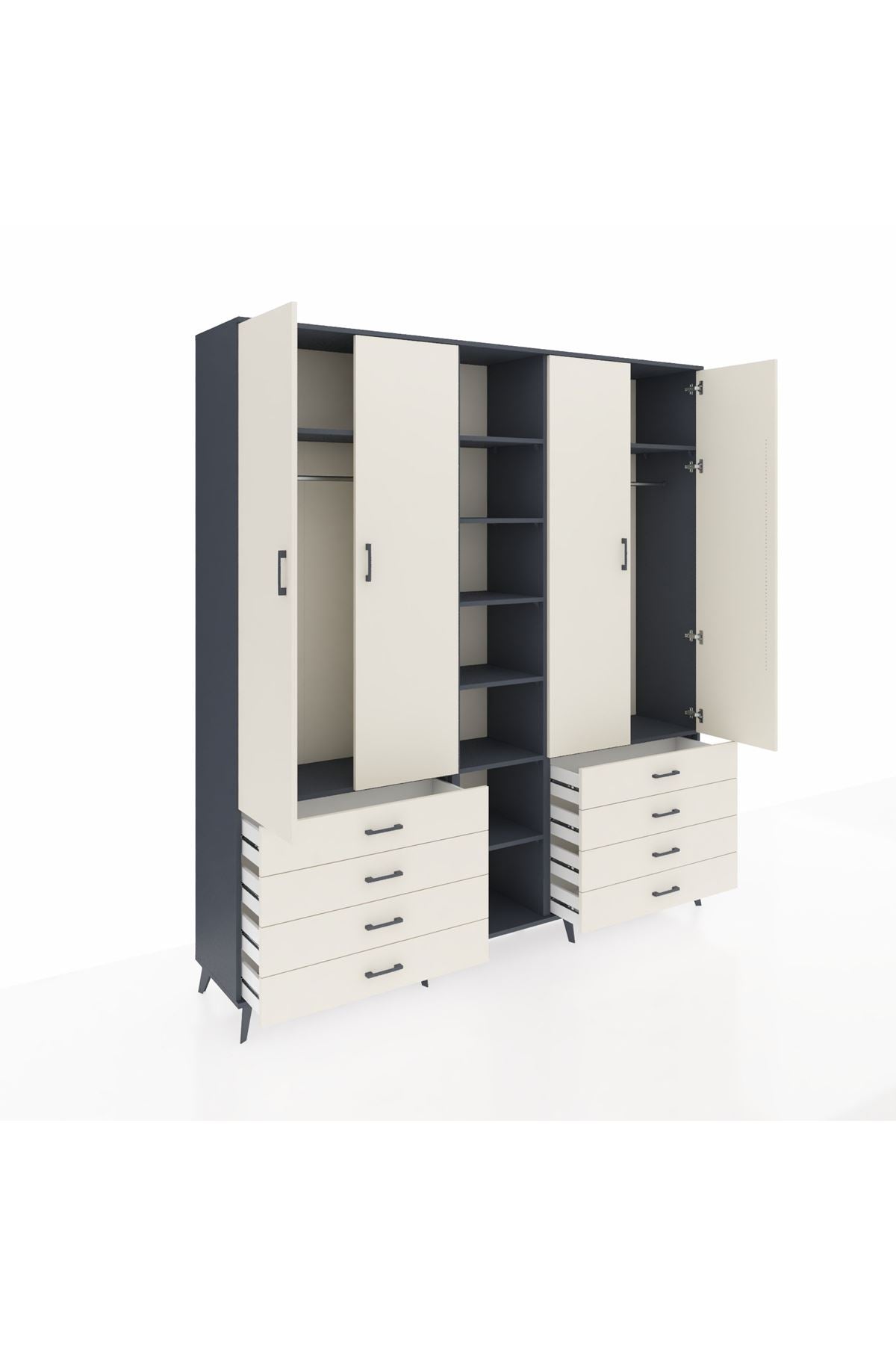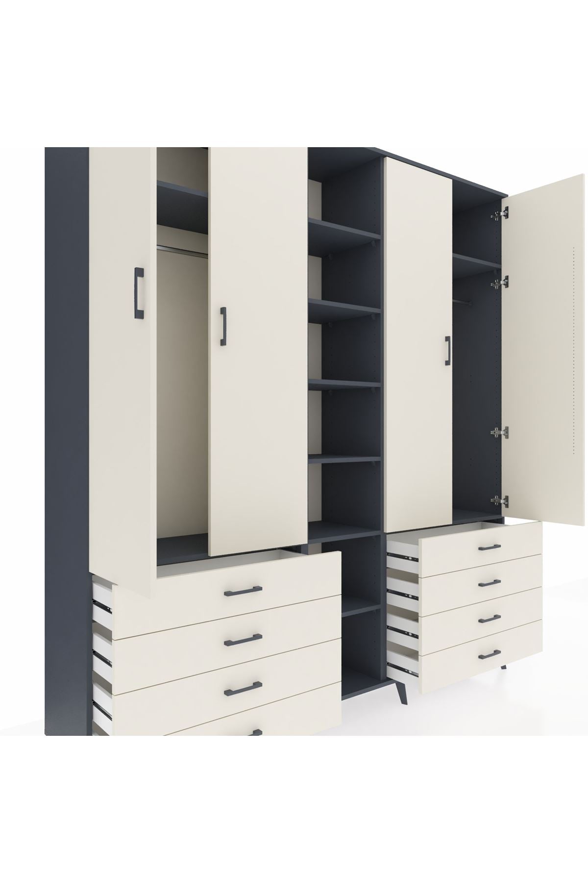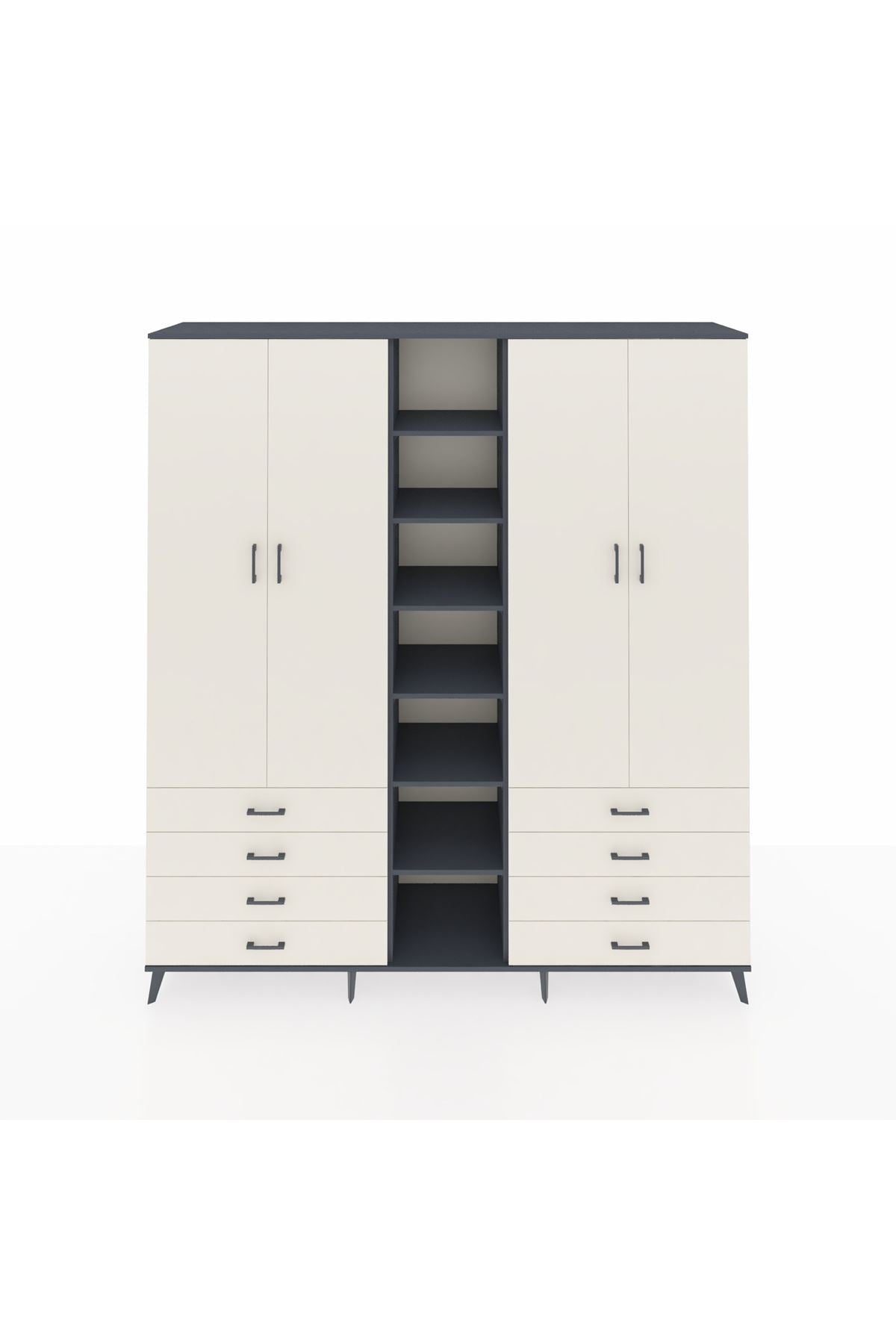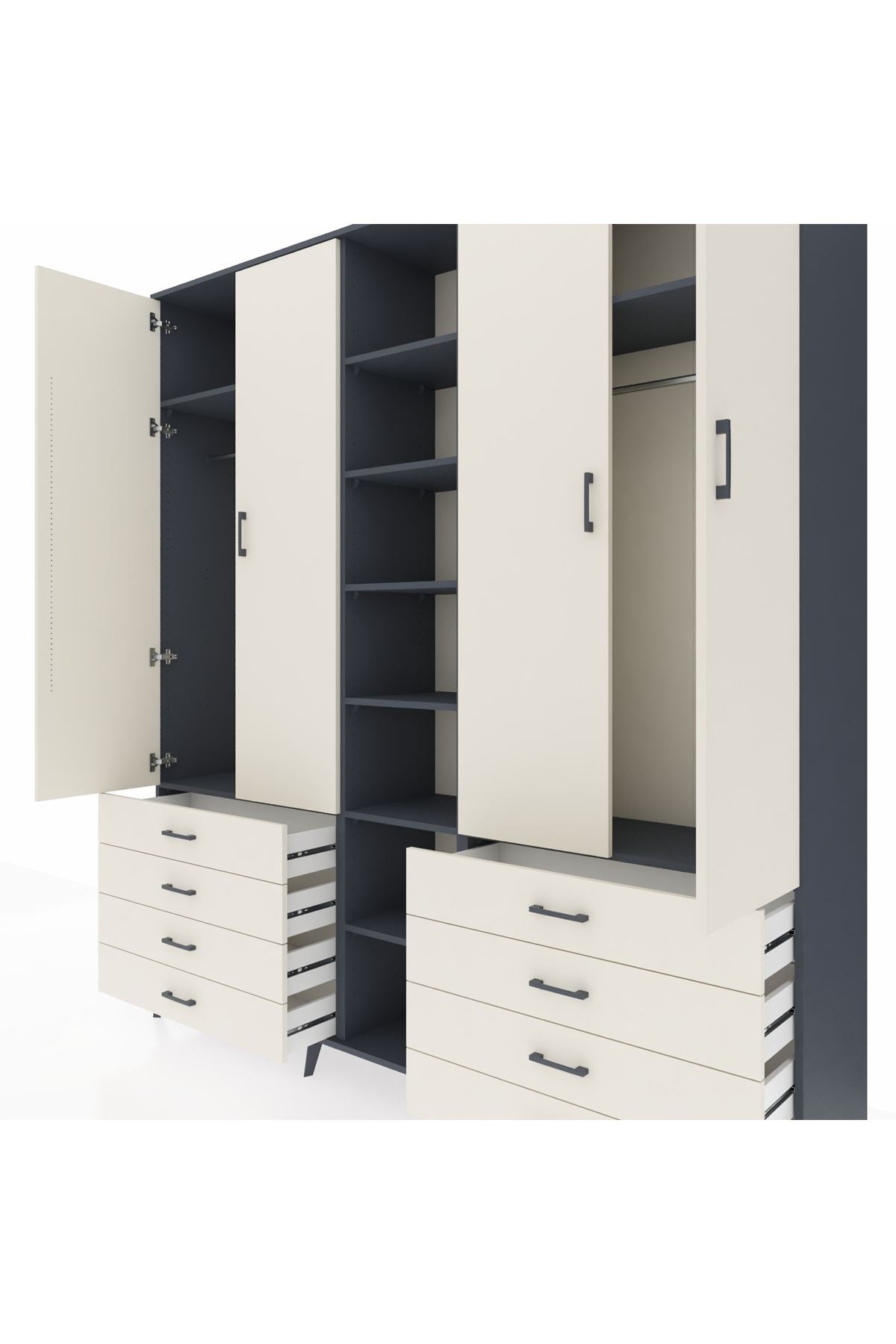 Hyperion Dolap 10 Raflı 8 Çekmeceli 2 Askılı 220x44x243 Antrasit-Aytaşı/Aytaşı