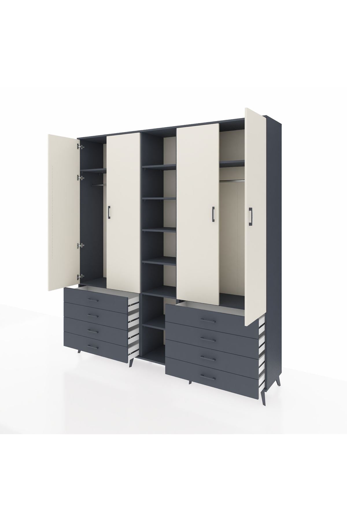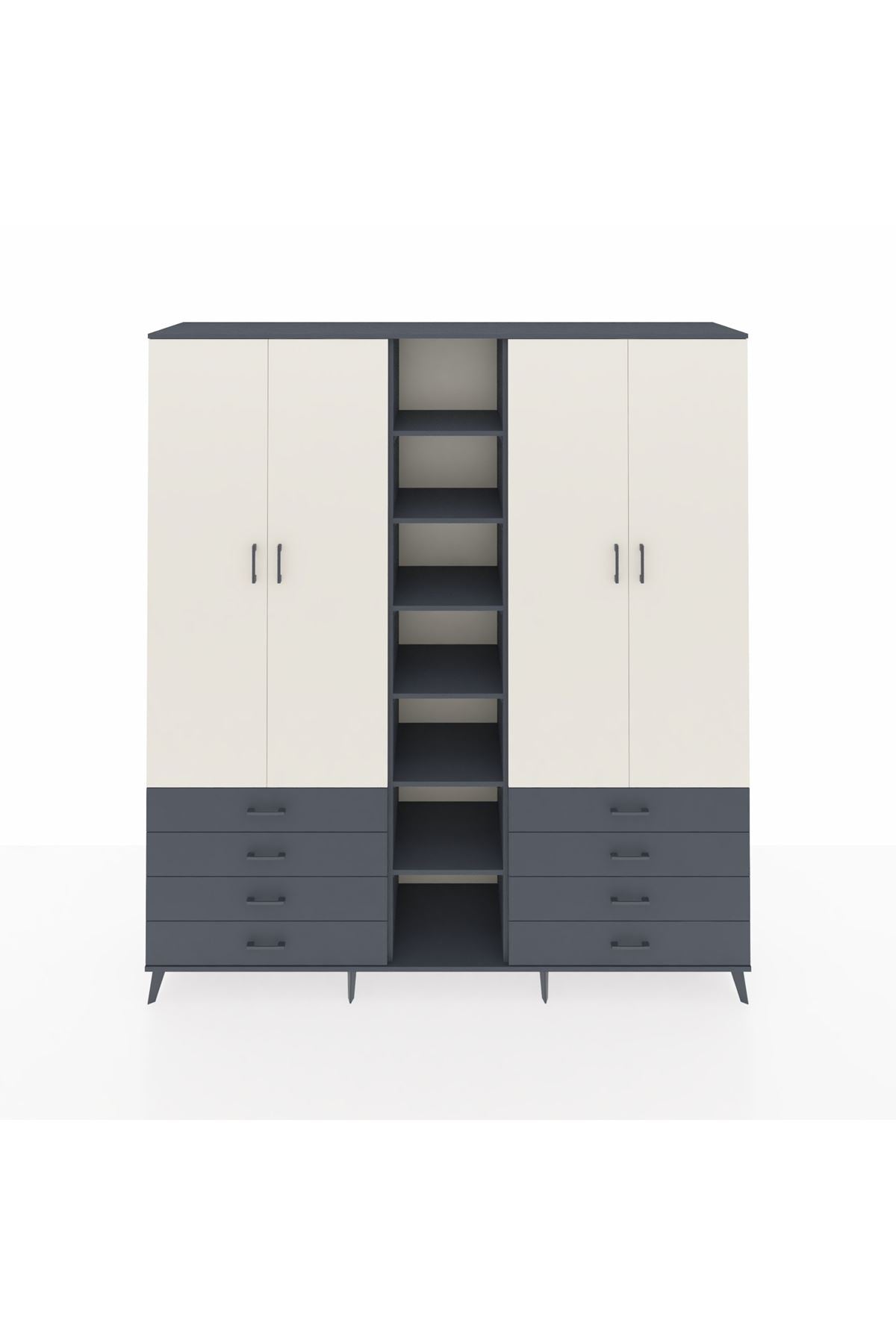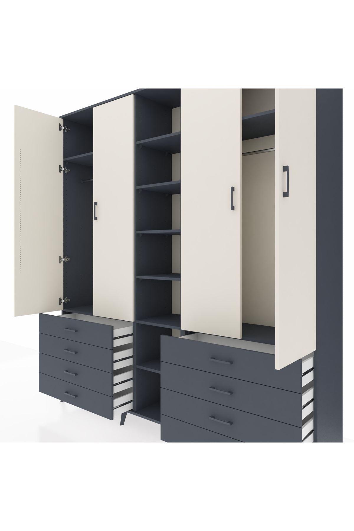 Hyperion Dolap 10 Raflı 8 Çekmeceli 2 Askılı 220x44x243 Antrasit-Aytaşı/Antrasit