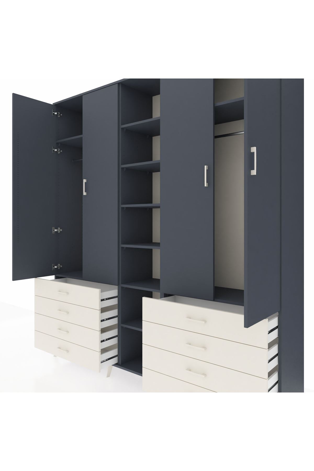 Hyperion Dolap 10 Raflı 8 Çekmeceli 2 Askılı 220x44x243 Antrasit-Antrasit/Aytaşı