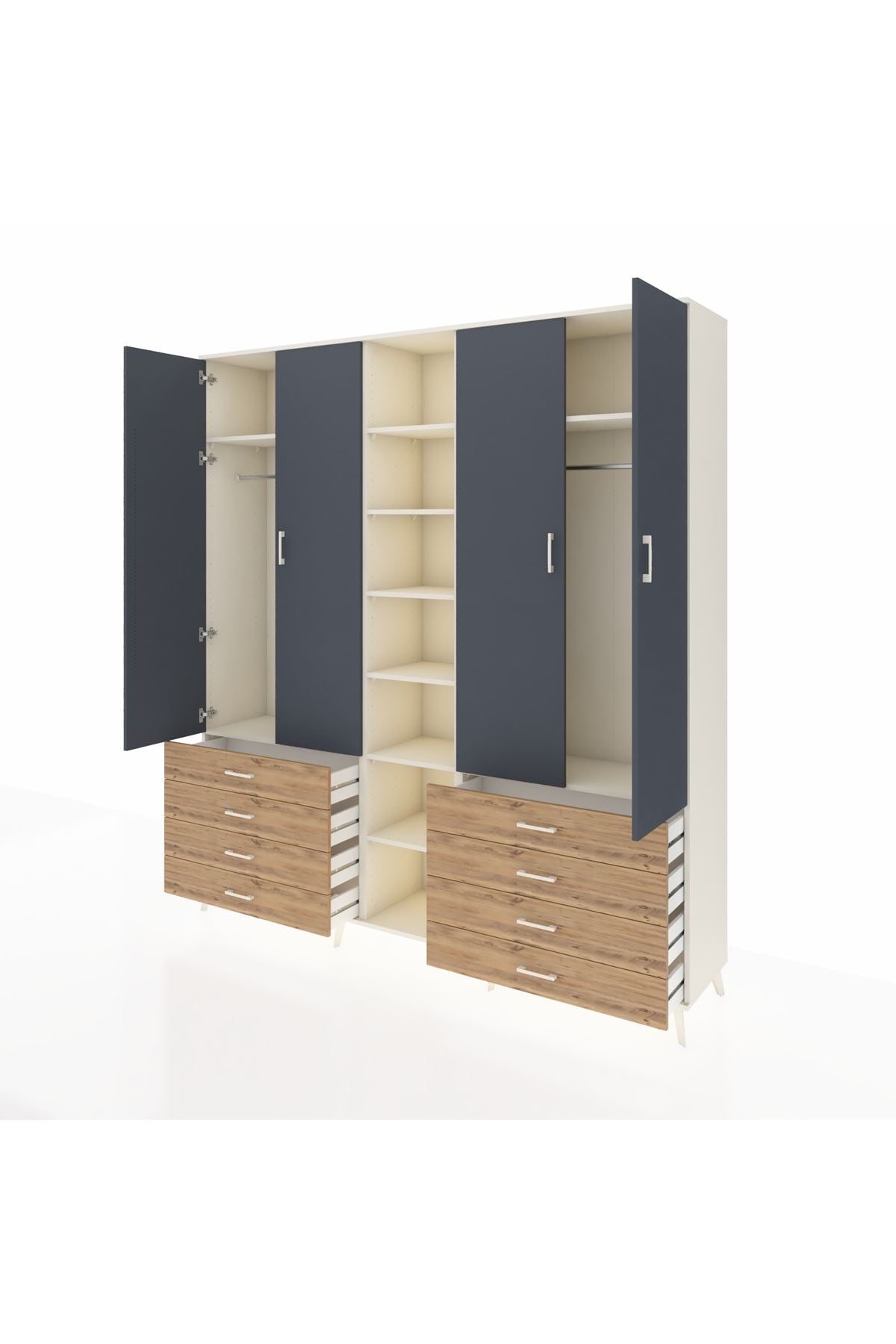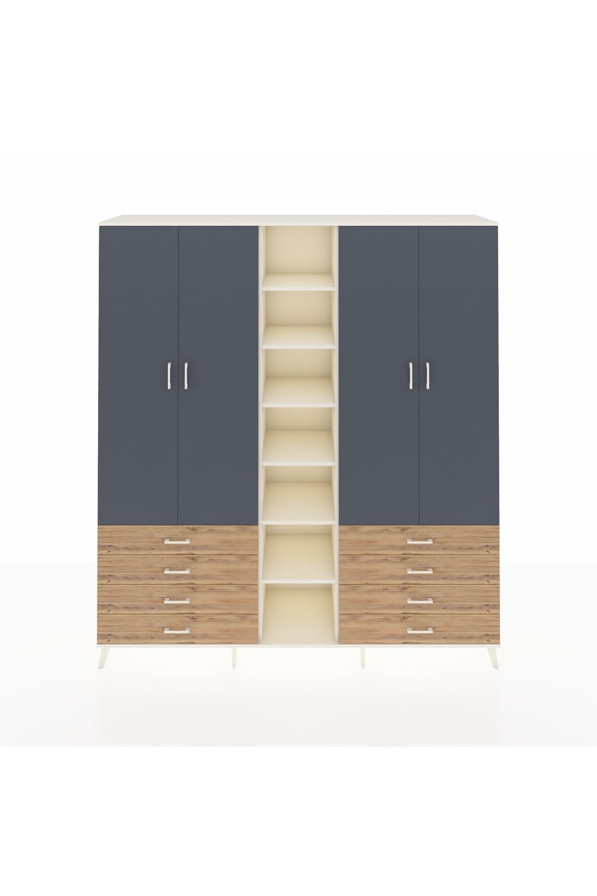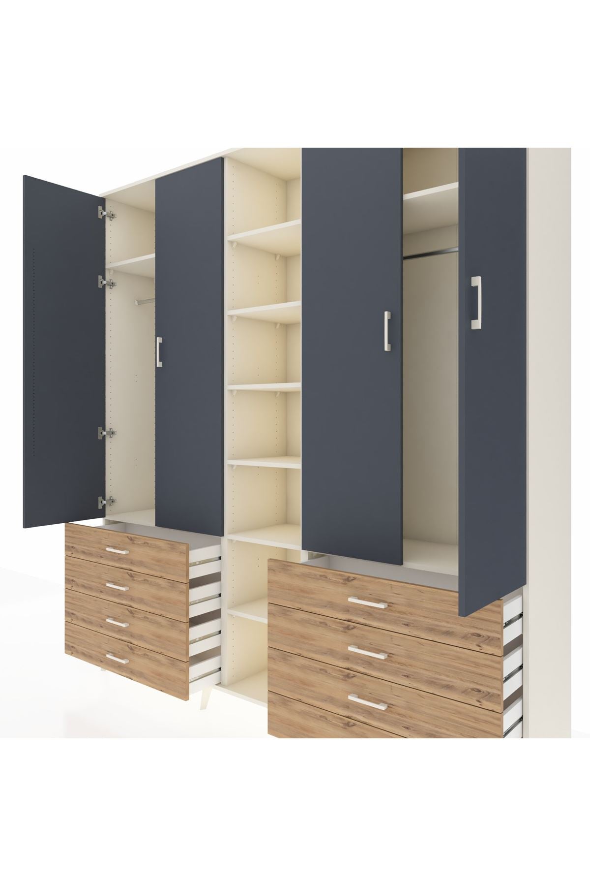 Hyperion Dolap 10 Raflı 8 Çekmeceli 2 Askılı 220x44x243 Aytaşı-Antrasit/Çam