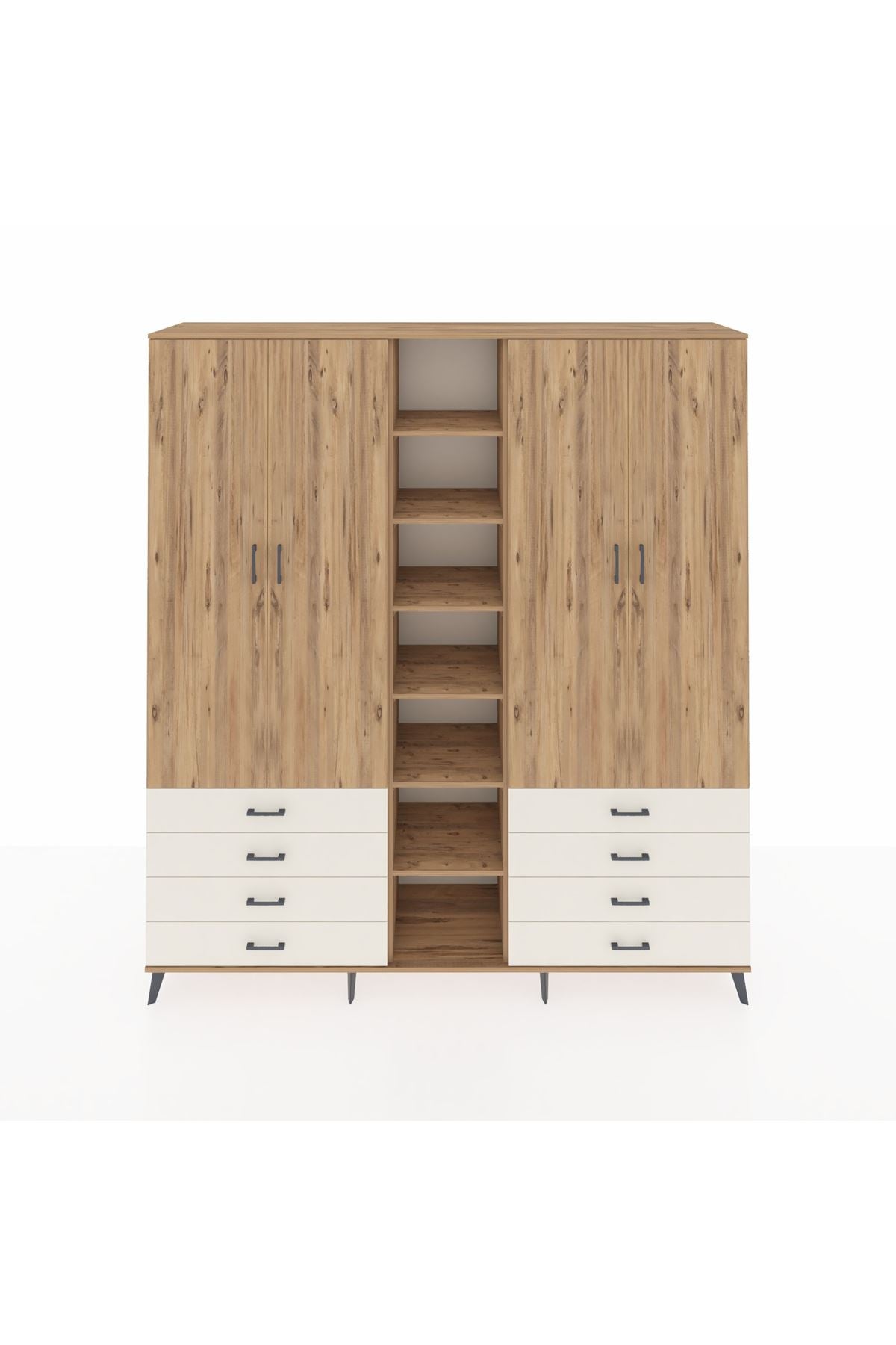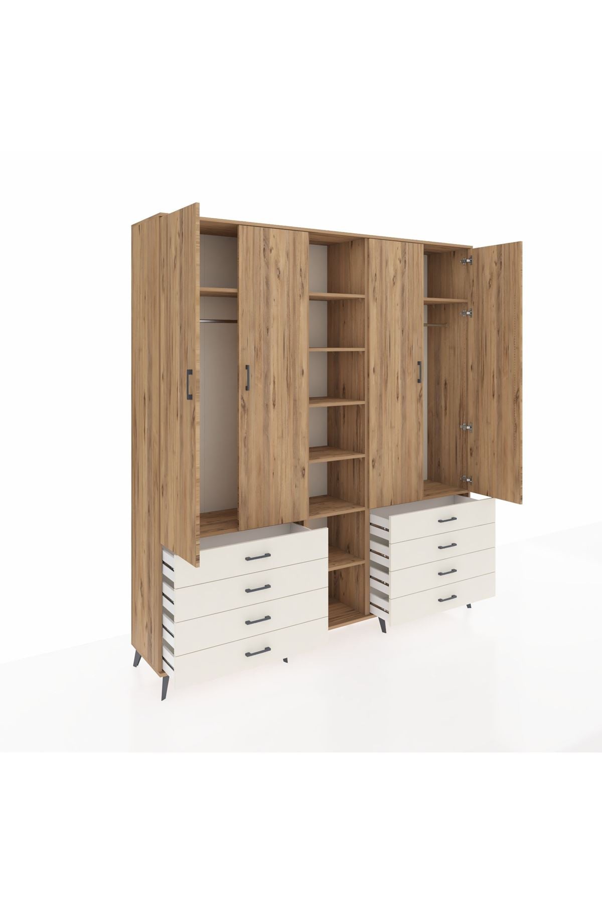 Hyperion Dolap 10 Raflı 8 Çekmeceli 2 Askılı 220x44x243 Çam-Çam/Aytaşı
