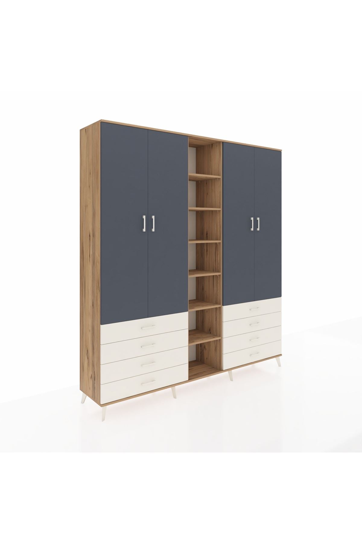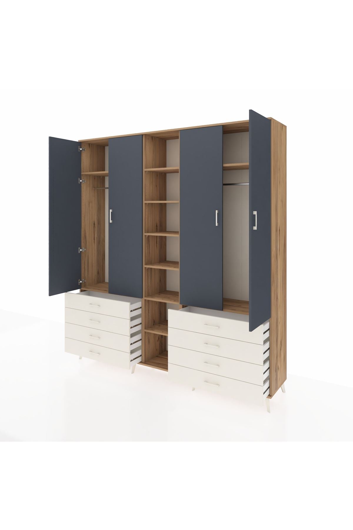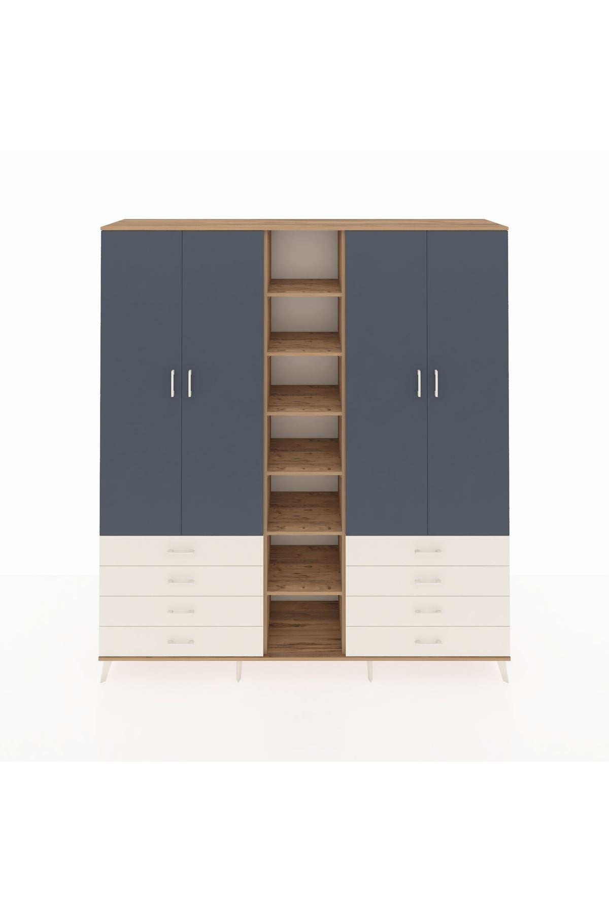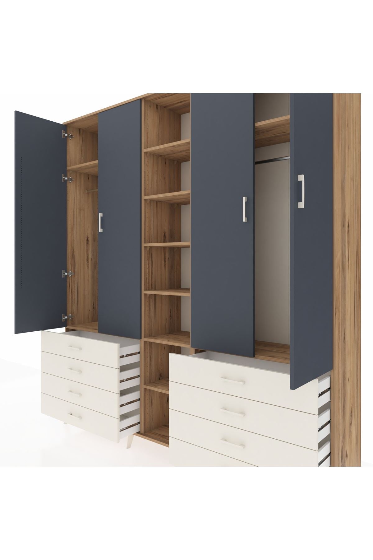 Hyperion Dolap 10 Raflı 8 Çekmeceli 2 Askılı 220x44x243 Çam-Antrasit/Aytaşı