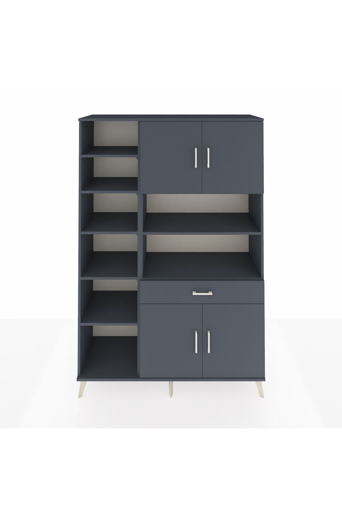 Hyperion Dolap 10 Raflı Tek Çekmeceli 4 Kapaklı 132x44x195 Antrasit-Antrasit/Antrasit
