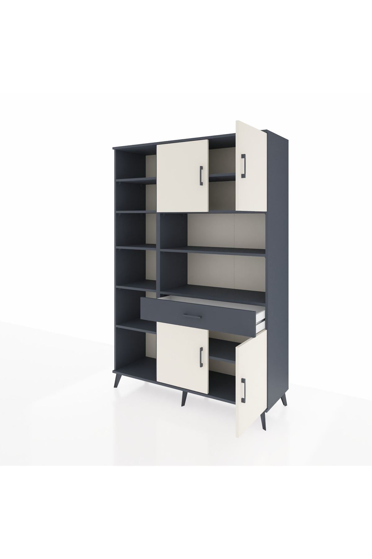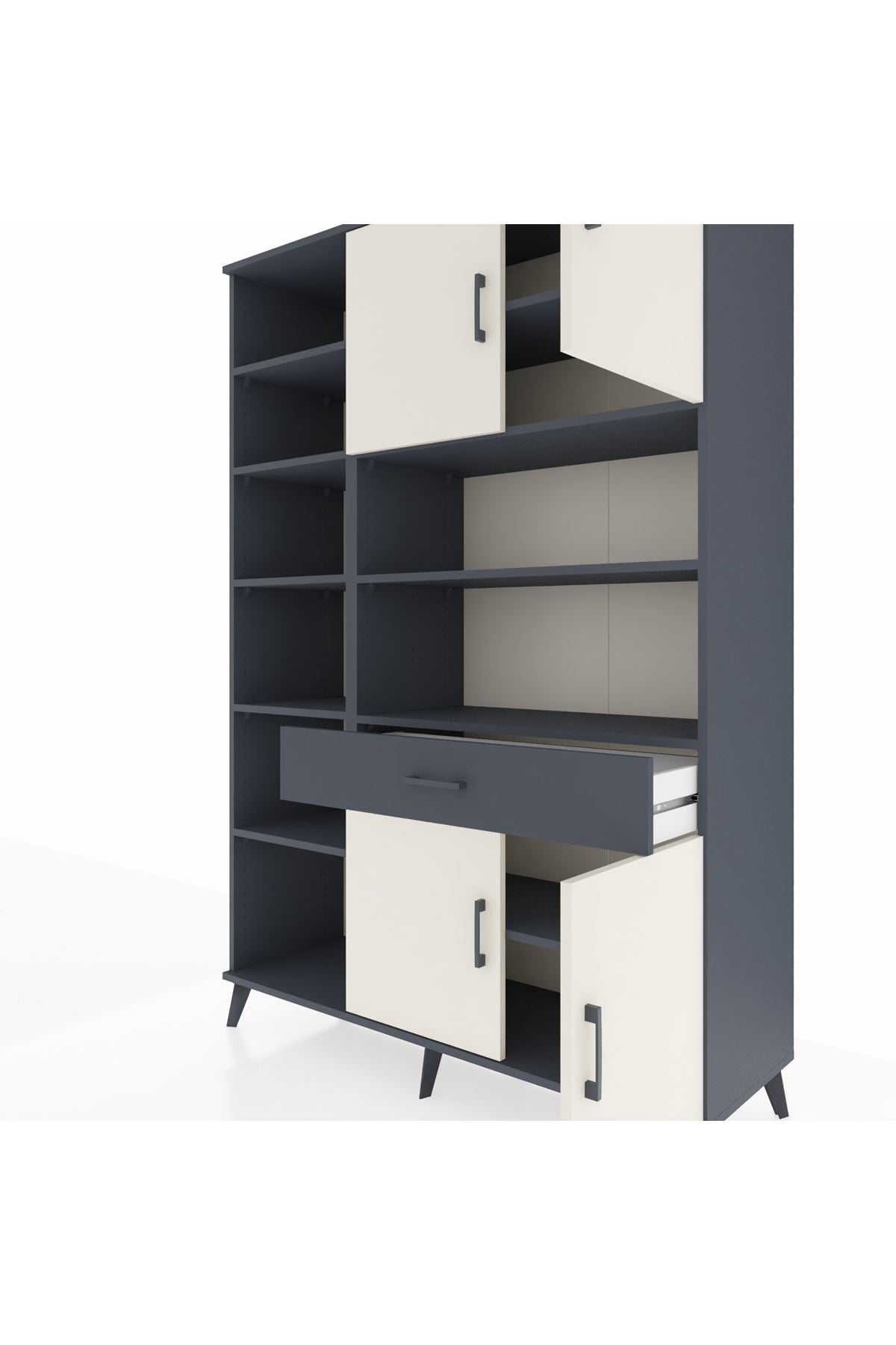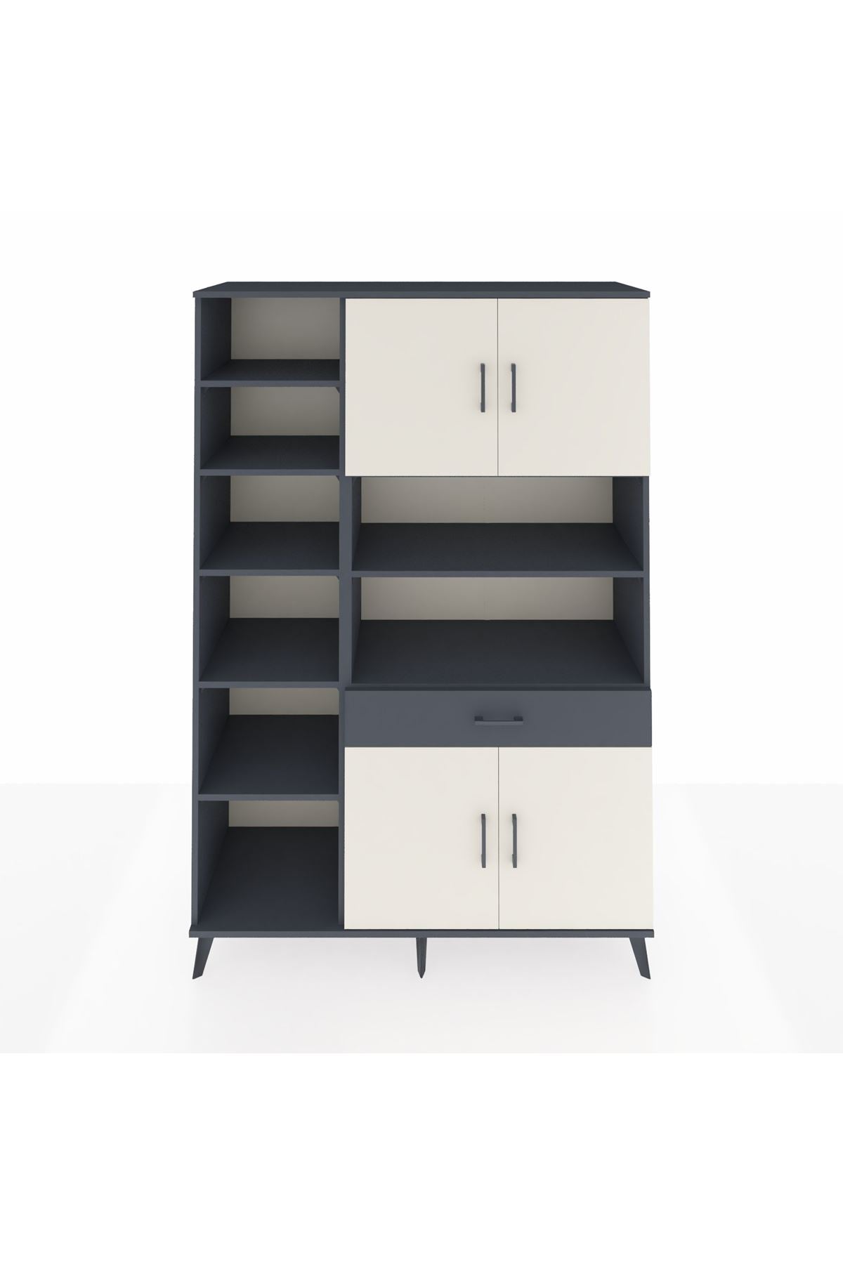Hyperion Dolap 10 Raflı Tek Çekmeceli 4 Kapaklı 132x44x195 Antrasit-Aytaşı/Antrasit