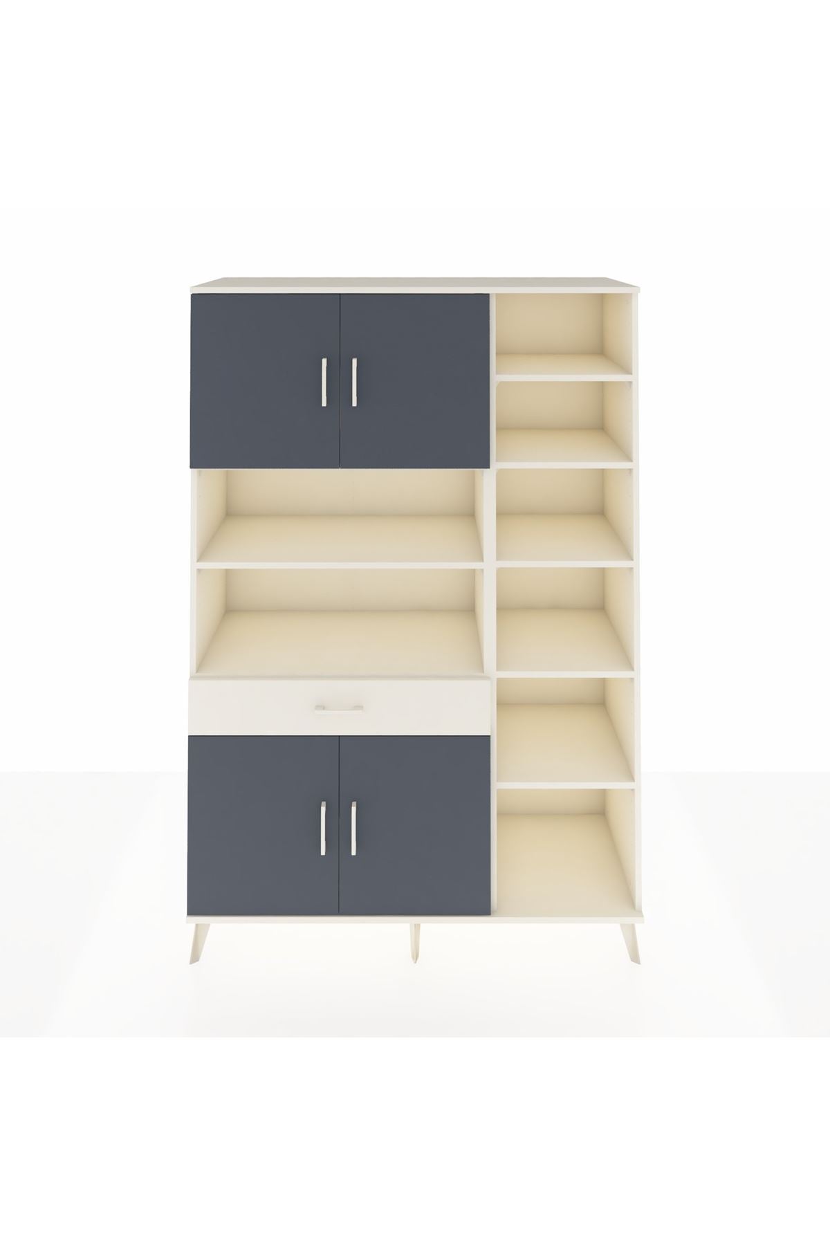 Hyperion Dolap 10 Raflı Tek Çekmeceli 4 Kapaklı 132x44x195 Aytaşı-Antrasit/Aytaşı