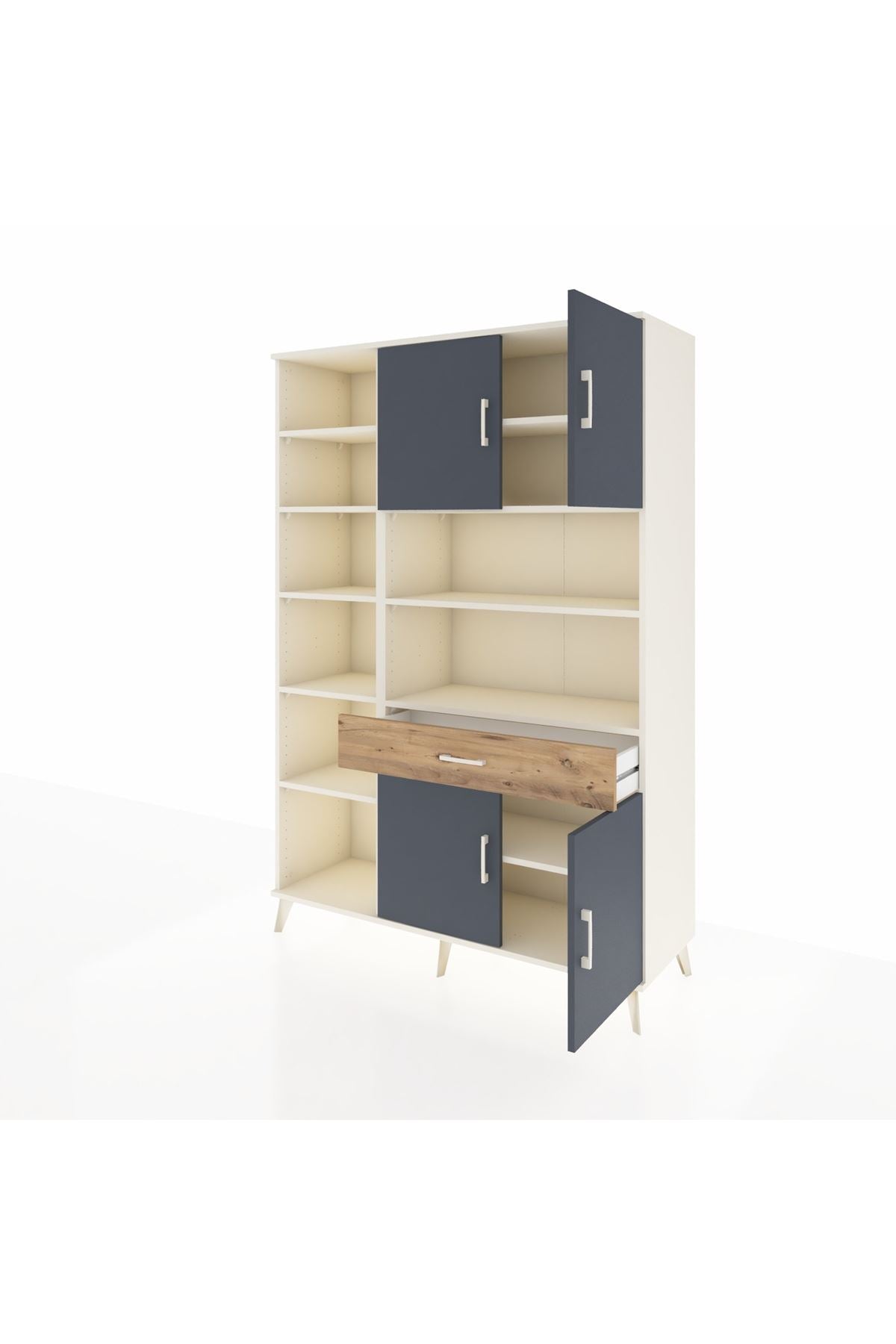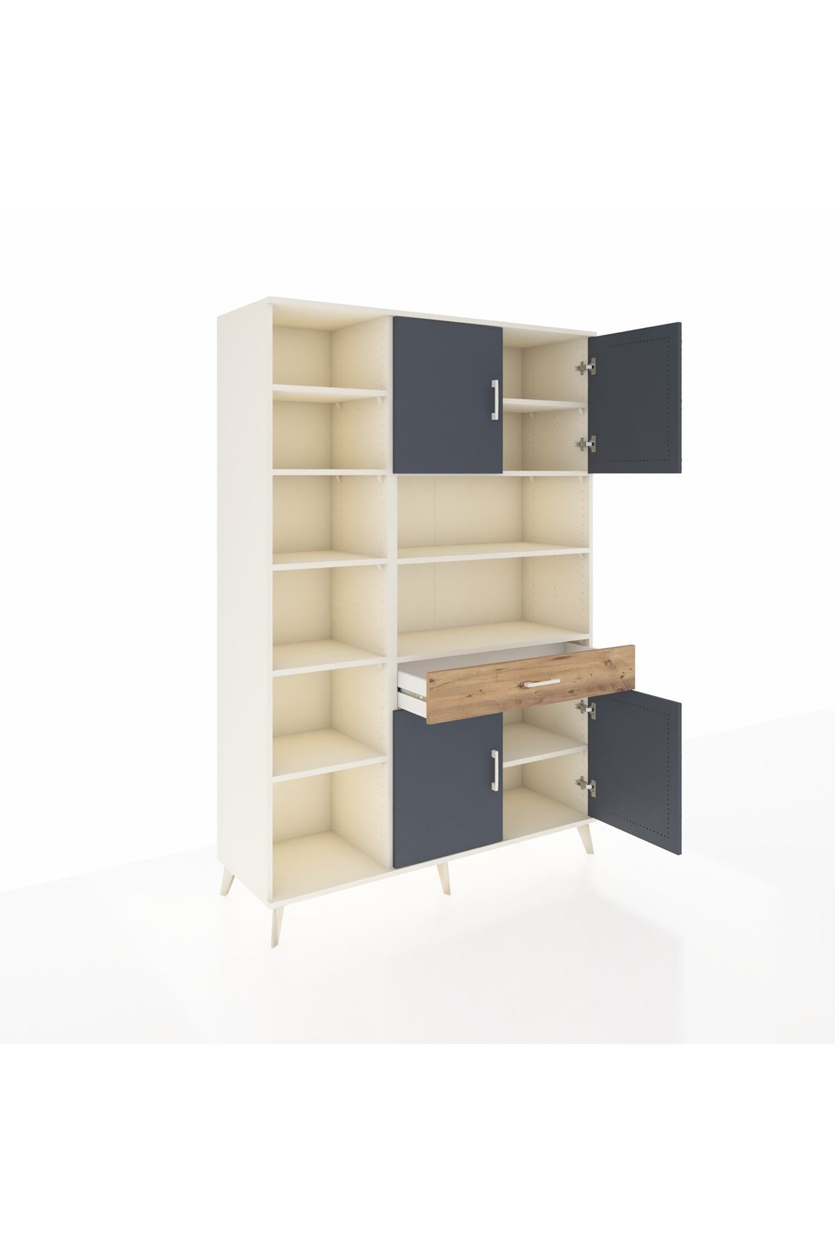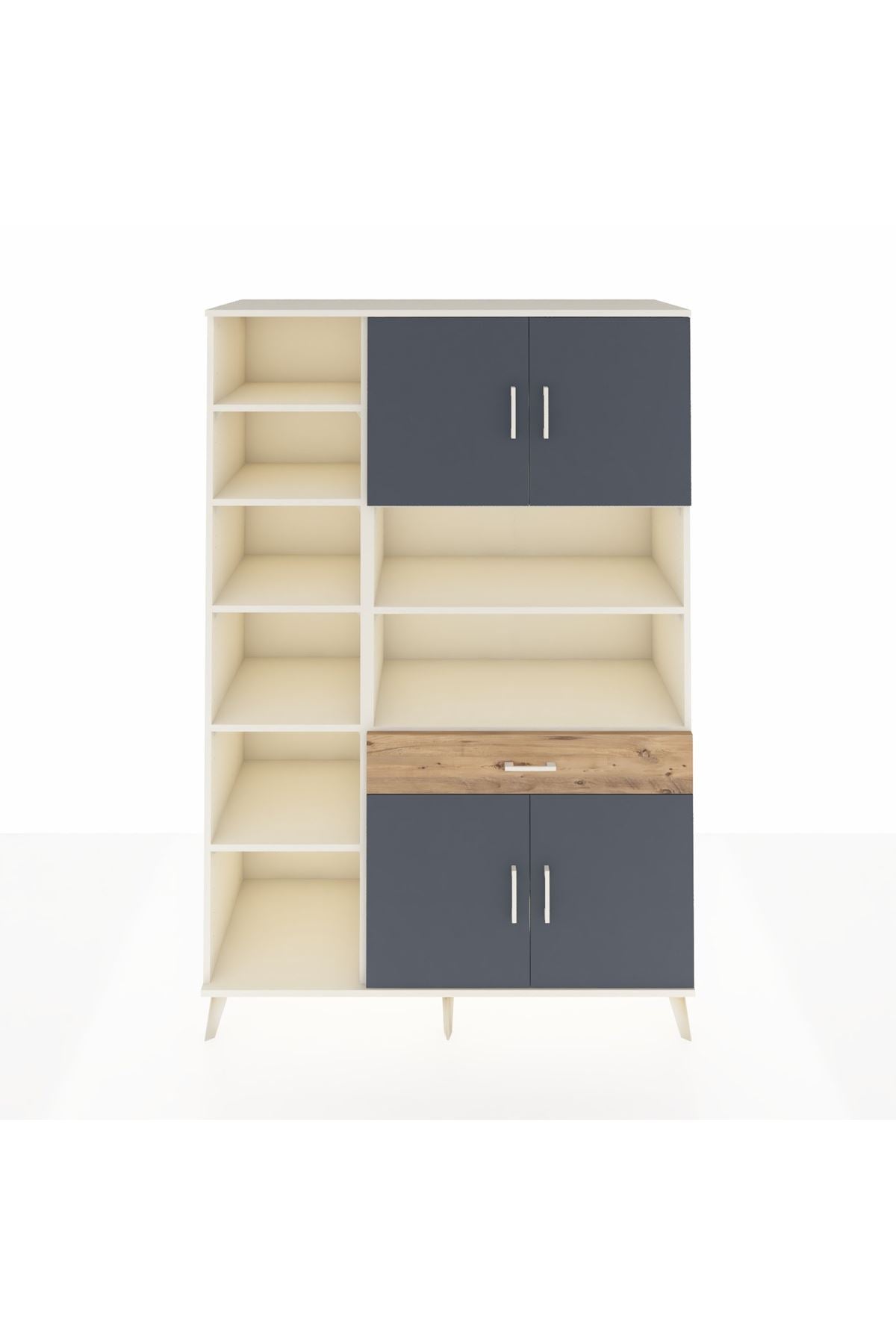 Hyperion Dolap 10 Raflı Tek Çekmeceli 4 Kapaklı 132x44x195 Aytaşı-Antrasit/Çam