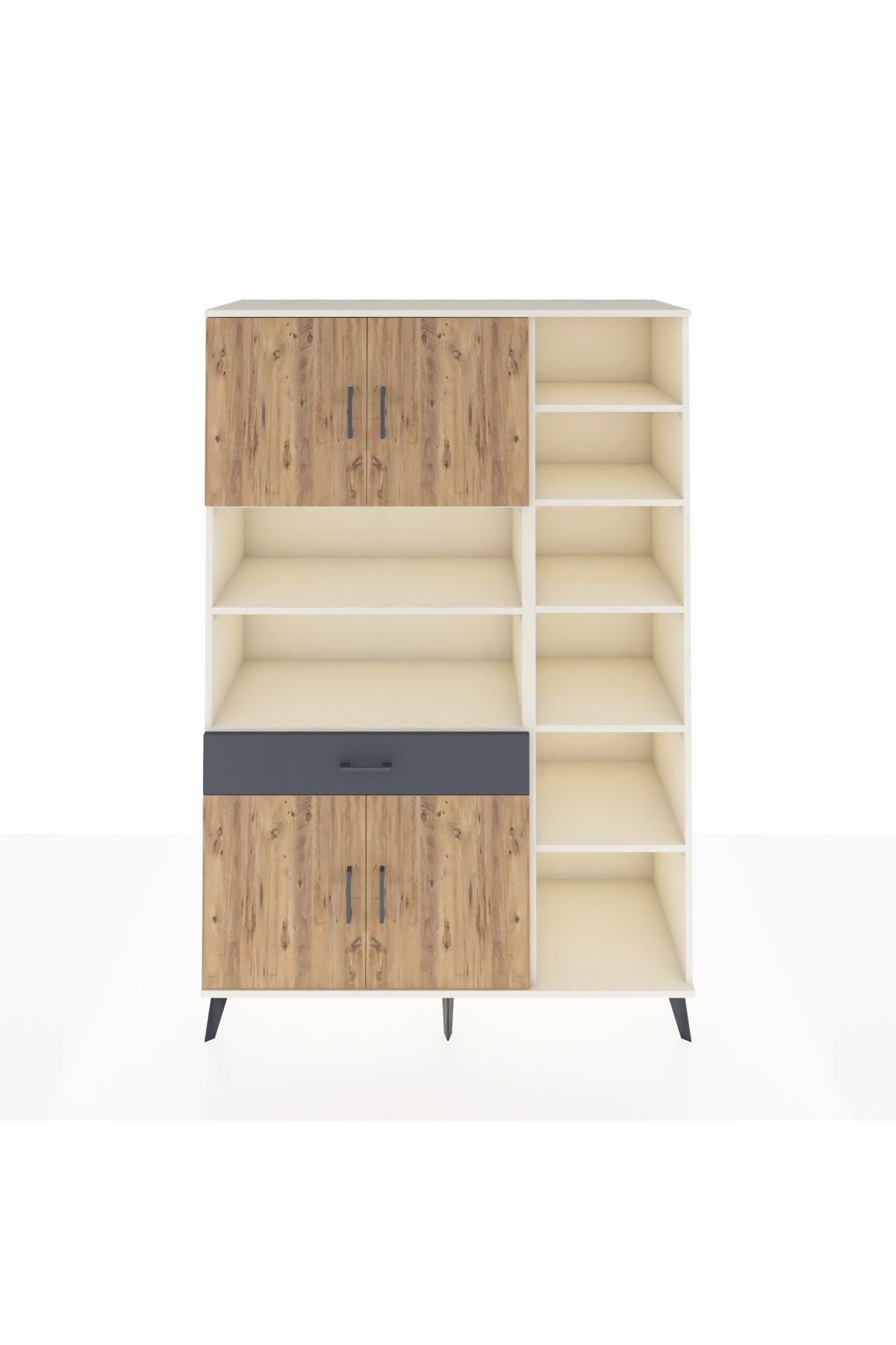 Hyperion Dolap 10 Raflı Tek Çekmeceli 4 Kapaklı 132x44x195 Aytaşı-Çam/Antrasit