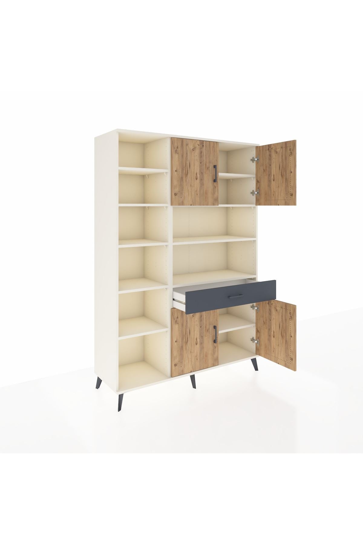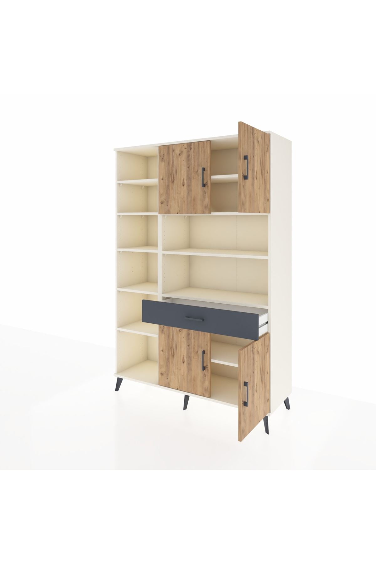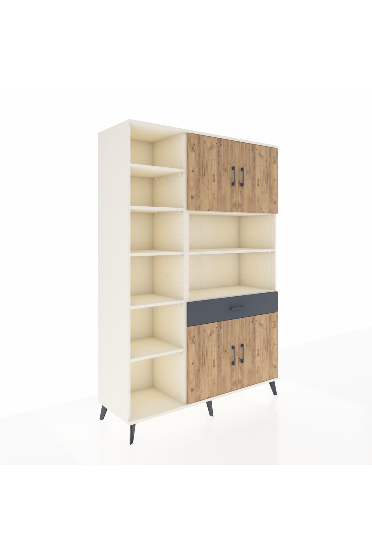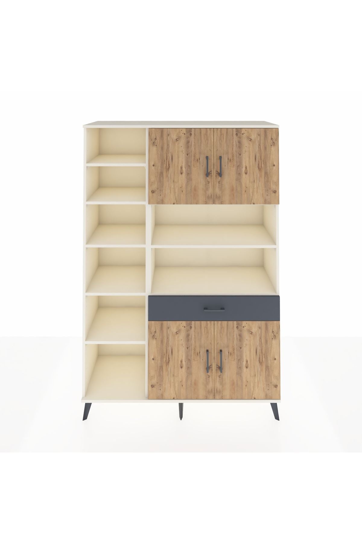 Hyperion Dolap 10 Raflı Tek Çekmeceli 4 Kapaklı 132x44x195 Aytaşı-Çam/Antrasit